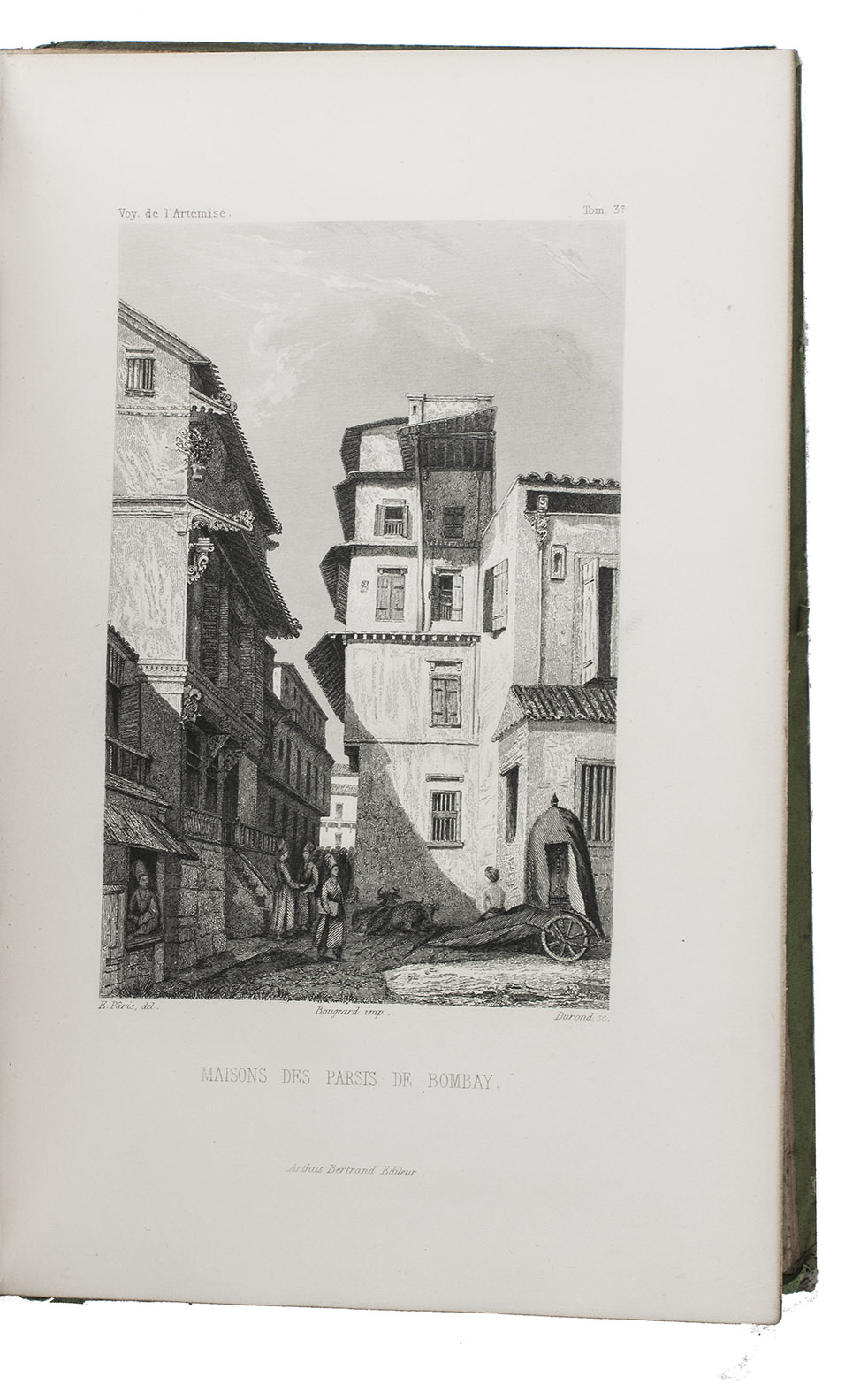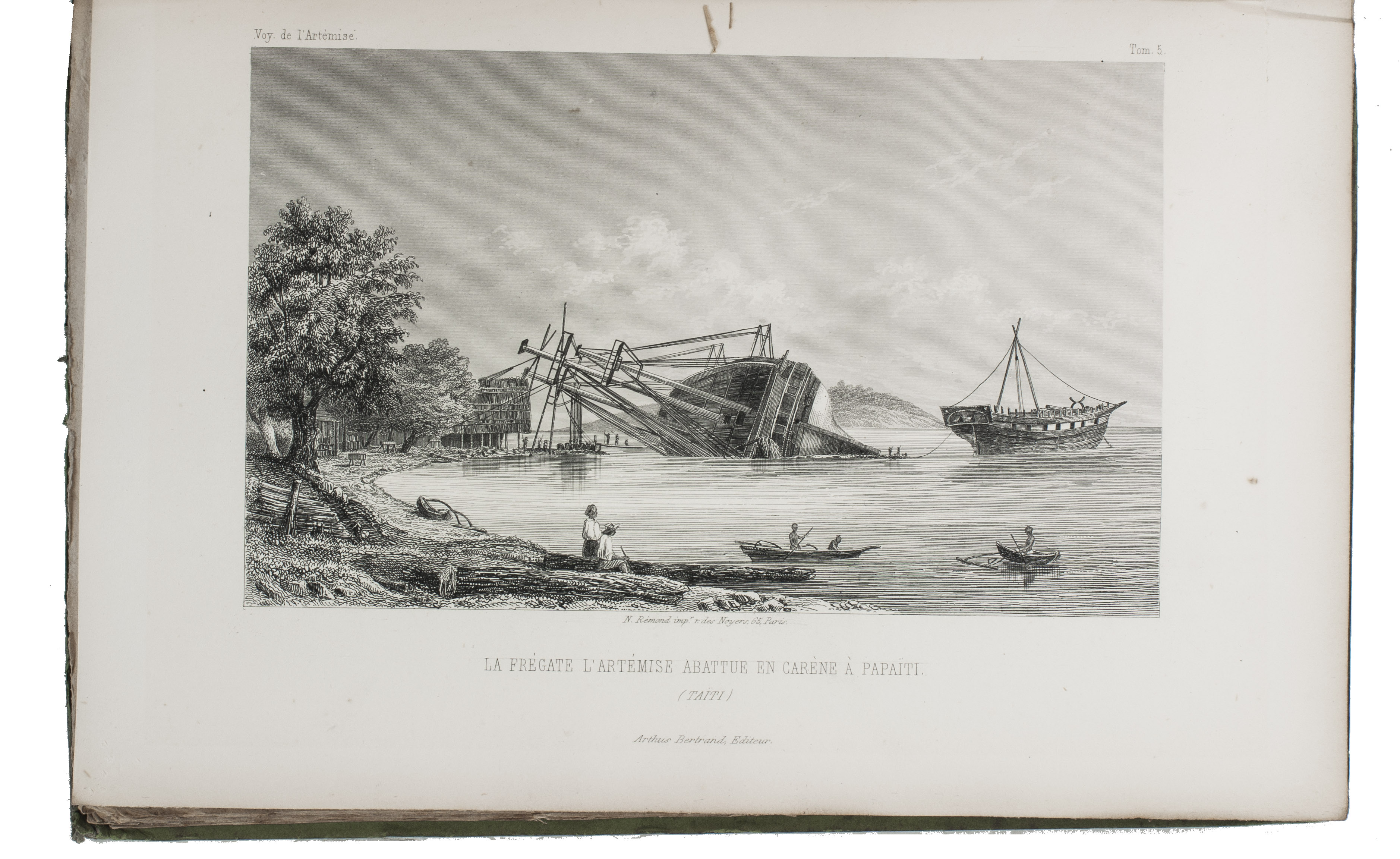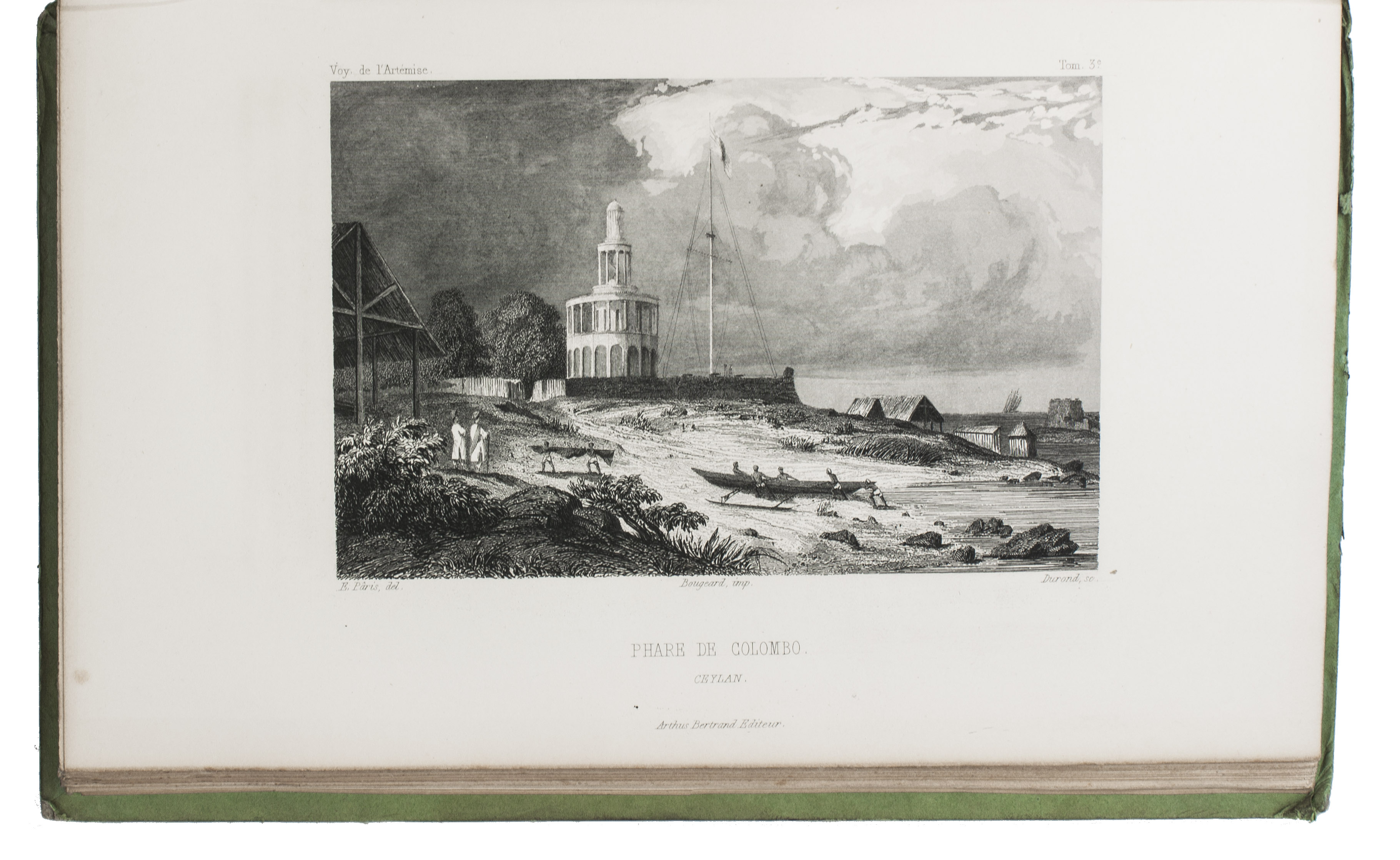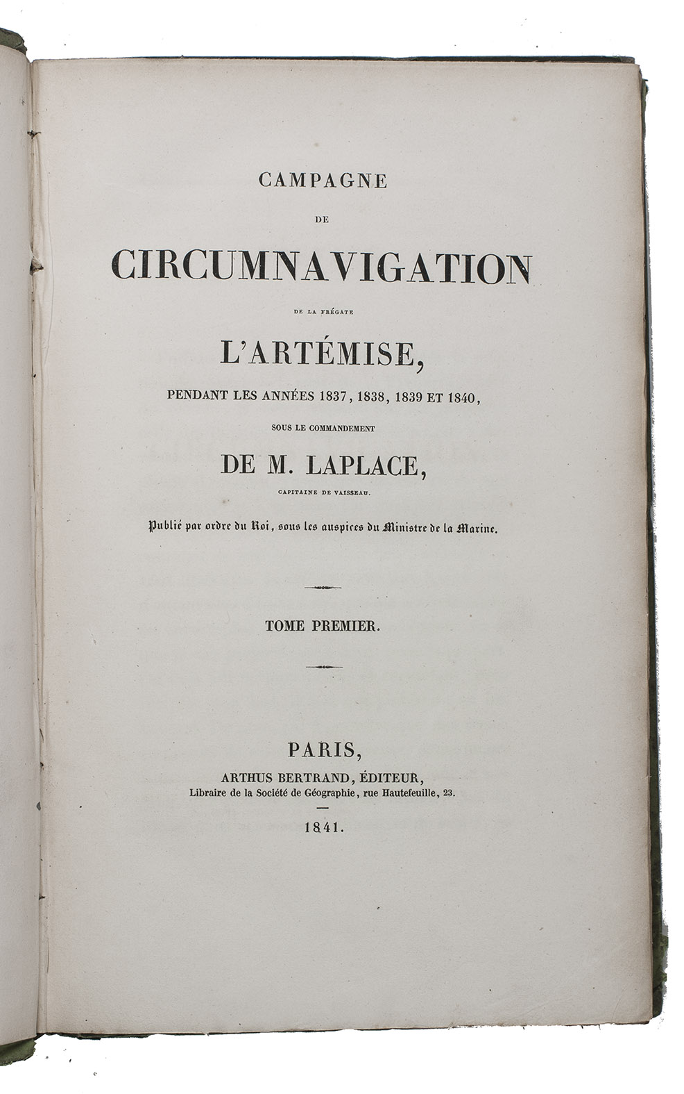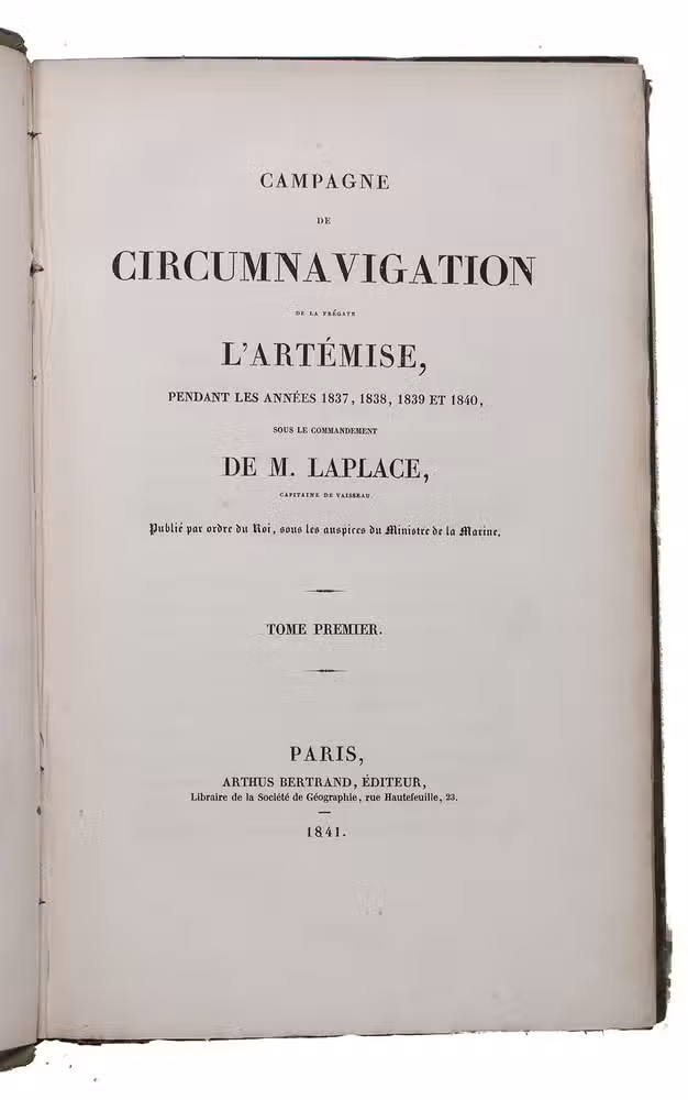 First and only complete edition, containing about 2800 pages of official reports of one of the most important 19th-century circumnavigations of the globe, especially valuable for its information on Tahiti and Hawaii, and for its detailed view of the political manoeuvrings of the various colonial powers with each other and with the indigenous populations, both in the Pacific and elsewhere. The 31 stunning steel-engravings ("fine quality": Forbes) enrich the account greatly. Besides the well-known Pacific views (Hawaii, Tahiti, Tasmania, the Philippines, Vietnam) they include mosques at Karikal and Kolkotta in India and views of Oman, Mocha, Brazil, Peru, California and much more. Laplace also provides valuable information about trade on the coasts of the Arabian peninsula (including Muscat, al-Muka and Bandar-Abbas) and Iran. This was Laplace's second circumnavigation of the globe, sailing in the ship l'Artémise, beginning in 1837, five years after he returned from his voyage in La Favorite. The world map shows the routes of both voyages (the second map shows the Indian subcontinent and surroundings in more detail).