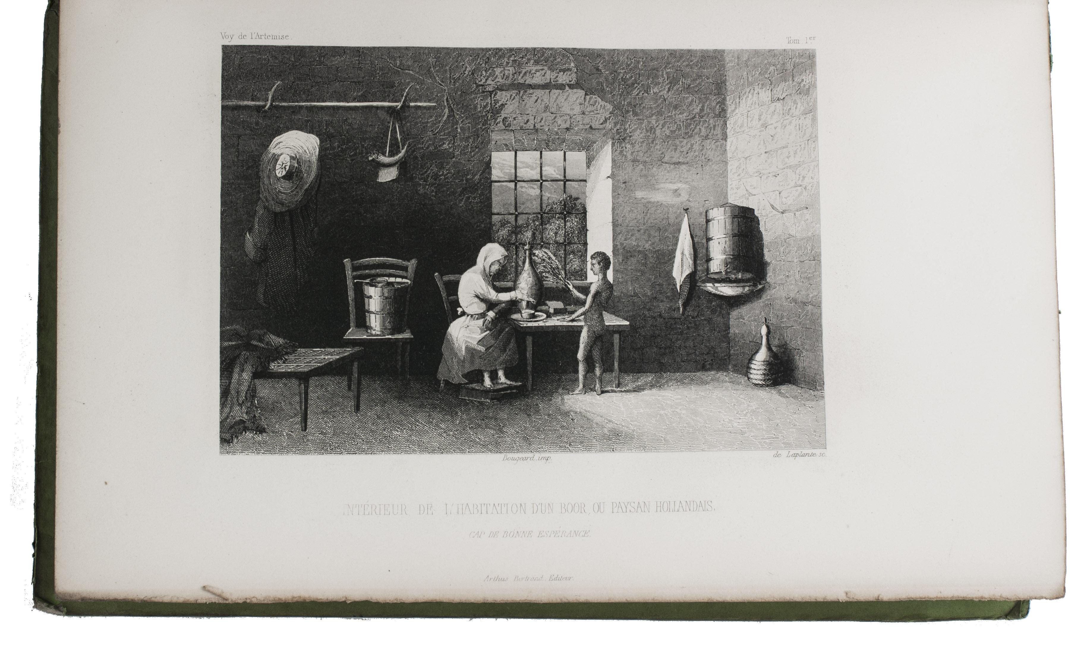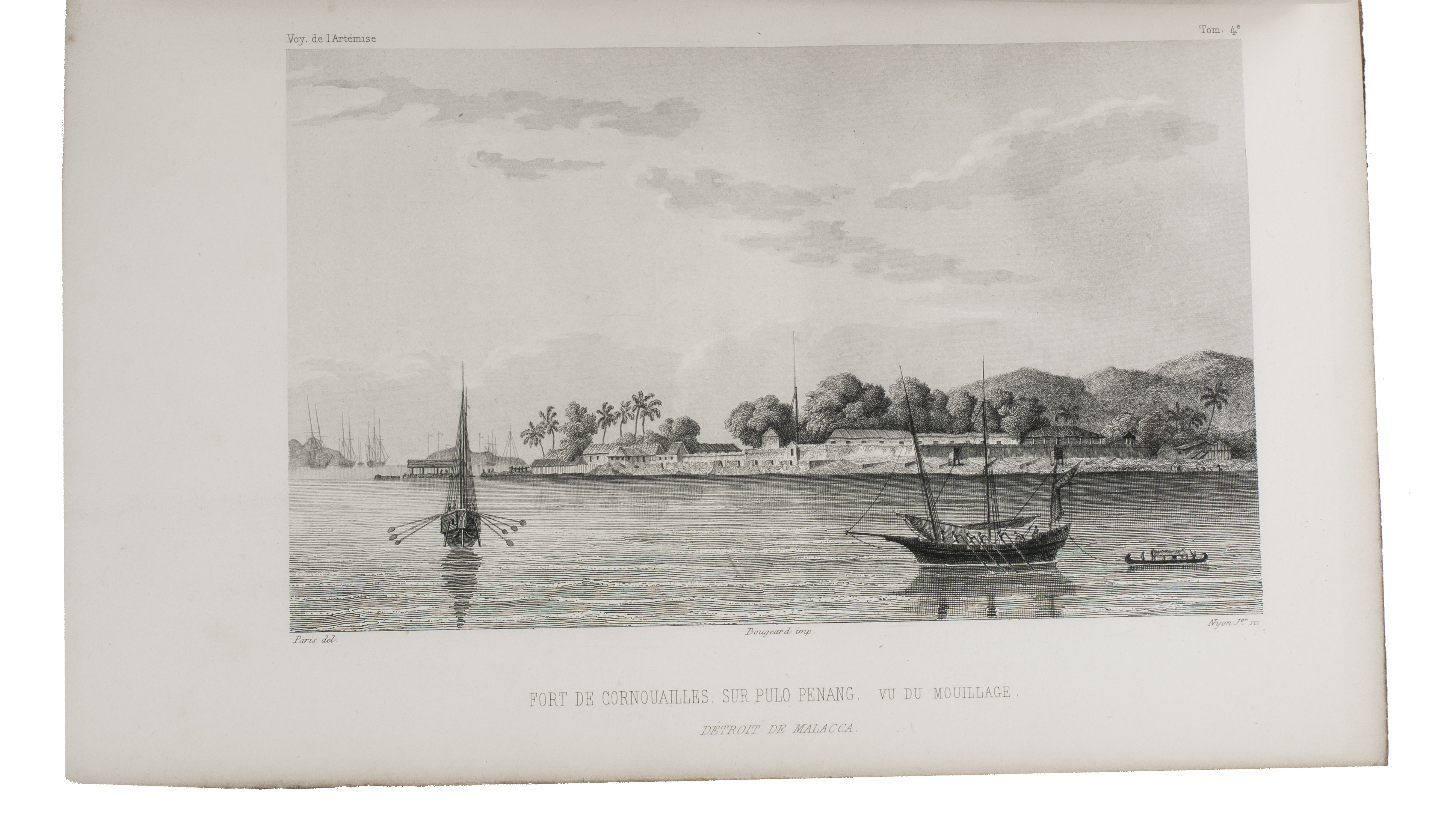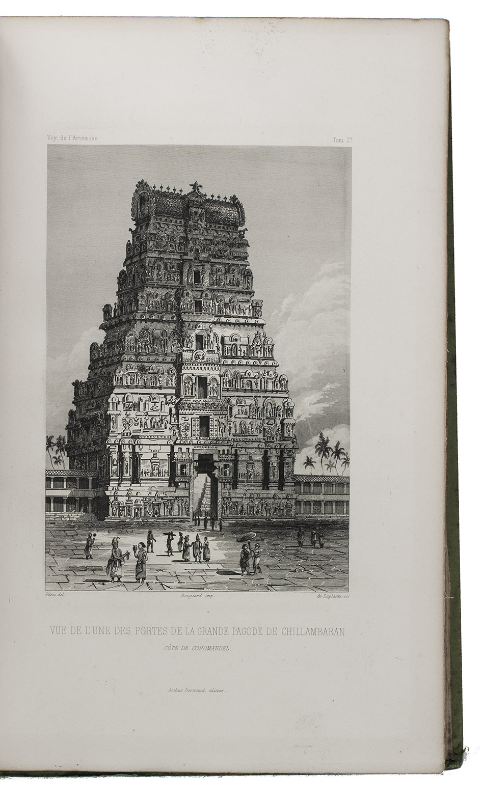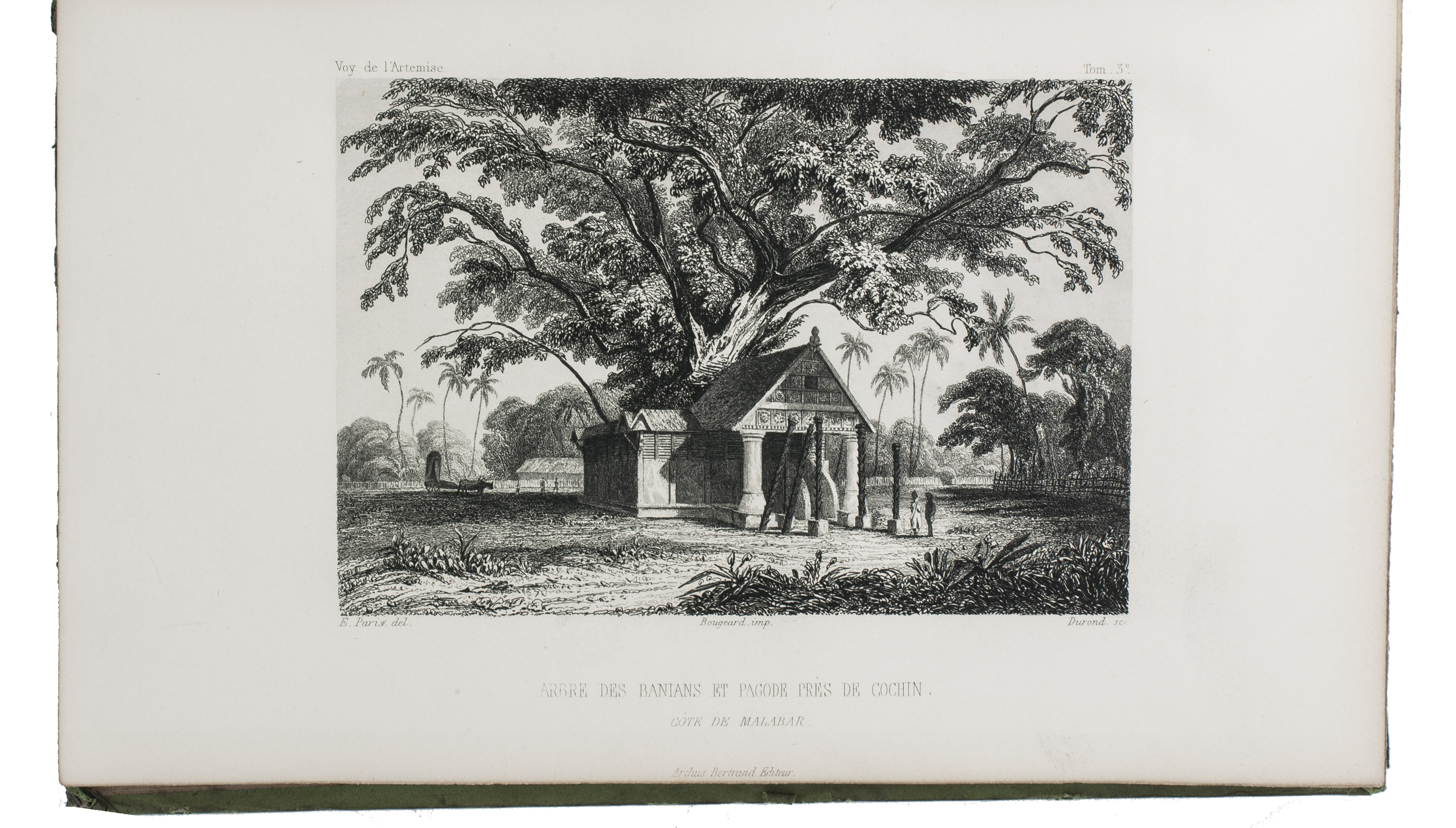 First and only complete edition, containing about 2800 pages of official reports of one of the most important 19th-century circumnavigations of the globe, especially valuable for its information on Tahiti and Hawaii, and for its detailed view of the political manoeuvrings of the various colonial powers with each other and with the indigenous populations, both in the Pacific and elsewhere. The 31 stunning steel-engravings ("fine quality": Forbes) enrich the account greatly. Besides the well-known Pacific views (Hawaii, Tahiti, Tasmania, the Philippines, Vietnam) they include mosques at Karikal and Kolkotta in India and views of Oman, Mocha, Brazil, Peru, California and much more. Laplace also provides valuable information about trade on the coasts of the Arabian peninsula (including Muscat, al-Muka and Bandar-Abbas) and Iran. This was Laplace's second circumnavigation of the globe, sailing in the ship l'Artémise, beginning in 1837, five years after he returned from his voyage in La Favorite. The world map shows the routes of both voyages (the second map shows the Indian subcontinent and surroundings in more detail).