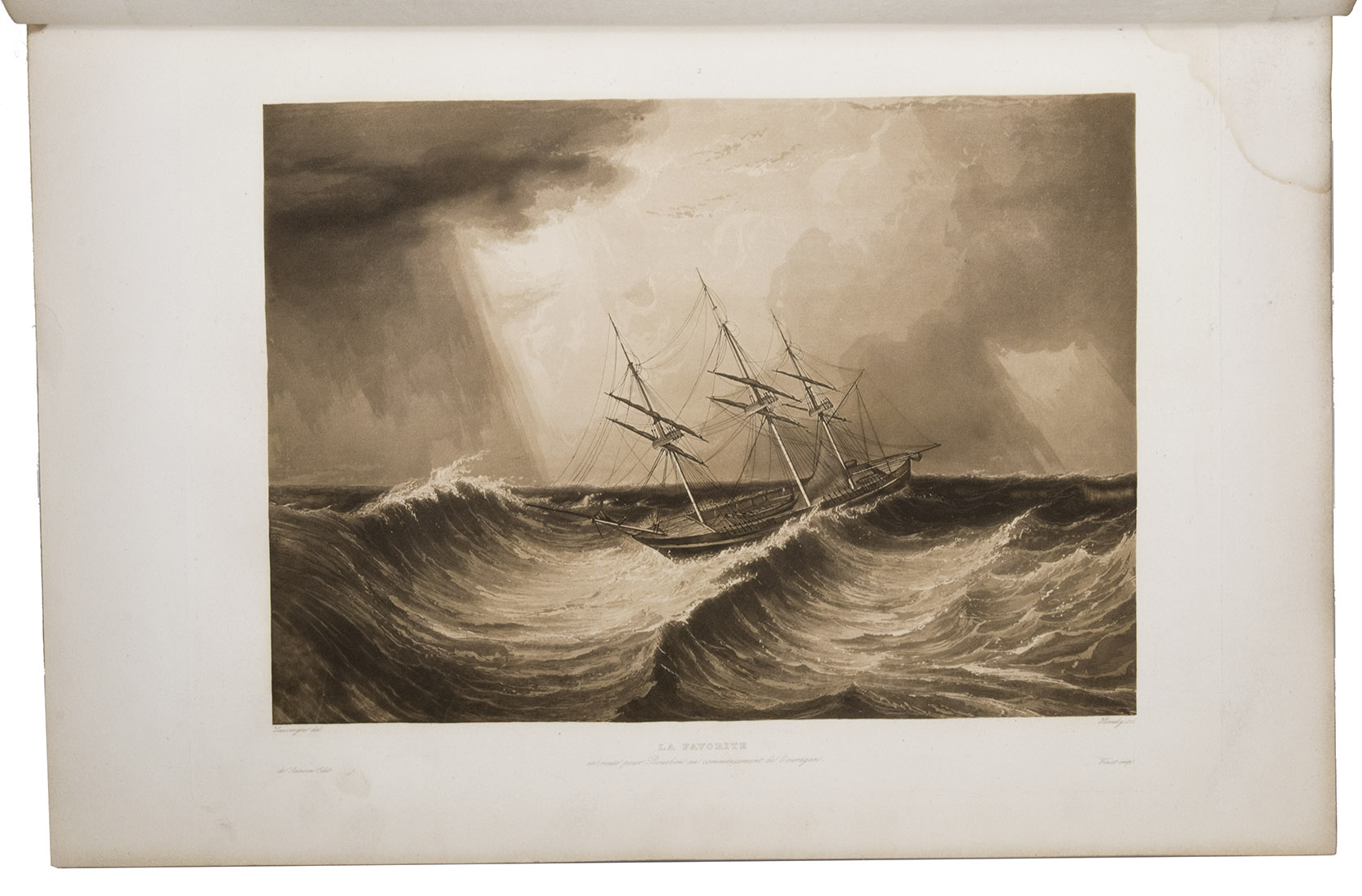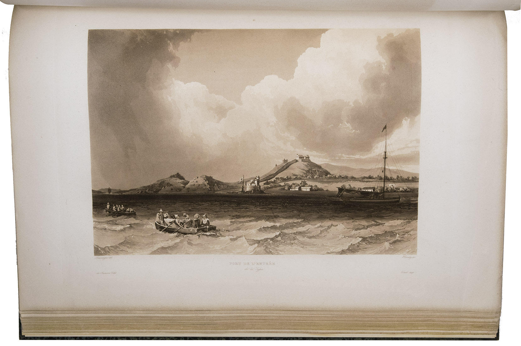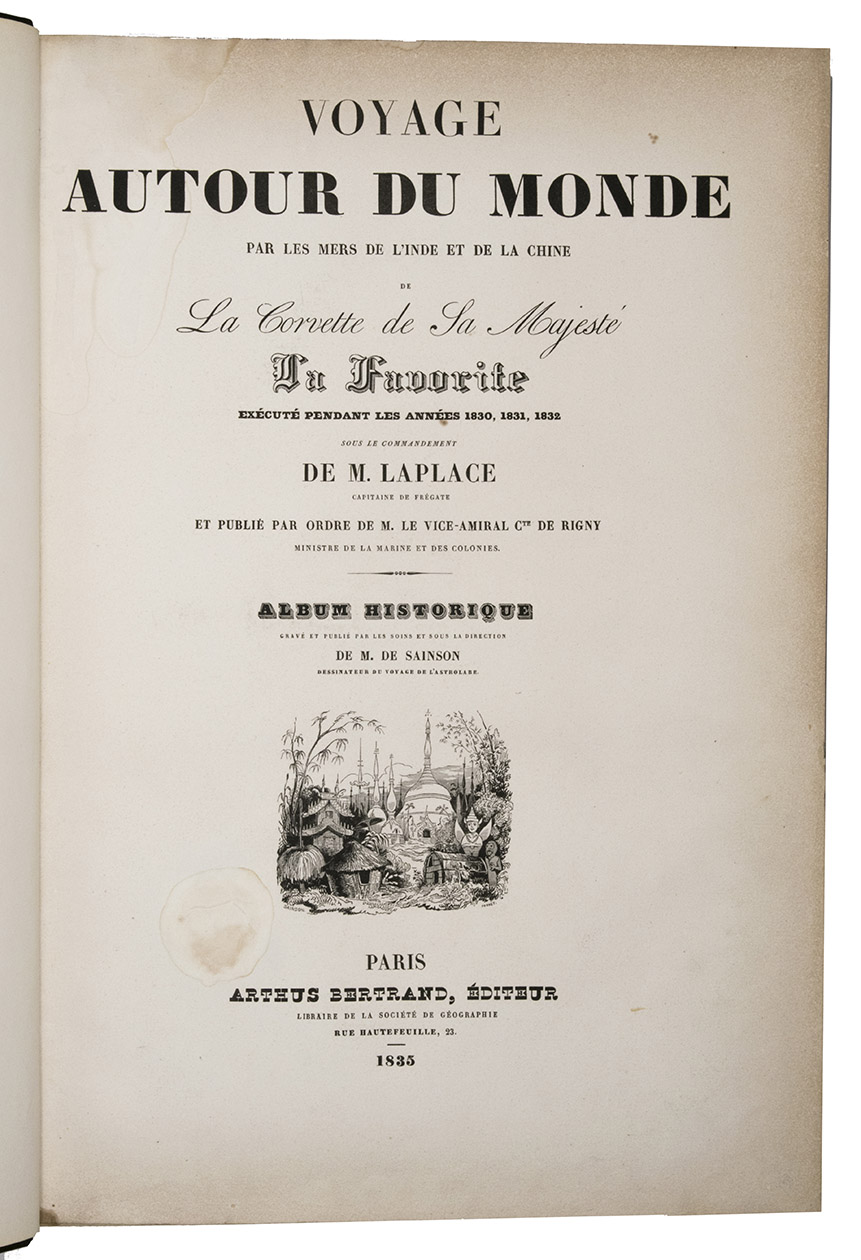 First edition of an important account of the circumnavigation of the world under command of Cyrille Pierre Théodore Laplace (1793-1875). In May 1829 Laplace was appointed commander of the ship La Favorite, to make a journey around the world for scientific and commercial purposes. He departed from Toulon, followed the coast lines of Africa past the Cape Good Hope and visited Pondichéry, Madras and Surabaya. He explored the coasts of Cochinchina and Tonkin and set sail to the Philippines and after that Australia, Tasmania and New Zealand. He crossed the Pacific on his return to Toulon, past Valparaiso, Cape Horn and the coasts of Brazil. On 20 April 1832 he touched ground in Toulon again. The journey was a considerable success and added many important details to the scientific knowledge of the areas explored.