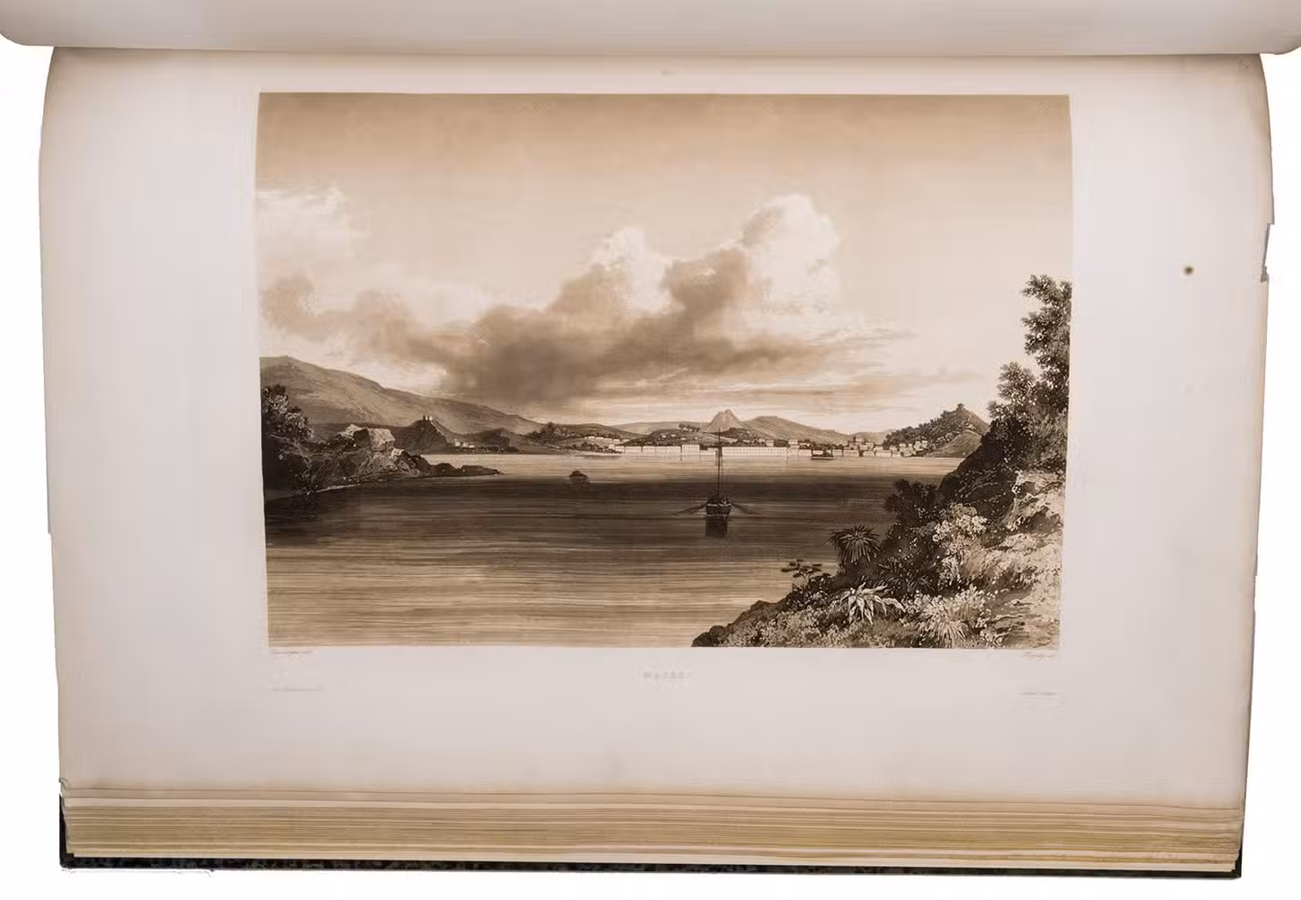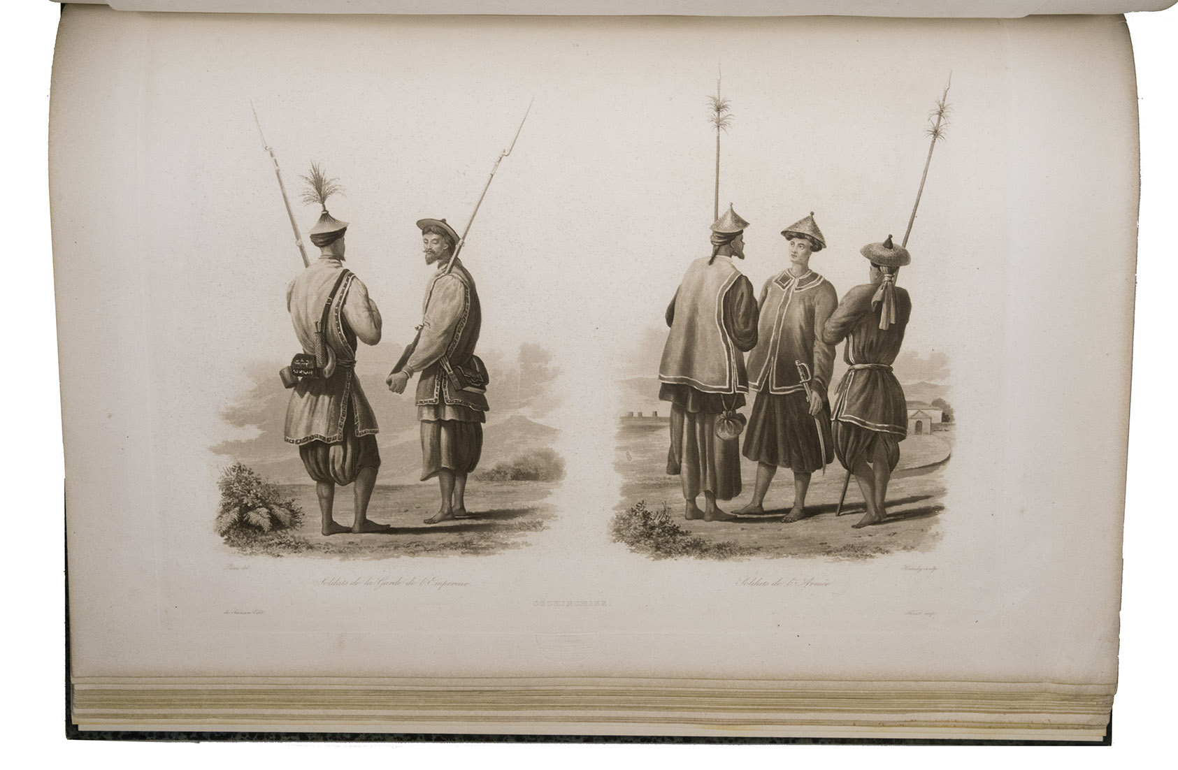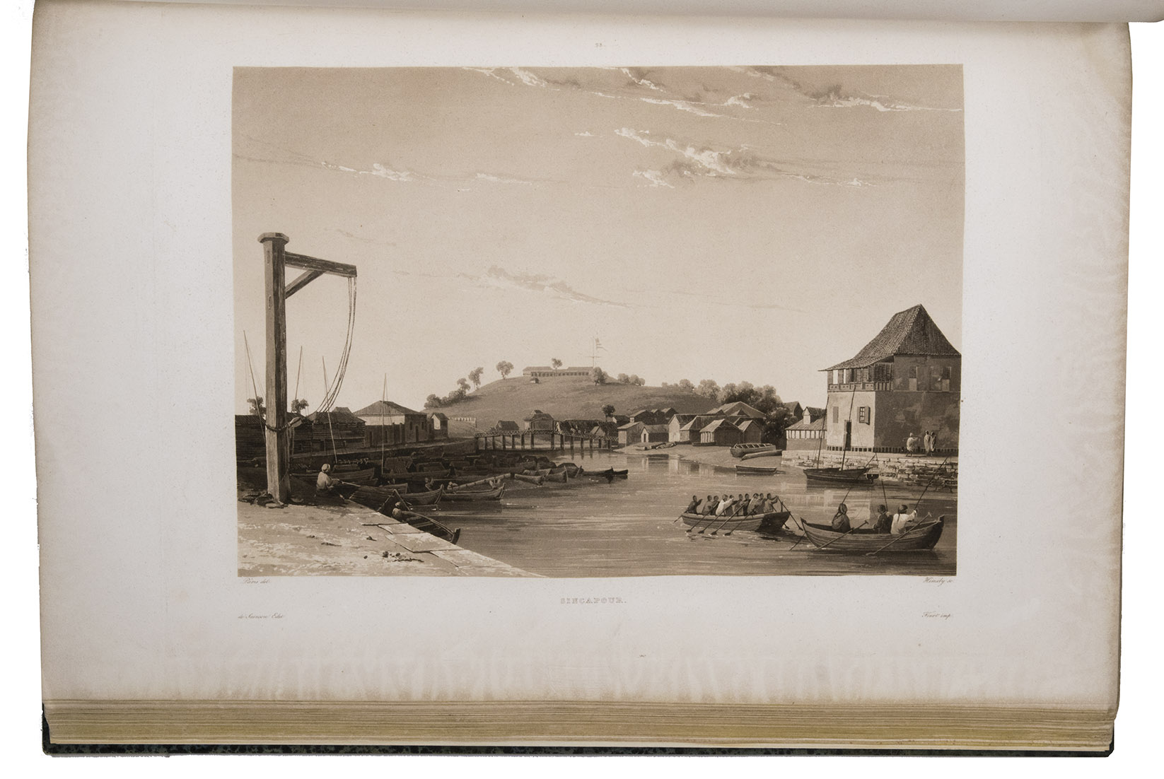 First edition of an important account of the circumnavigation of the world under command of Cyrille Pierre Théodore Laplace (1793-1875). In May 1829 Laplace was appointed commander of the ship La Favorite, to make a journey around the world for scientific and commercial purposes. He departed from Toulon, followed the coast lines of Africa past the Cape Good Hope and visited Pondichéry, Madras and Surabaya. He explored the coasts of Cochinchina and Tonkin and set sail to the Philippines and after that Australia, Tasmania and New Zealand. He crossed the Pacific on his return to Toulon, past Valparaiso, Cape Horn and the coasts of Brazil. On 20 April 1832 he touched ground in Toulon again. The journey was a considerable success and added many important details to the scientific knowledge of the areas explored.