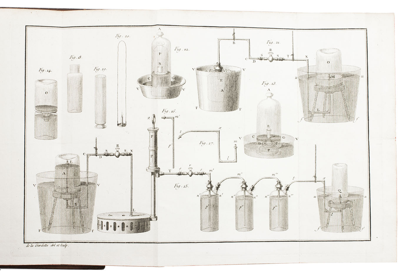 Paris, Laurent François Prault for Durand neveu (Pierre Etienne Germain), François Ambroise Didot le jeune, & Jacques Esprit, 1774. 2 parts in 1 volume [= all published]. 8vo. With several fine woodcut borders, head- and tailpieces, some tables in the text, and 23 figures on three folding plates by and after Pierre-Claude de la Gardette (1745-1792). Contemporary marbled calf. [1], [1 blank], II, XXX, [1], [1 blank], "436" [= 448] pp.