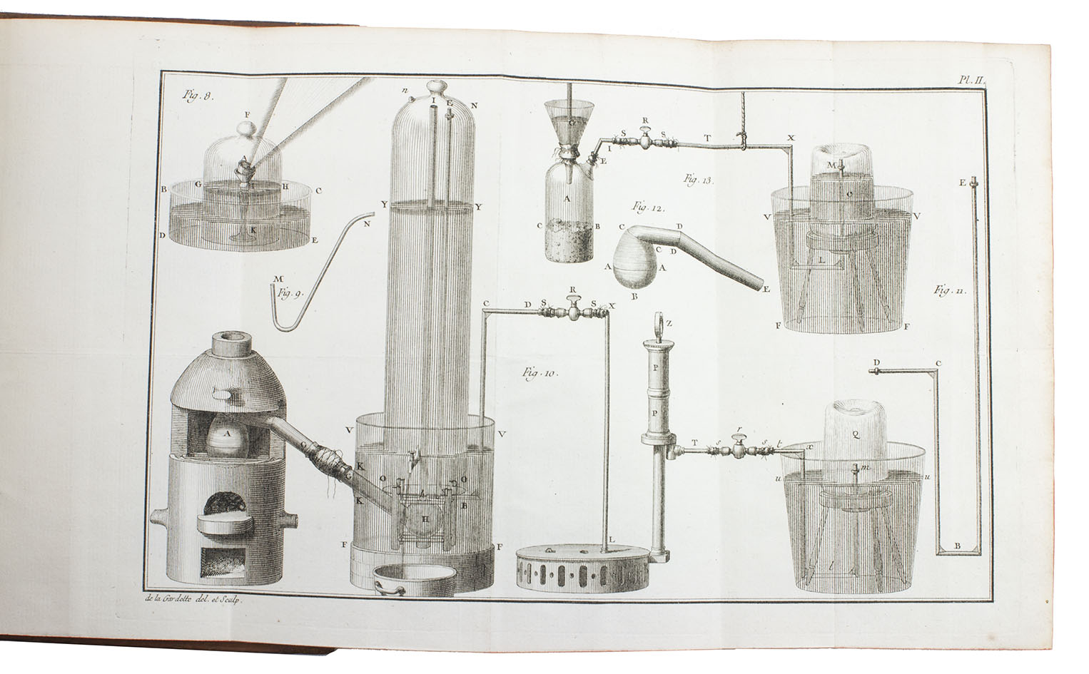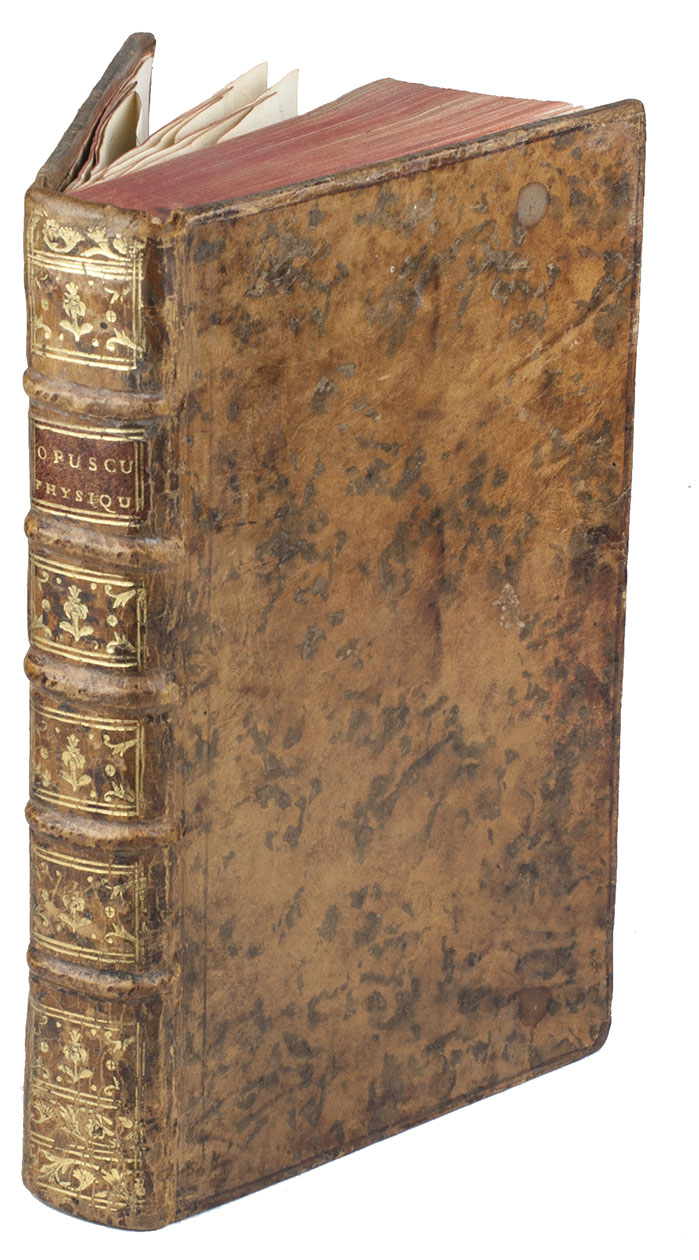 Our copy of Lavoisier's important first scientific work contains the remarkable variant-issue with the 7 corrected leaves ('cancellanses') bound in. which are all marked with an *: after the title there is the corrected dedication leaf (pp. I-II) to Mr. Trudaine de Montigny with a woodcut head piece, before the original dedication (pp. I-II (= leaf a1). The text is very slightly altered. Furthermore, at the end, between pp. 434 and 435, there are six extra corrected leaves bound in: pp. 255-6, 5-6, 283-4, 193-4, 307-8 and 257-8. In our copy the original leaves are still present in their appropriate places, so that we can see the alterations of the text. These are also of very minor importance, but show how very painstakingly indeed Lavoisier's work was revised in proof.