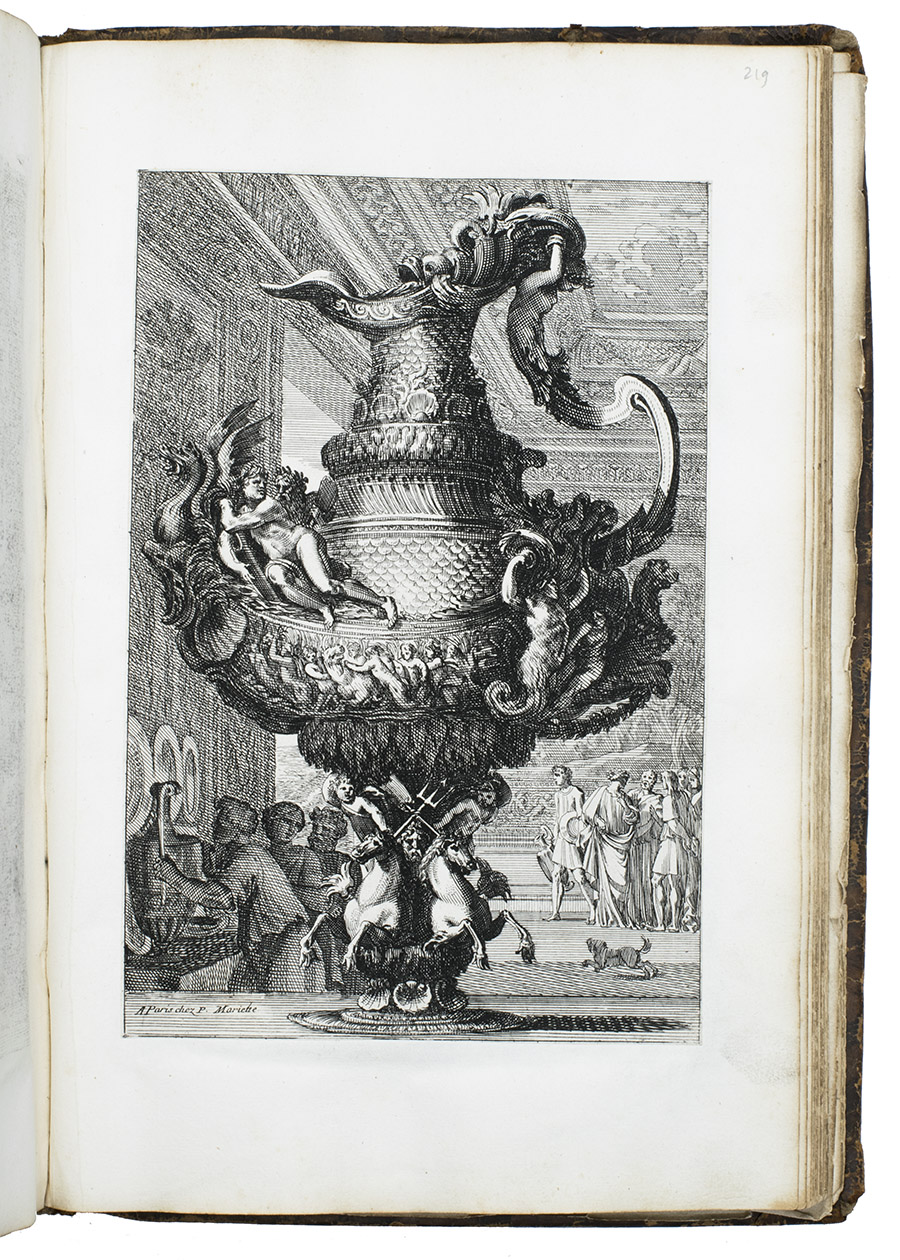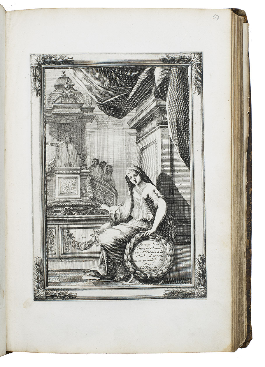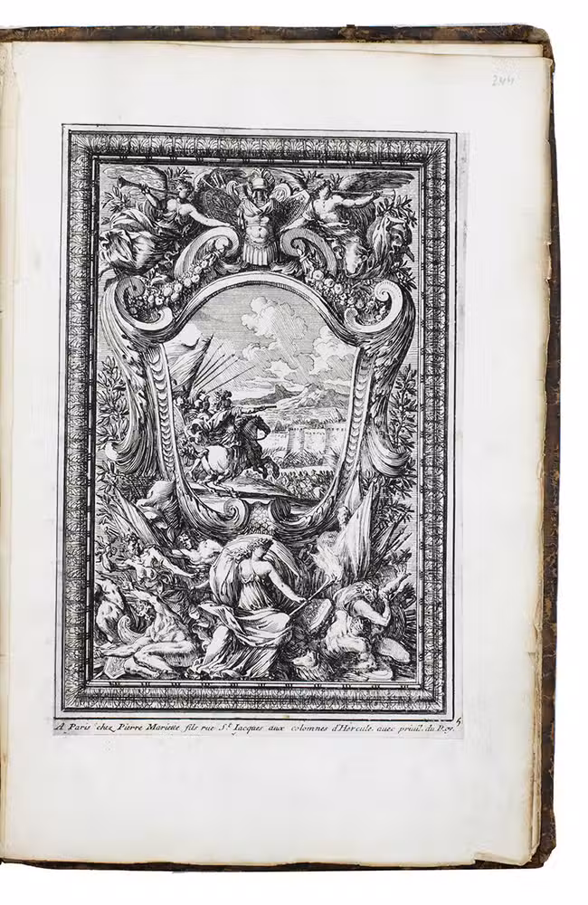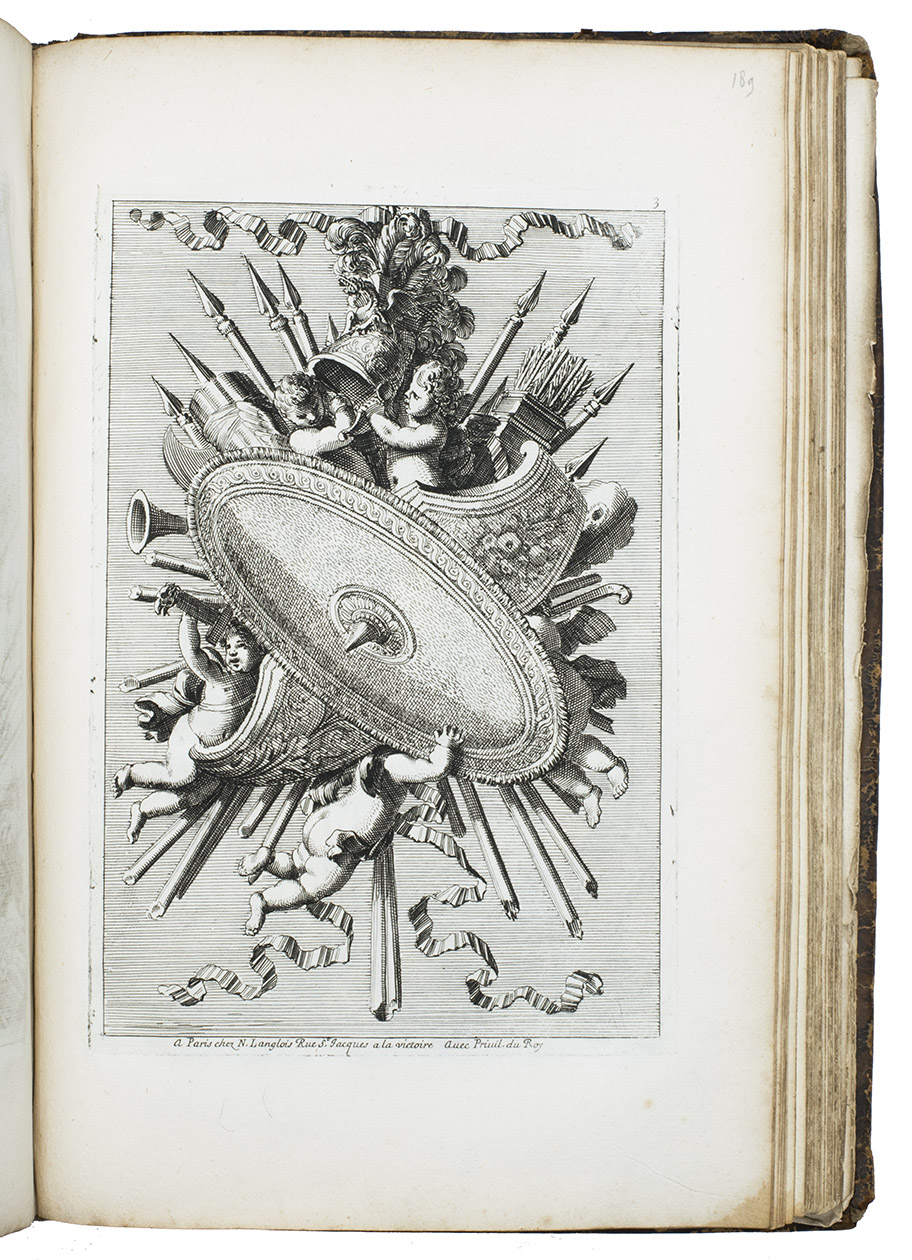Paris, François Jollain, Pierre Mariette, Jean Le Blond, Nicolas Langlois, 1651-1670. 41 parts in 1 volume. Folio. With 40 engraved print-series nearly all by Jean Le Pautre. Further with 1 duplicate series and 6 individual plates not in these series. With a total of 253 full-page engraved plates: 33 complete series of 6 plates, 1 complete series of 12 plates, and 6 incomplete series (lacking 10 of 42 plates) plus an incomplete duplicate of one of the complete series (5 of 6 plates), and the 6 individual plates. About half the series cut down and mounted on blank leaves or on the back of engraved leaves. 18th-century mottled calf. [248] engr. ll.
