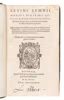 Enlarged, first Plantin edition of a very popular work of the secrets of nature, considering physiological, physical, medical, religious and moral topics. Guided by the Hippocratic Corpus, Aristotle, natural philosophy, Christianity, and the four humors, the author wrote a complicated treatise that covers reproduction, hygiene, demonology, diet, the use of alcohol, the influence of the stars, natural history, pregnancy, and much more. It was republished numerous times, and versions of it were read well into the 20th century. The work "was often cited by subsequent learned authors, and the numerous editions and translations of it show that is was well suited to the taste of the time" (Thorndike).