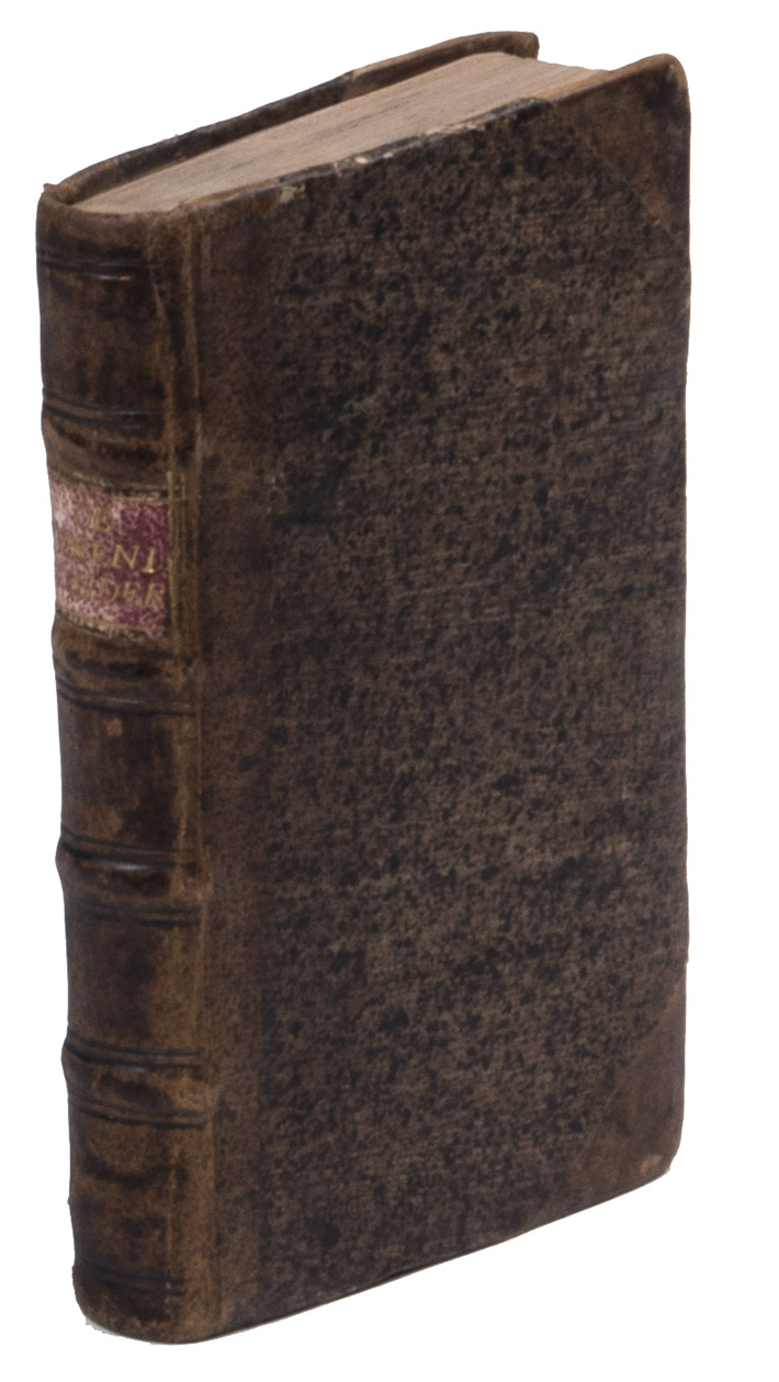 Leiden, Andreas Dyckhuisen, 1707. 12mo. Contemporary half calf, boards covered with sprinkled paper, red spine label lettered in gold. 268 pp. [pp. 1-16 with the index missing].