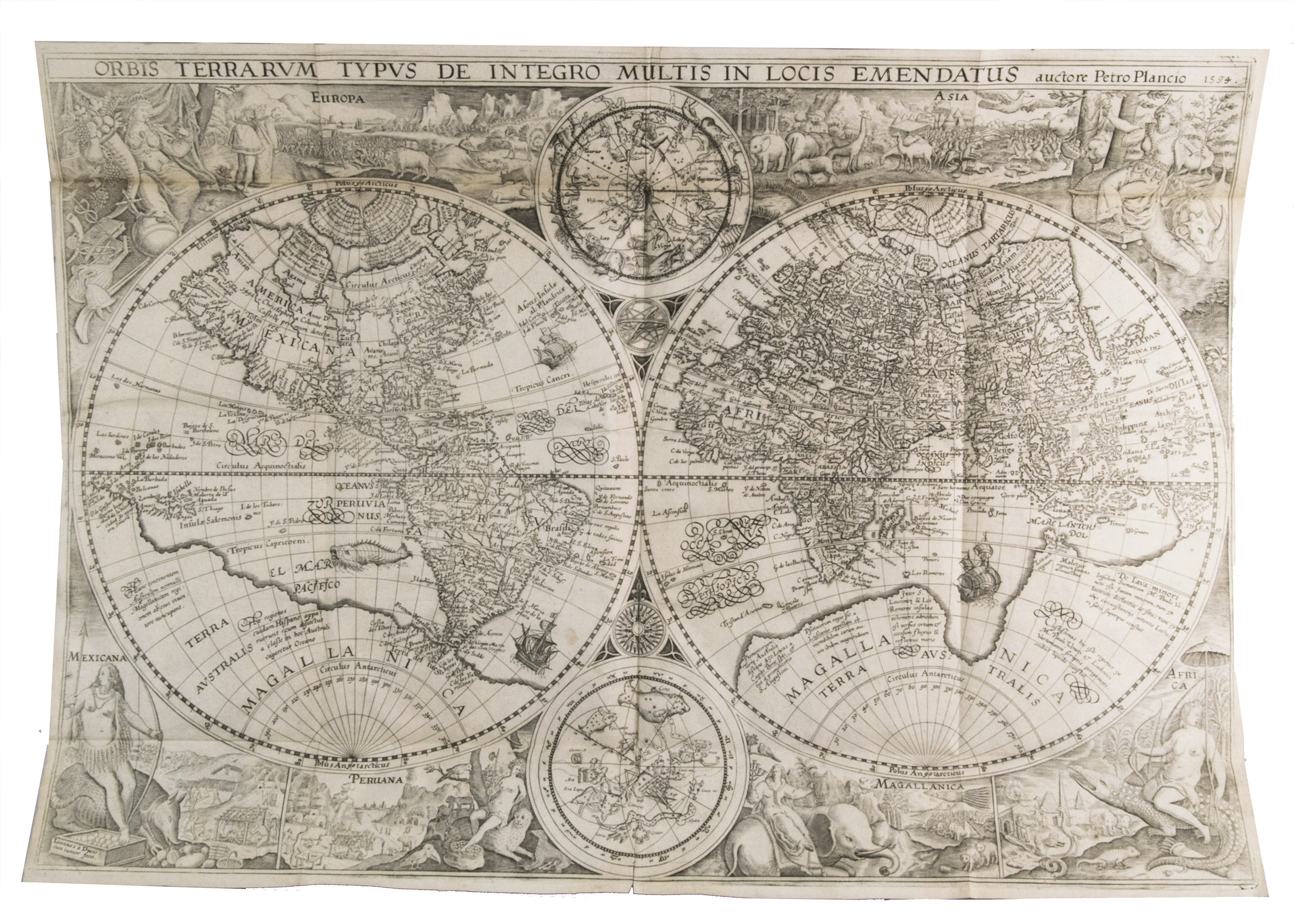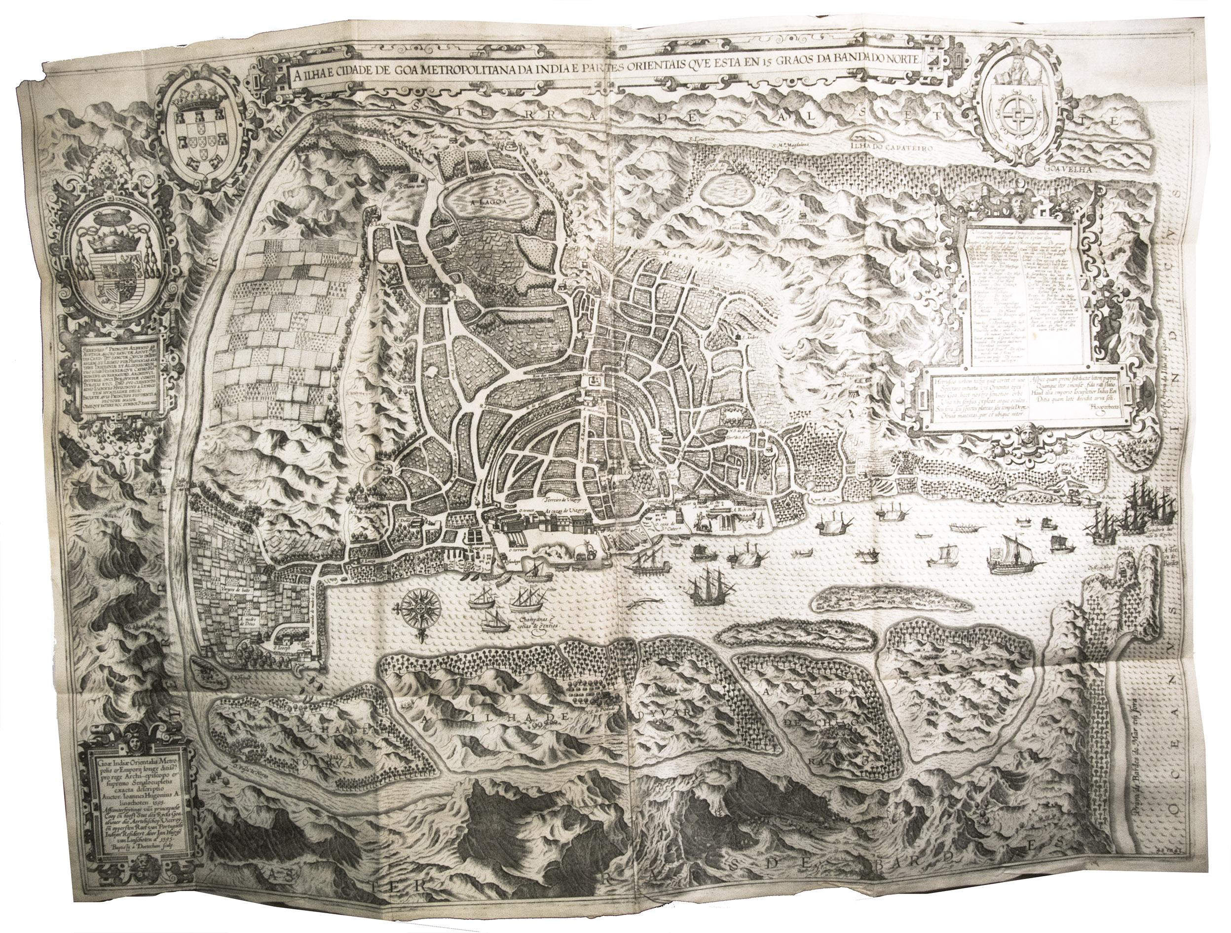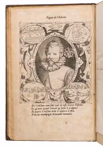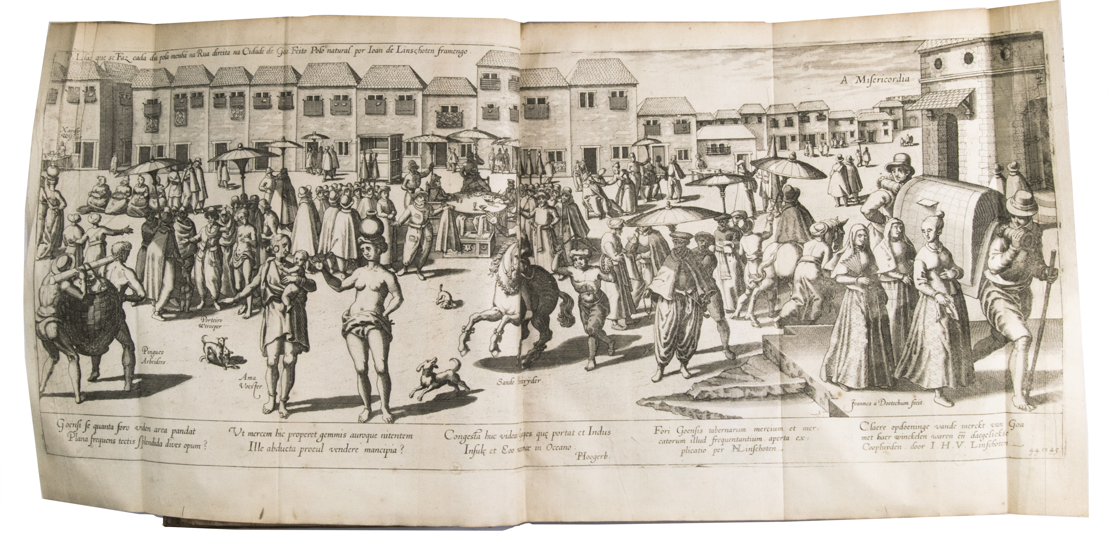 The second French edition of Linschoten's classic illustrated guide for travellers to the East and West Indies, termed by Lach ''the most important of the first-hand accounts published independently of the great travel collections'' (I.198). No other book contained so much useful intelligence on the East and West Indies. Unhindered by the censorship that constrained writers from the Iberian peninsula (details of seas and coasts in Asia and the Americas were military secrets), he included such information as sailing directions, physical descriptions of countries, and statistics on commerce and trade. The work was held in such high regard that for nearly a century, every Dutch ship sailing to Africa and Asia carried a copy of a Dutch edition of Linschoten. The 42 plates, including 11 large folding plates, are especially noteworthy, including 6 maps and several birds-eye views, many with coats of arms of the regions shown and of the colonial powers that controlled parts of them, as well as richly decorated cartouches and other functional and decorative elements.