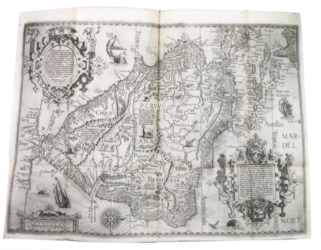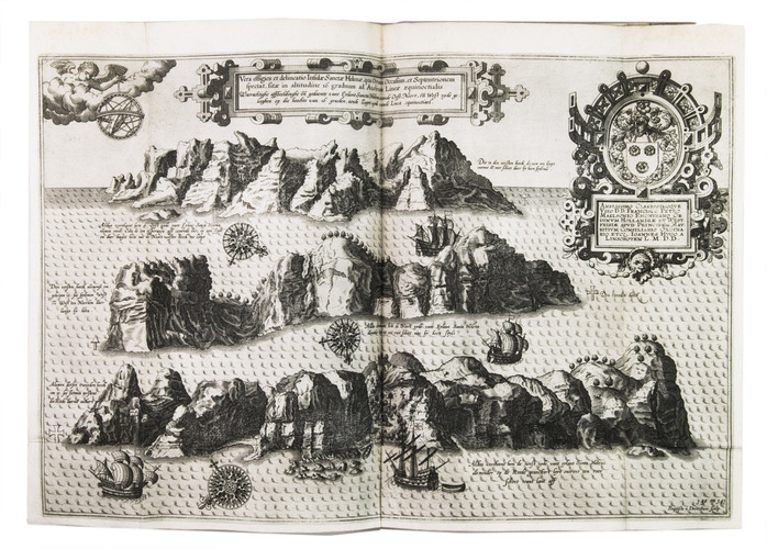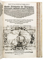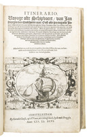 First edition in the original Dutch of one of the most important travel books ever produced. Also known as "The key to the East", it was the first printed work to include precise sailing instructions for the East Indies. This opened the way for both the Dutch East India Company (VOC) and the British East India Company (EIC), ending the Portuguese monopoly on the East Indian trade. "[...] this important work contains all the knowledge and learning related to the East and West Indies and navigation to those parts that was available at the end of the sixteenth century. It was held in such high esteem that for nearly a century a copy was given to each ship sailing to India as a guide to the sailing directions. The fact that most copies were in continual use is no doubt the reason that fine copies, especially with all correct plates and maps, are so very rare" (Hill). The present copy is complete with all maps and plates, and even includes the often missing instructions for the bookbinder.