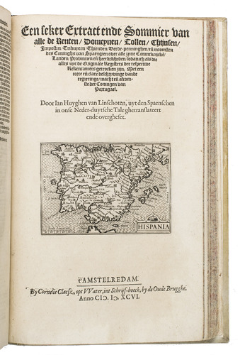 Van Linschoten sold the story of his travels to the Amsterdam bookseller and publisher Cornelis Claesz, who had specialised in shipping, geography and travels, and who published it in 1596 (this copy), containing Van Linschoten's personal experiences and travels, and, among very many other things, the commercially sensitive information to which he had had access to in Goa. The work provided the Dutch with valuable information regarding Portuguese sea routes to the East, their resupply points around Africa and their trading stations in the East, as well as important navigational data about currents, deeps and the location of islands and sandbanks, being absolutely vital for safe navigation. Thus, the greatly coveted shipping route to the East Indies and the route between the Asiatic sea ports came within reach, offering the missing link to the search into itineraries and trade routes to the Indonesian archipelago. Linschoten also gives detailed descriptions of the Portuguese territories and how they were administrated, including descriptions of spice trees and spice growing areas.The work was immediately a great success and went into many editions in Dutch over the course of the next fifty years. In 1598 a German edition appeared, and in the same year an English translation was published in London, entitled: John Huighen van Linschoten his discours of voyages into ye Easte & West Indies. French editions followed in 1610, 1619 and 1638. A Latin edition was published in 1599 without the maps.