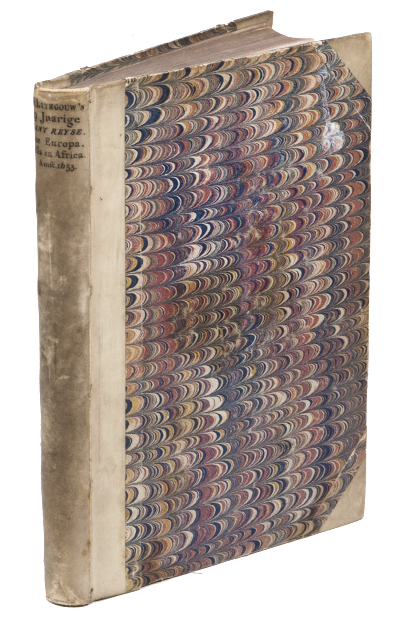 Second Dutch edition of a classic account of three voyages by the Scotsman William Lithgow (1582-1645?), mostly on foot, from Rome to Greece, Crete, Turkey, Cyprus, the Holy Land, Egypt, Malta, continental Europe and North Africa, including the British Isles and the Iberian peninsula. He gives an account of coffee, describes Turkish baths and long Turkish tobacco pipes, pigeon post between Aleppo and Bagdad and the hatching of chicken eggs by artificial incubation, all largely unknown in Europe when he wrote.