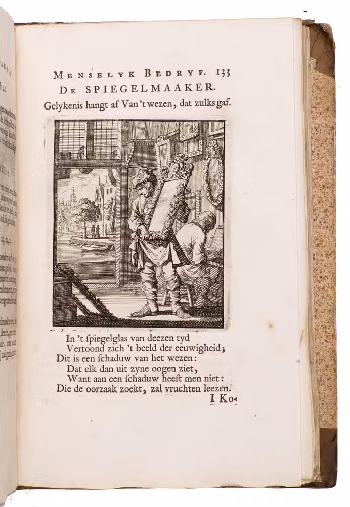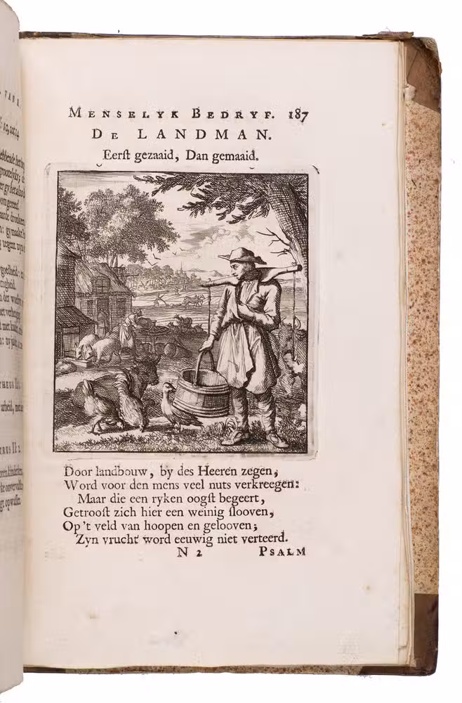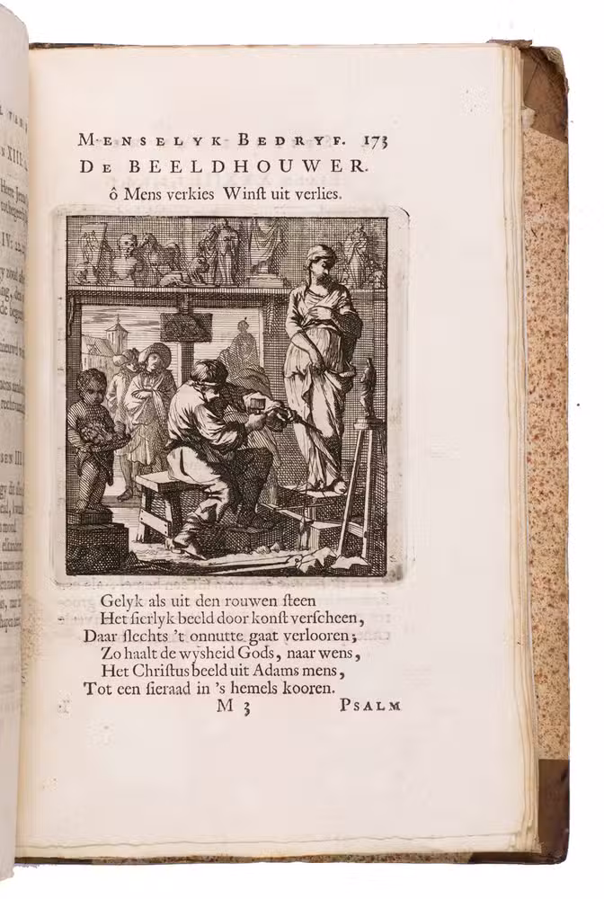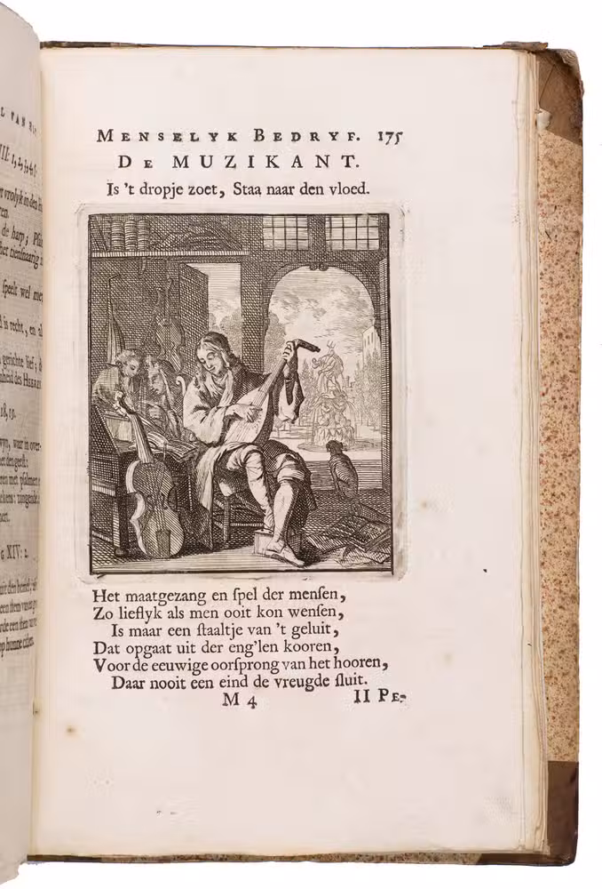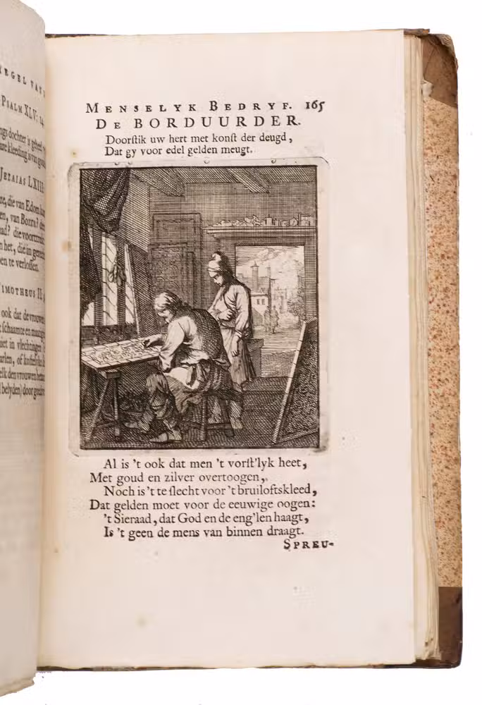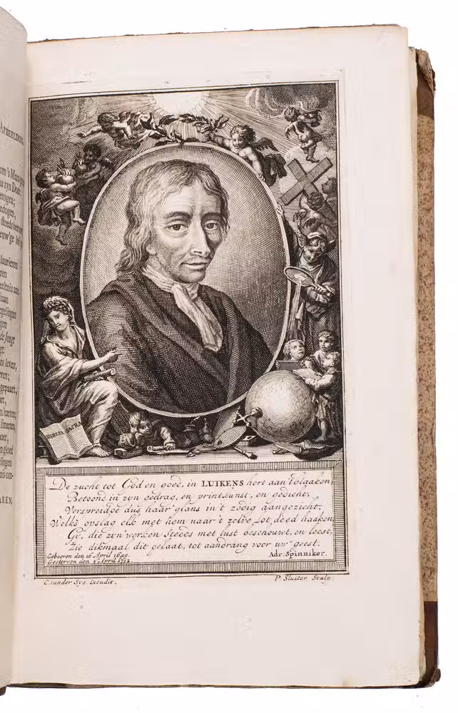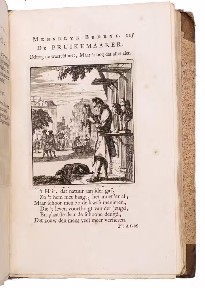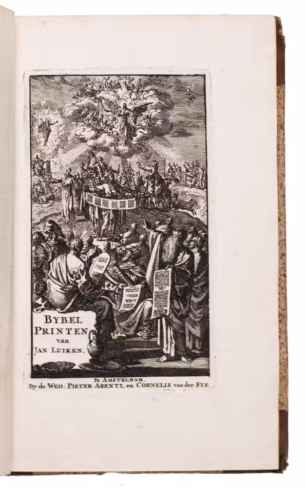 Attractive set of 11 works of the famous Dutch poet, artist and engraver Jan Luyken (1649-1712). Luyken, like Saint Augustine, had led a rather frivolous life when young, which he said helped him to vividly depict the dangers and temptations of a worldly life. Most of the works included are emblem books, with engravings accompanied by a Dutch motto, a poem, and several relevant Biblical passages for further contemplation. The set contains: