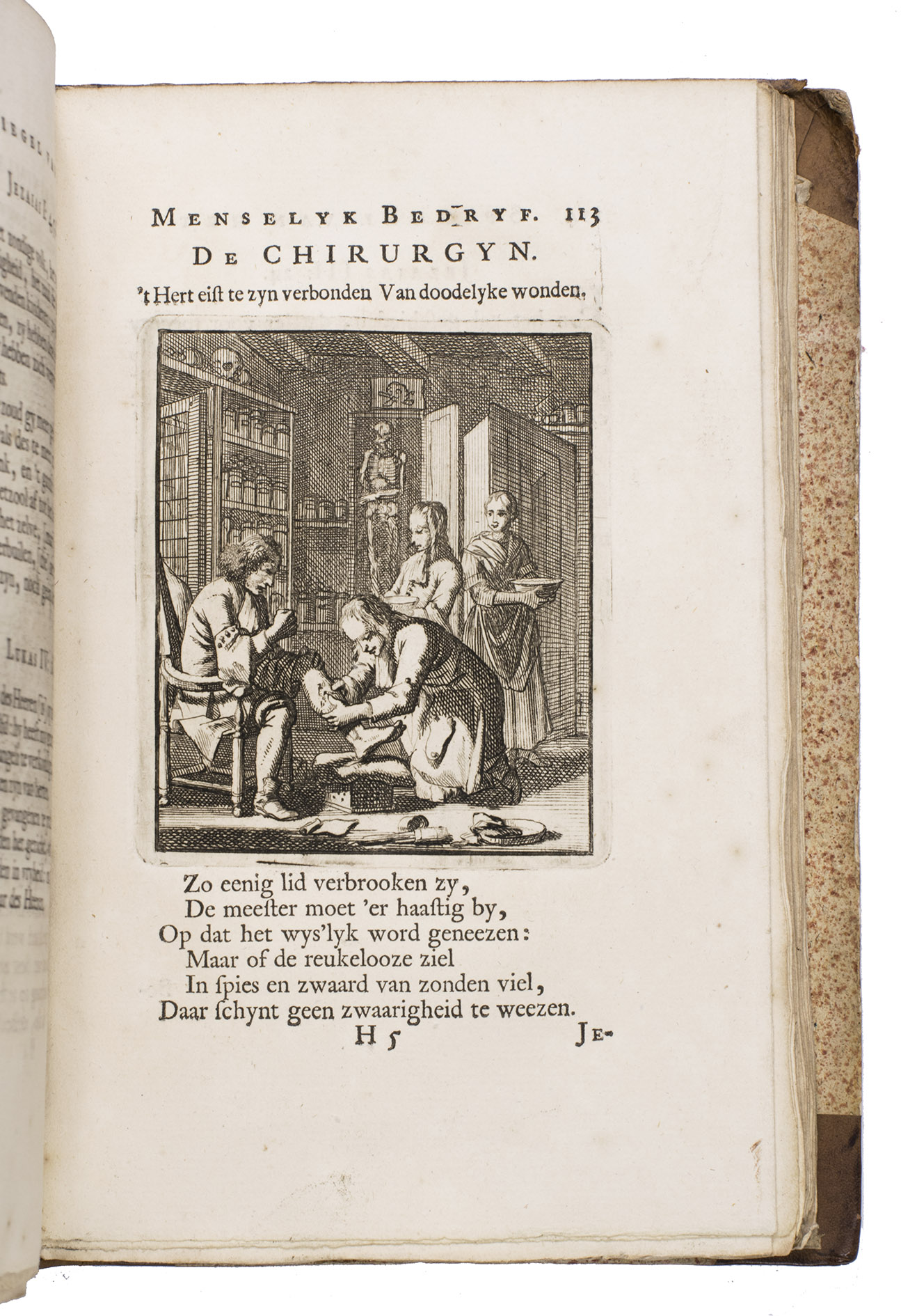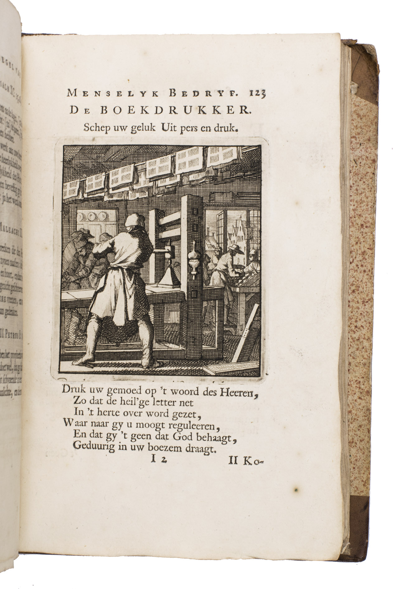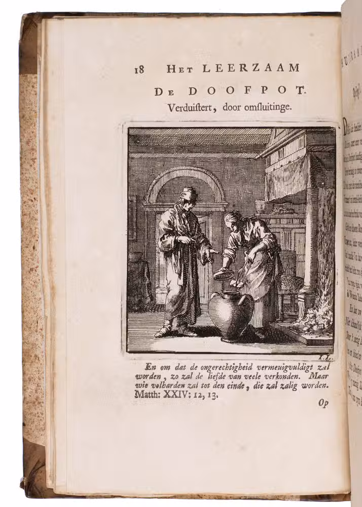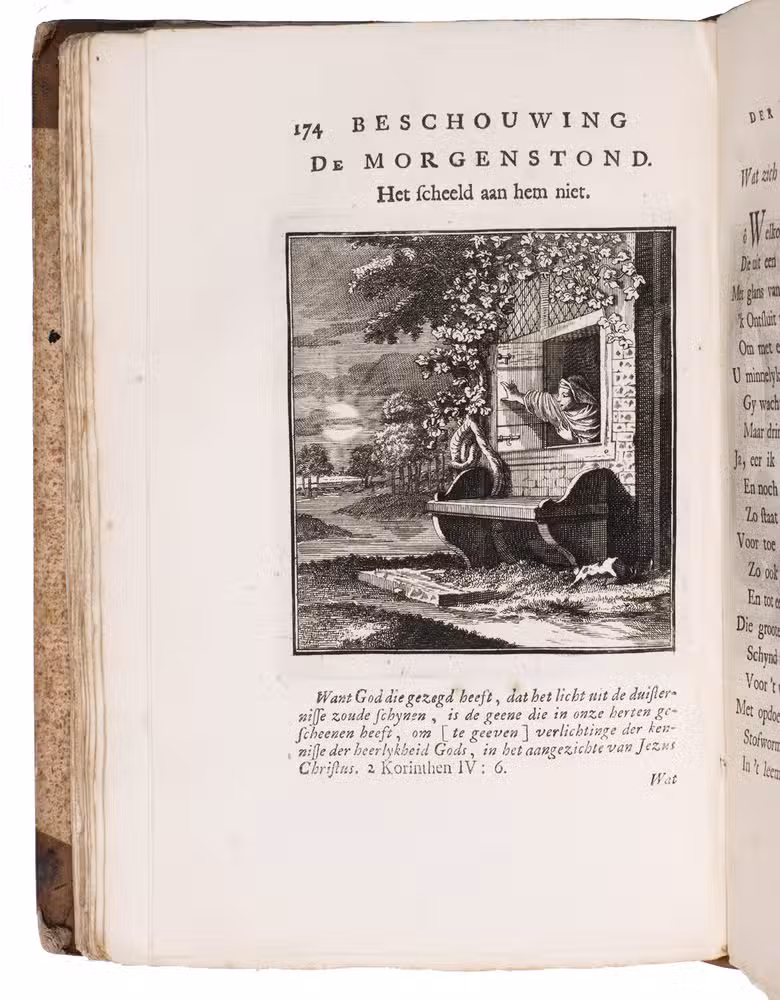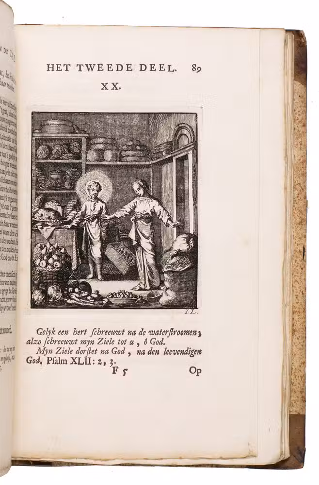 Attractive set of 11 works of the famous Dutch poet, artist and engraver Jan Luyken (1649-1712). Luyken, like Saint Augustine, had led a rather frivolous life when young, which he said helped him to vividly depict the dangers and temptations of a worldly life. Most of the works included are emblem books, with engravings accompanied by a Dutch motto, a poem, and several relevant Biblical passages for further contemplation. The set contains: