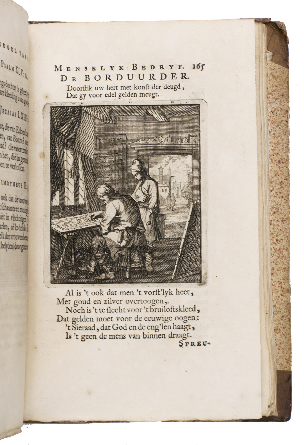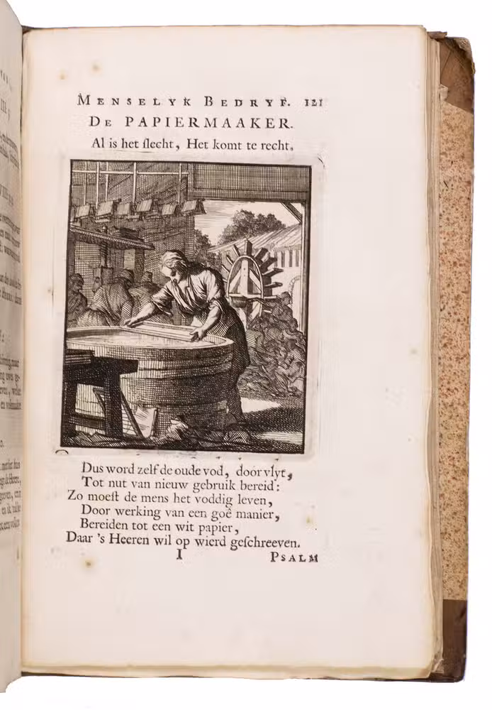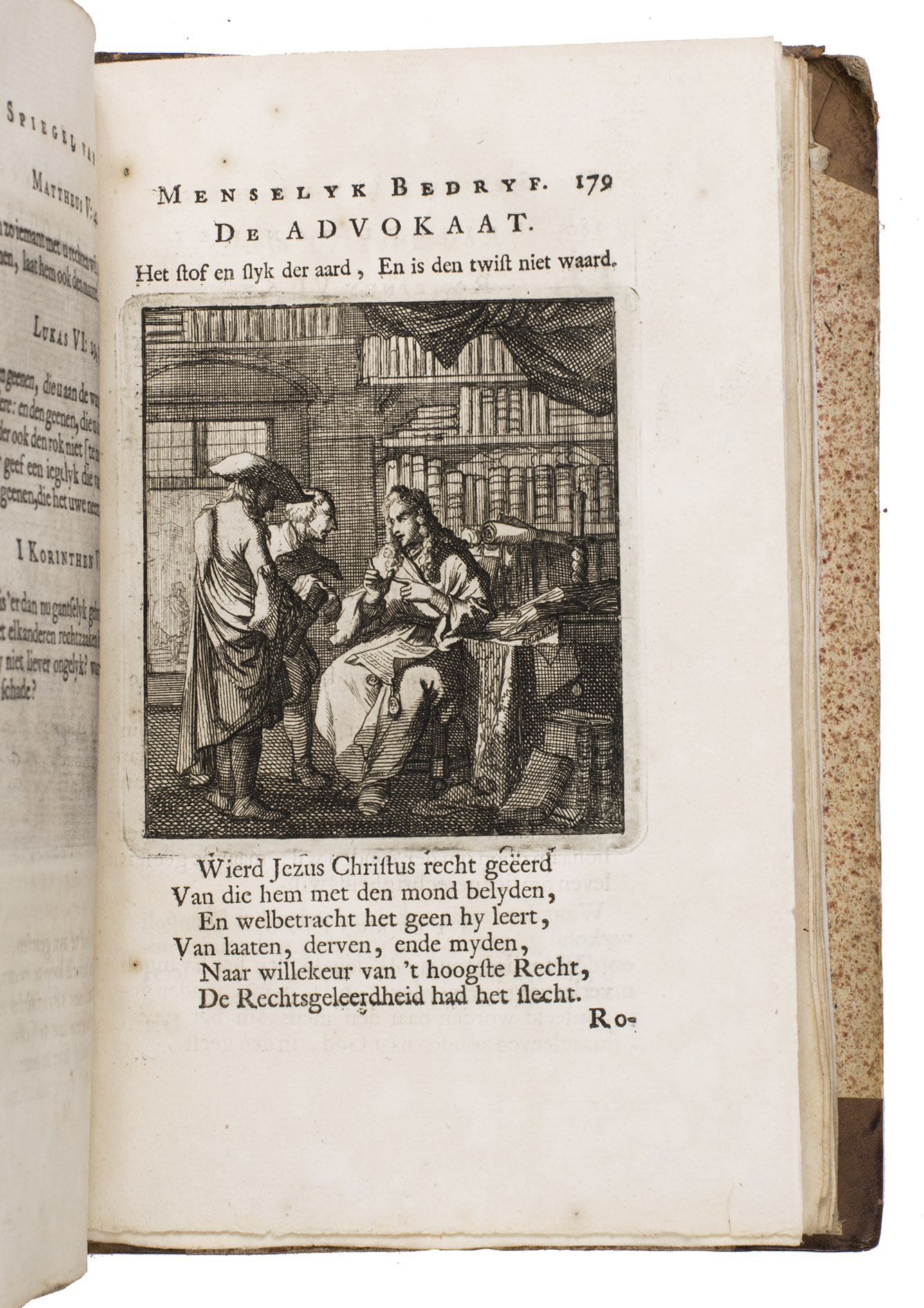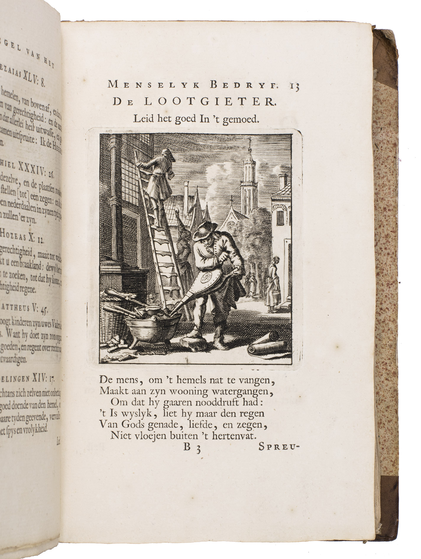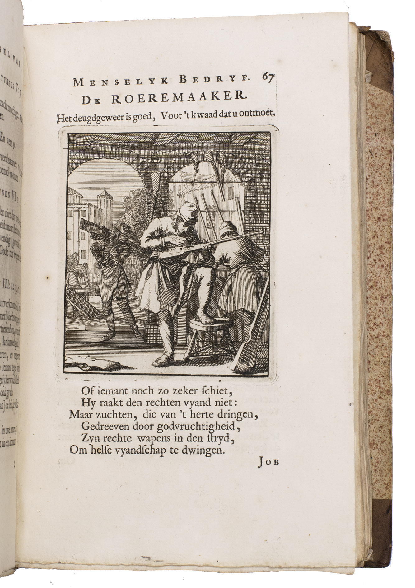 Attractive set of 11 works of the famous Dutch poet, artist and engraver Jan Luyken (1649-1712). Luyken, like Saint Augustine, had led a rather frivolous life when young, which he said helped him to vividly depict the dangers and temptations of a worldly life. Most of the works included are emblem books, with engravings accompanied by a Dutch motto, a poem, and several relevant Biblical passages for further contemplation. The set contains: