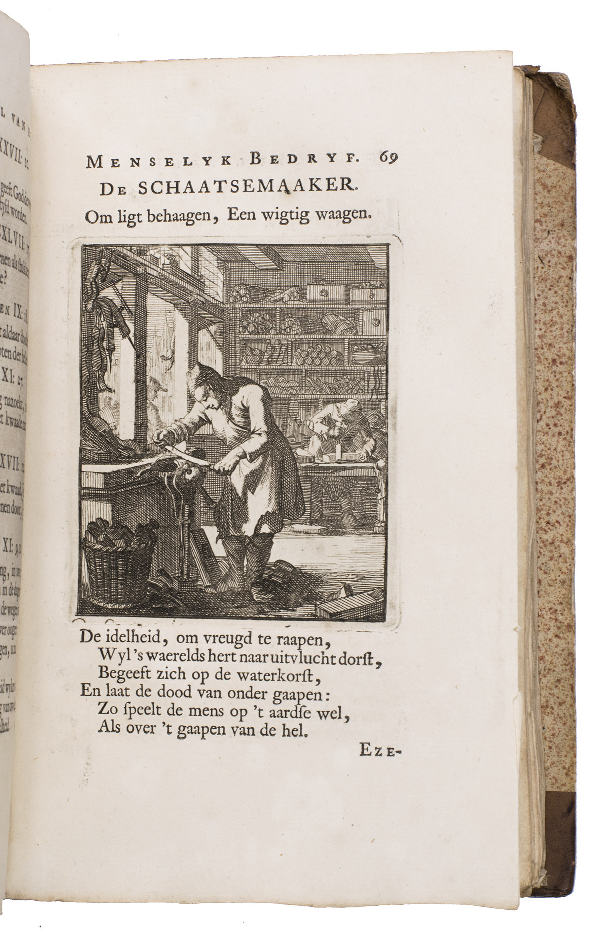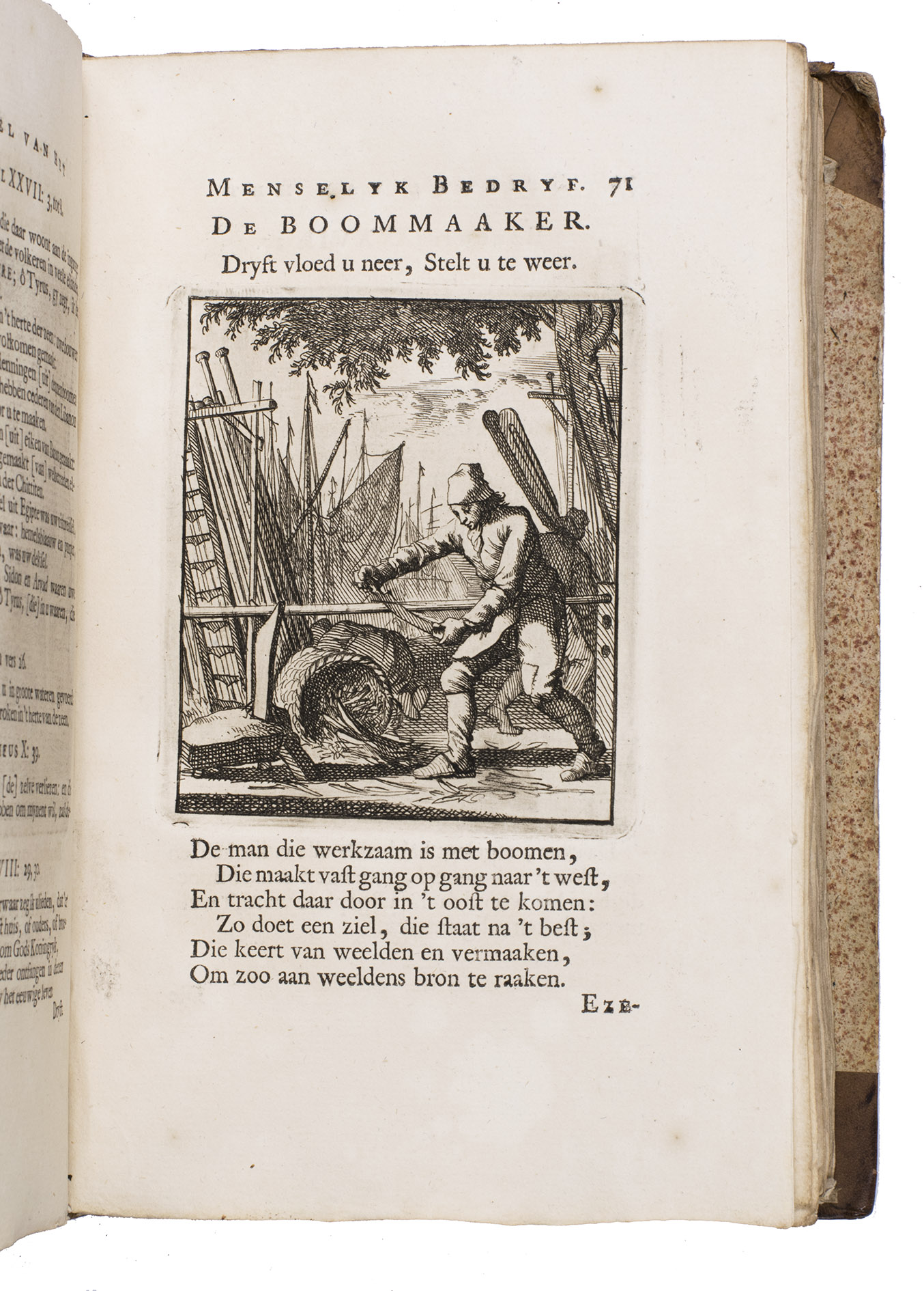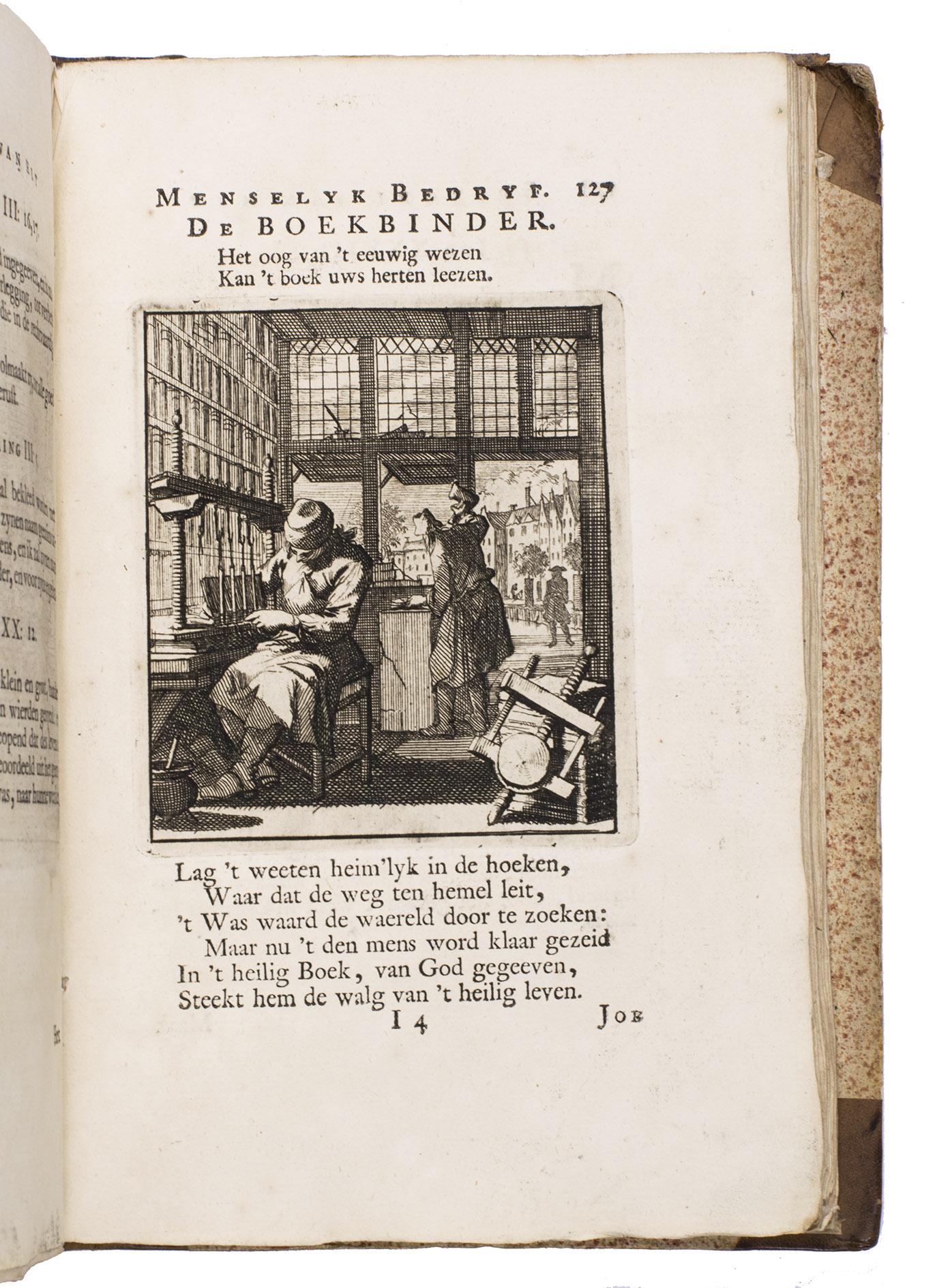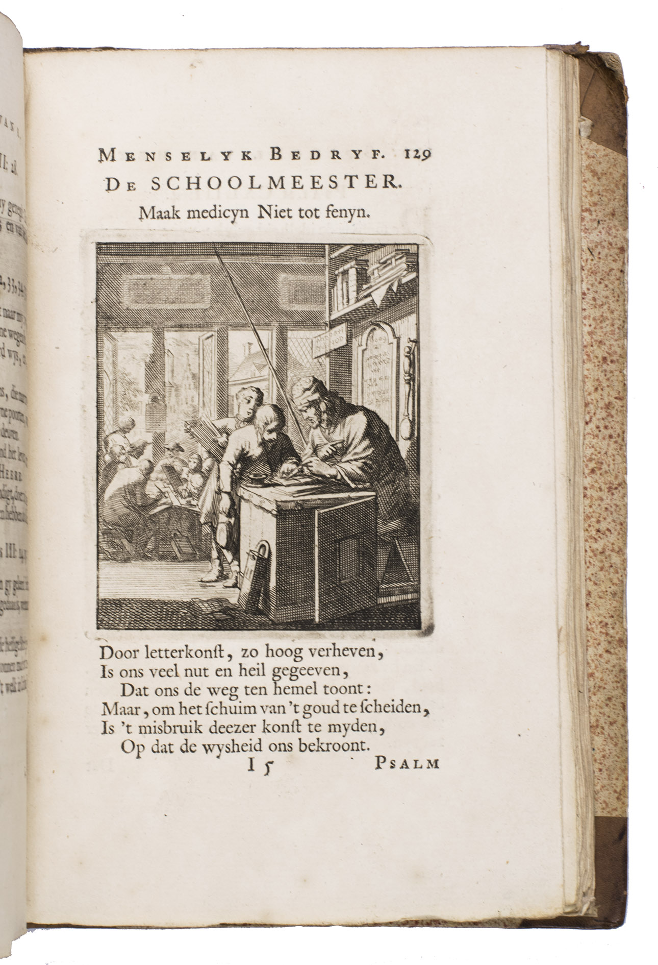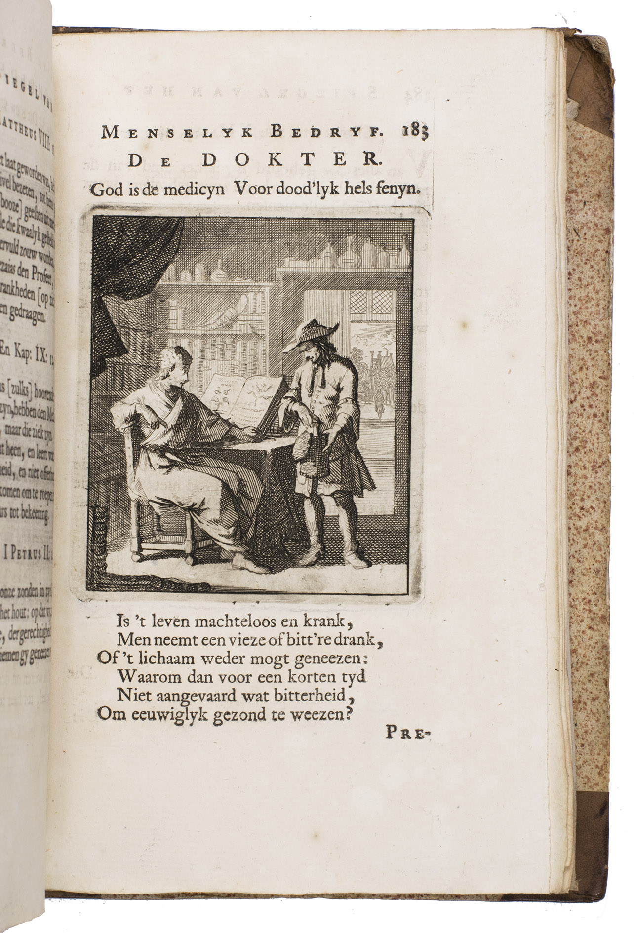 Attractive set of 11 works of the famous Dutch poet, artist and engraver Jan Luyken (1649-1712). Luyken, like Saint Augustine, had led a rather frivolous life when young, which he said helped him to vividly depict the dangers and temptations of a worldly life. Most of the works included are emblem books, with engravings accompanied by a Dutch motto, a poem, and several relevant Biblical passages for further contemplation. The set contains: