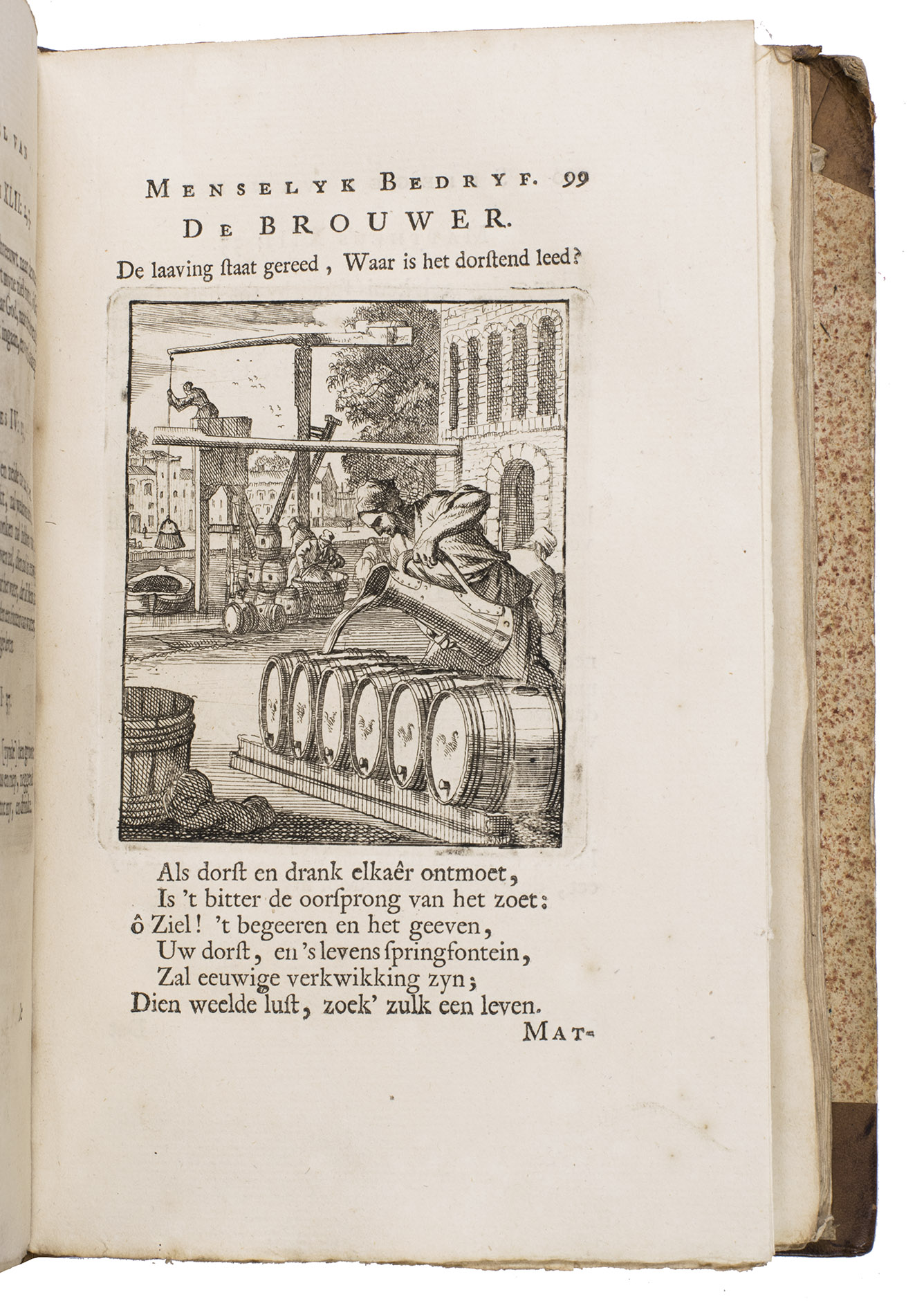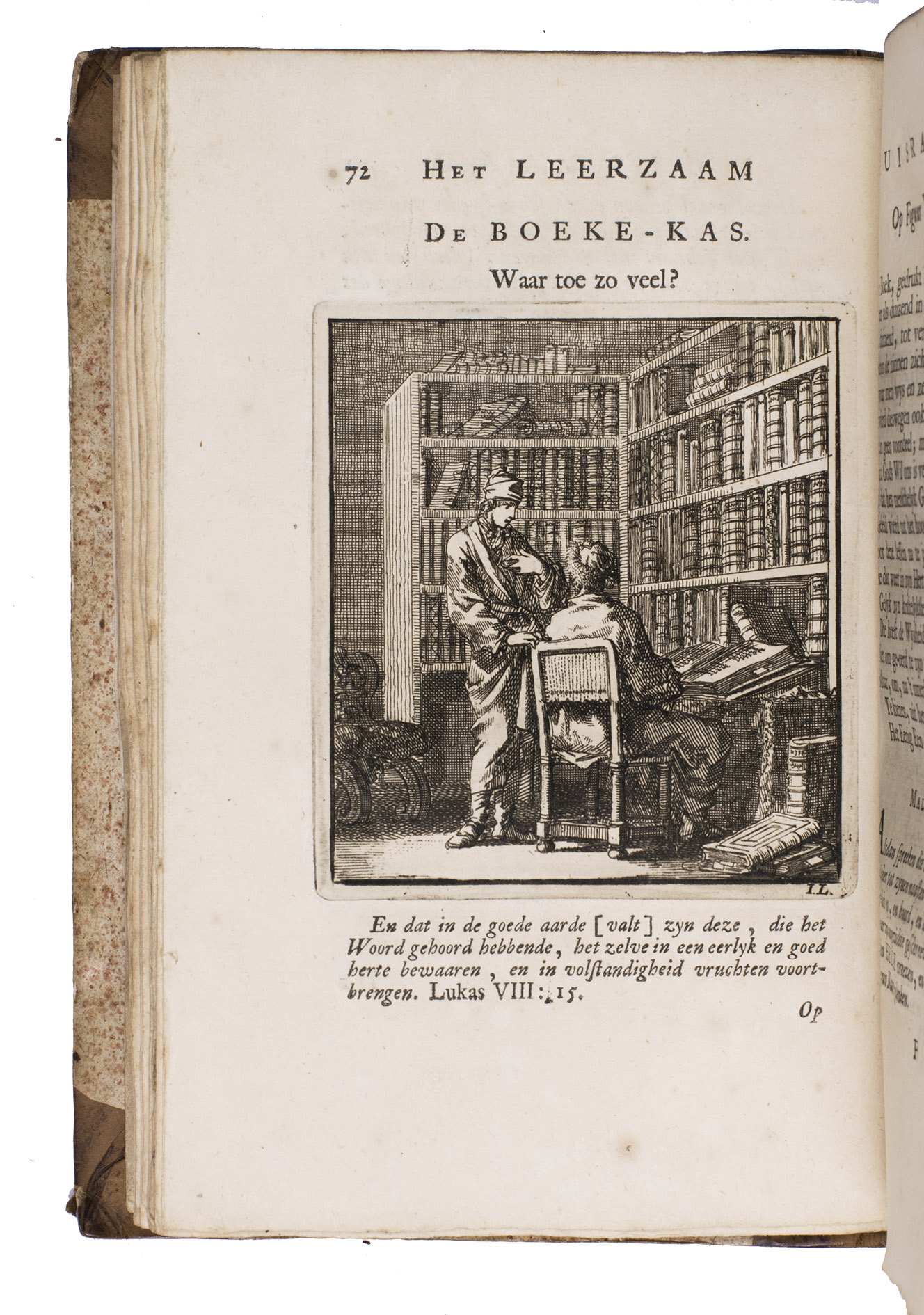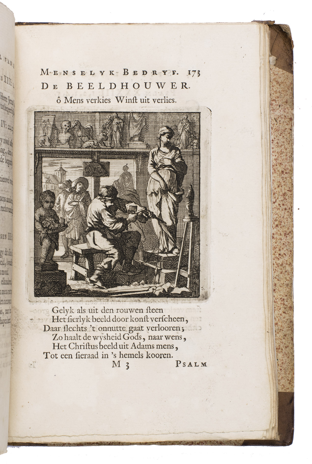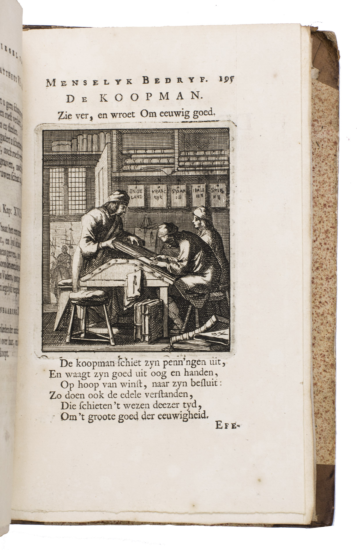 Attractive set of 11 works of the famous Dutch poet, artist and engraver Jan Luyken (1649-1712). Luyken, like Saint Augustine, had led a rather frivolous life when young, which he said helped him to vividly depict the dangers and temptations of a worldly life. Most of the works included are emblem books, with engravings accompanied by a Dutch motto, a poem, and several relevant Biblical passages for further contemplation. The set contains:
