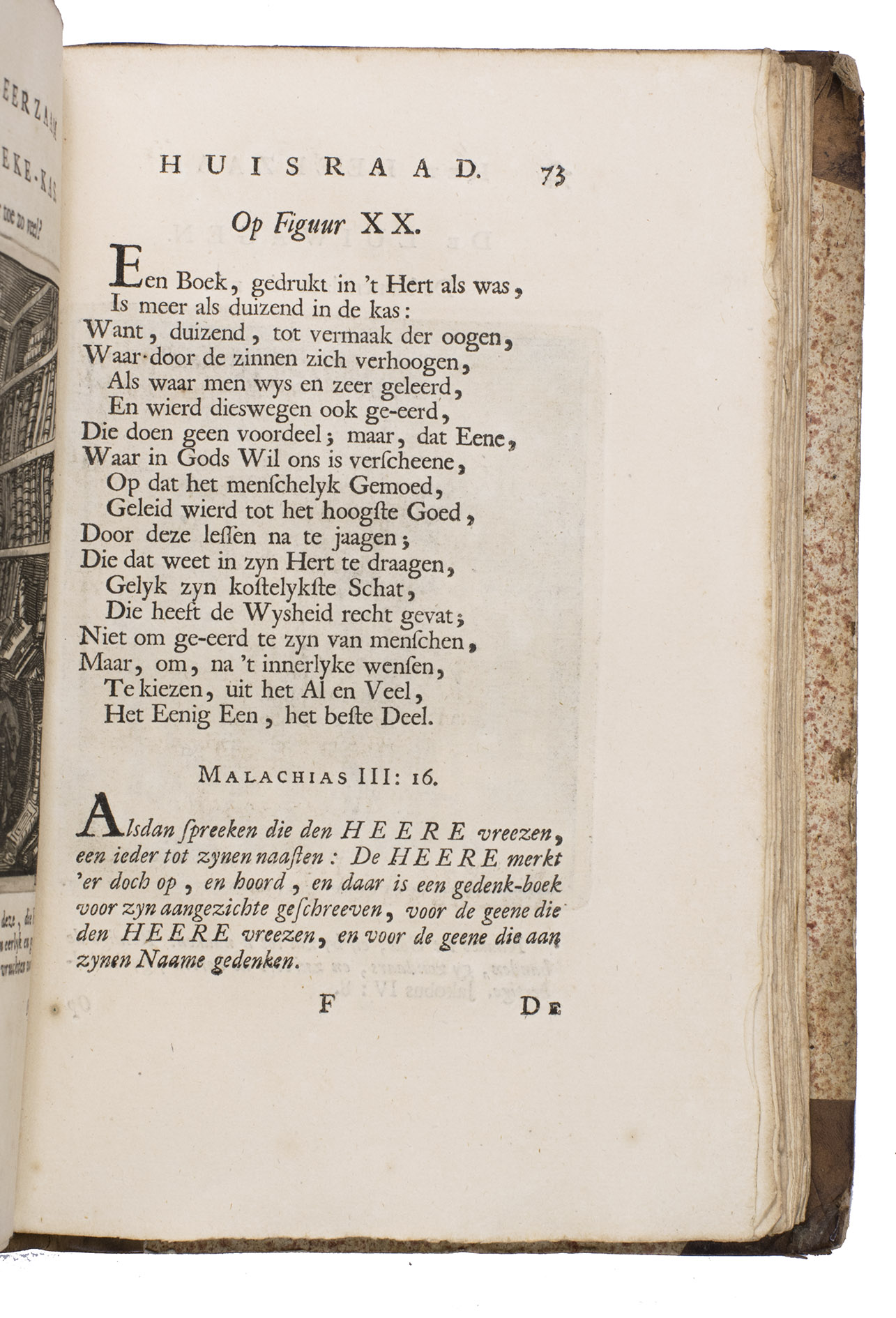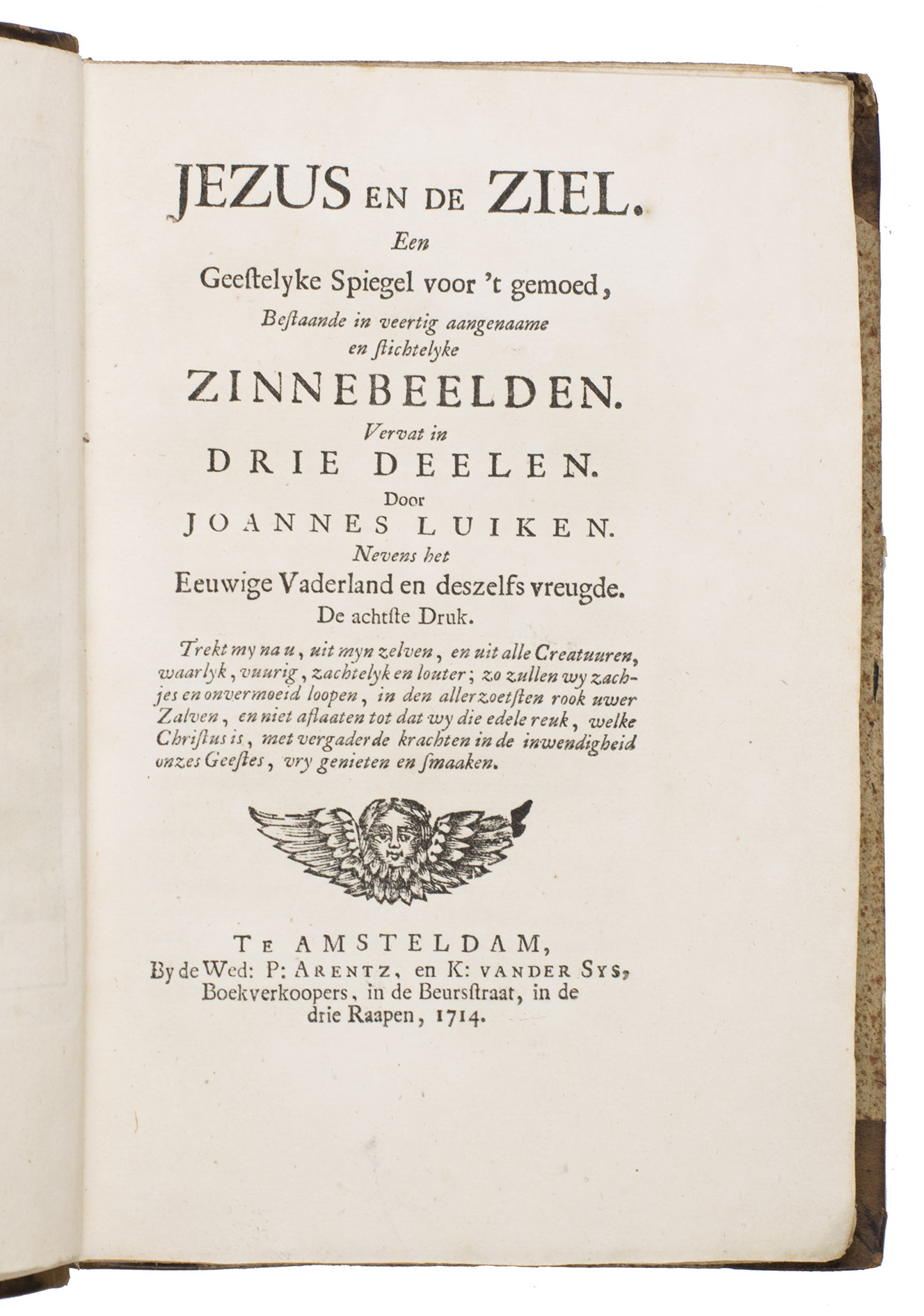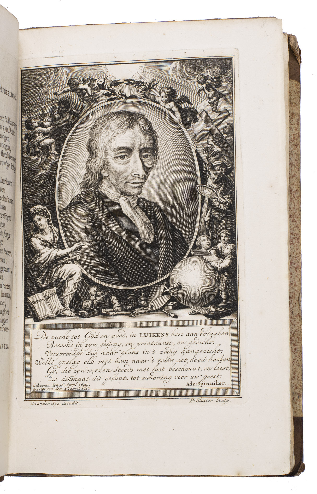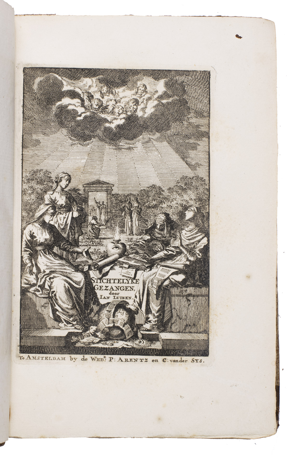 2). De zedelyke en stichtelyke gezangen... Amsterdam, 1709.3). De onwaardige wereld... Amsterdam, 1710.4). De bykorf des gemoeds, honing zaamelende uit allerly bloemen... Amsterdam, 1711. 5). Het leerzaam huisraad... Amsterdam, 1711.6). Des menschen begin, midden en einde... Amsterdam, 1712. 7). Jezus en de ziel... Amsterdam, 1714.8). Vonken der liefde Jezus... Amsterdam, 1717.9). Spiegel van het menselyk bedryf... Amsterdam, 1718. 10). Het overvloeijend herte, of nagelatene verzen... Haarlem, 1767. 11). Bybel printen. Amsterdam, [1712].