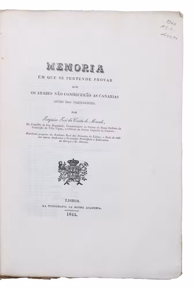 Memoria em que se pertende provar que os Arabes não conhecerão as Canarias antes dos Portuguezes.