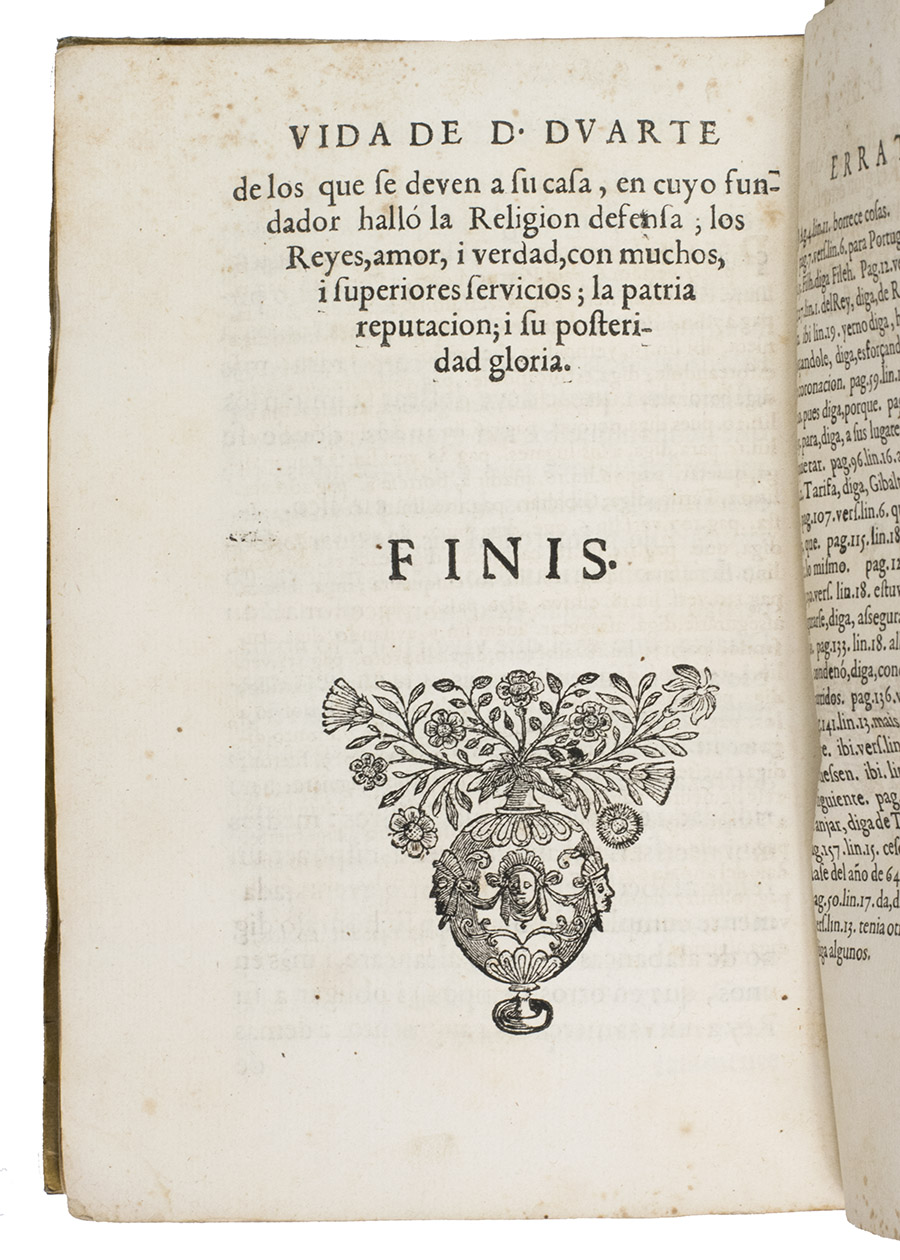 Lisbon, Pedro Craesbeeck, 1627. 4to. With 3 woodcut tailpieces and 11 woodcut initials (at least 6 series). Later limp sheepskin parchment, with remnants of ties. [5], 167, [3] ll.