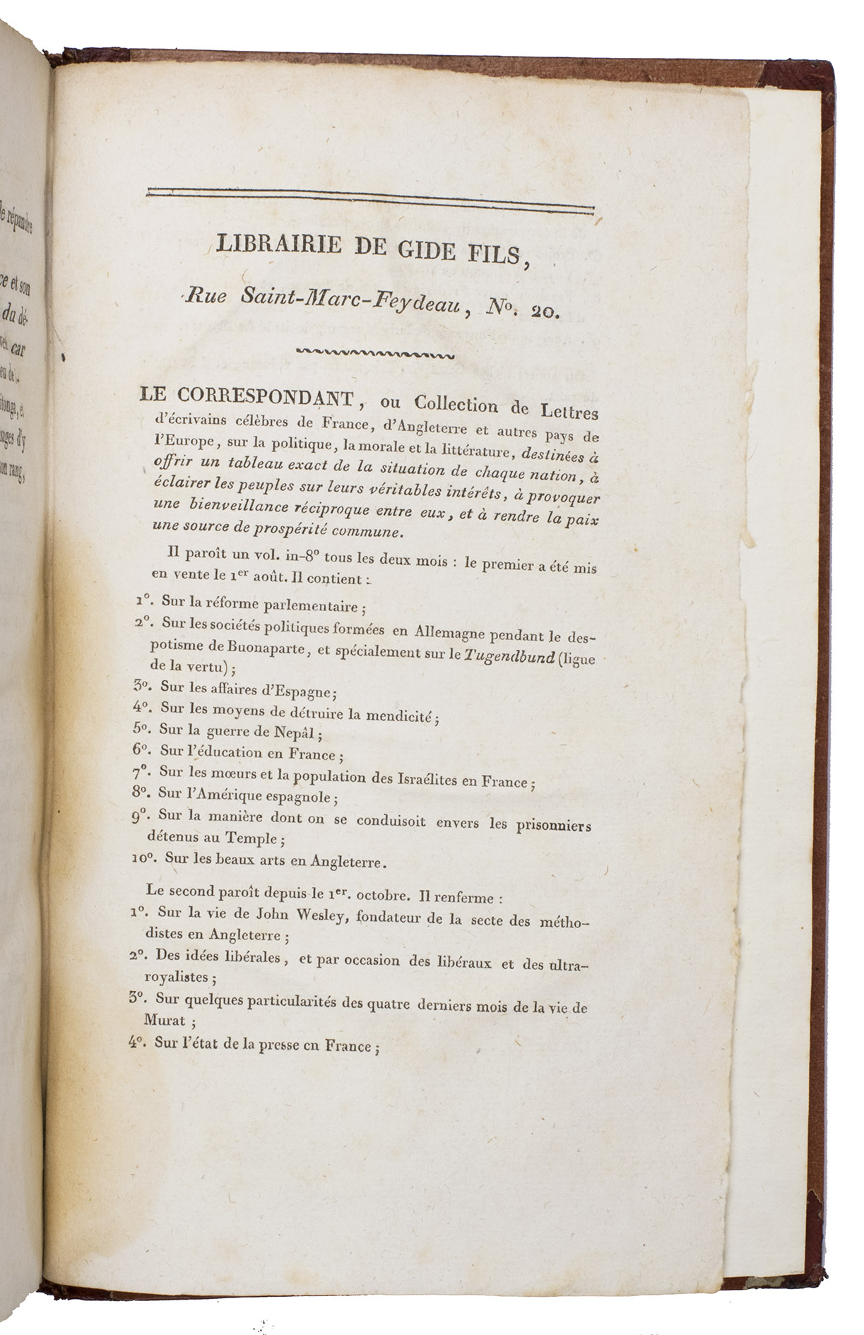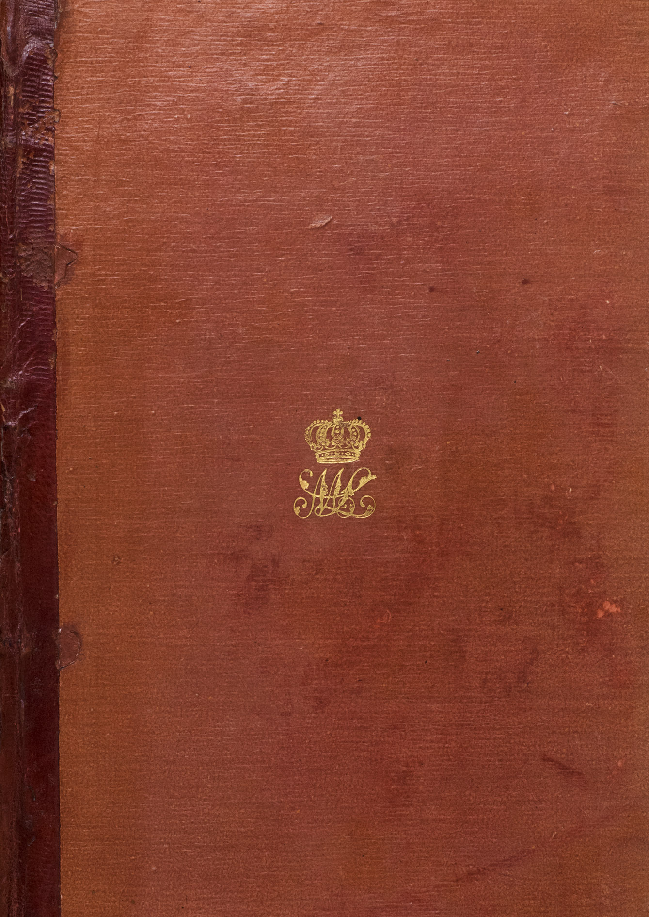 Paris, Gide and Nicolle (back of half-title: Imprimerie de J. Smith), 1817. 2 volumes. 8vo. Contemporary red half morocco, gold-tooled spine, paper sides with the crowned monogram of Empress Marie-Louise in gold on both sides of each volume. XXII, [23]-398, [2]; 398 pp.
