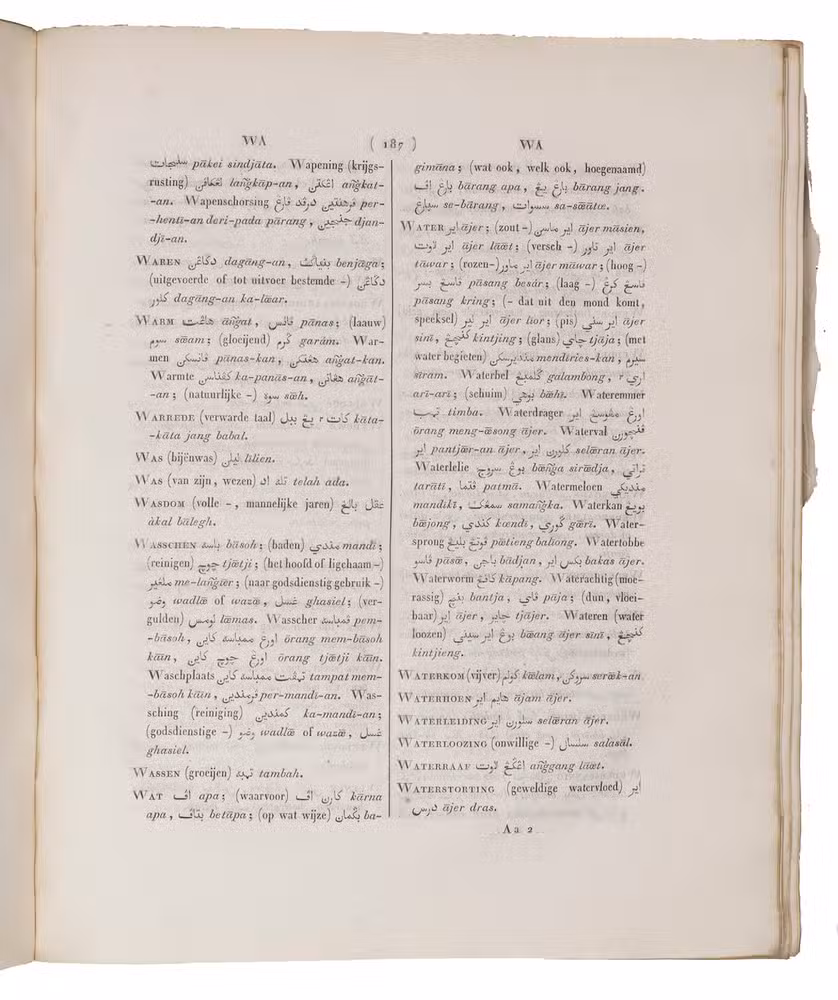Nederduitsch en Maleisch woordenboek, gevolgd van een Fransch en Maleisch woordenboek ... naar het Engelsch en Maleisch woordenboek van den Hr. W. Marsden. | Dictionnaire Hollandais et Malai, suivi dun dictionnaire Français et Malai ... daprès le dictionnaire Anglais et Malai de Mr. W. Marsden.