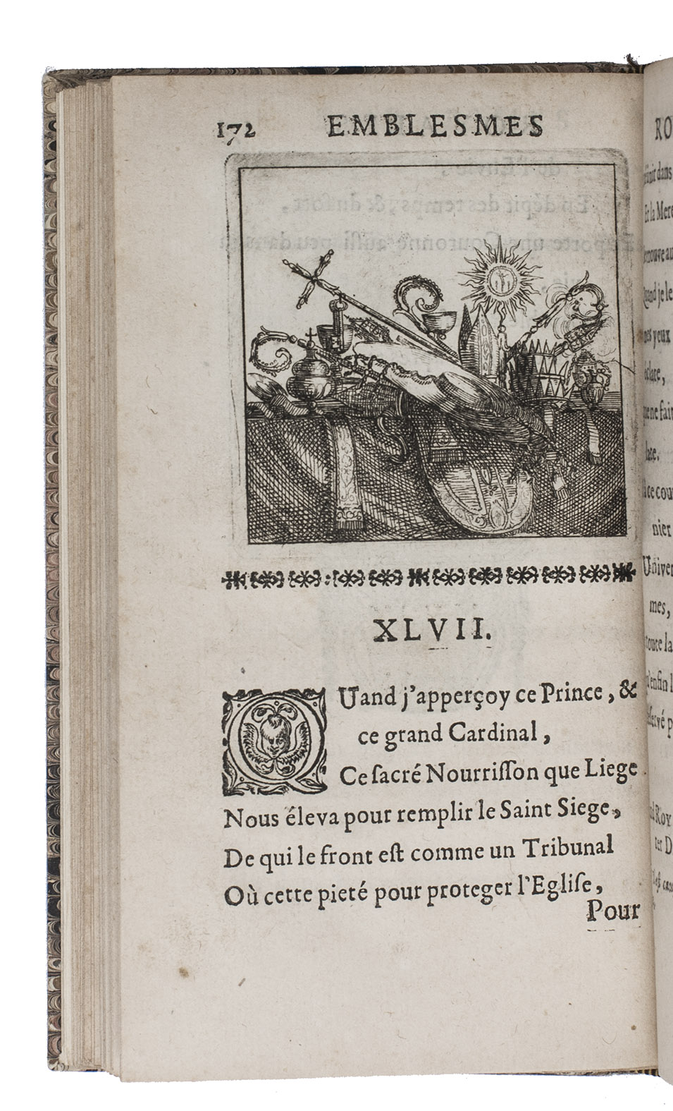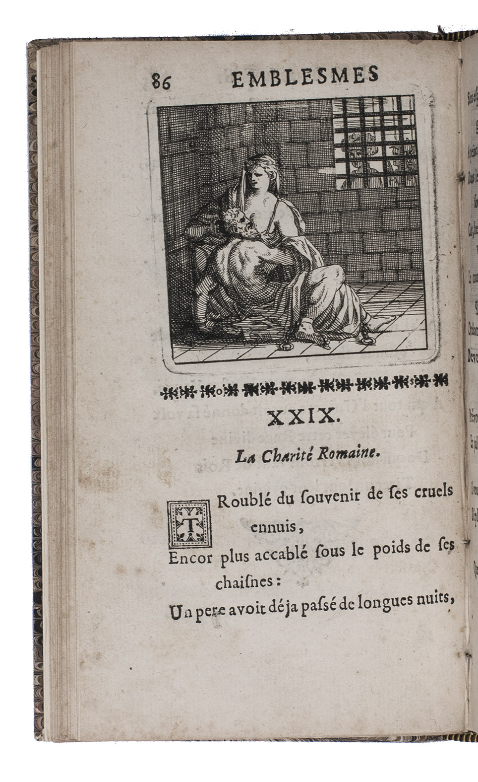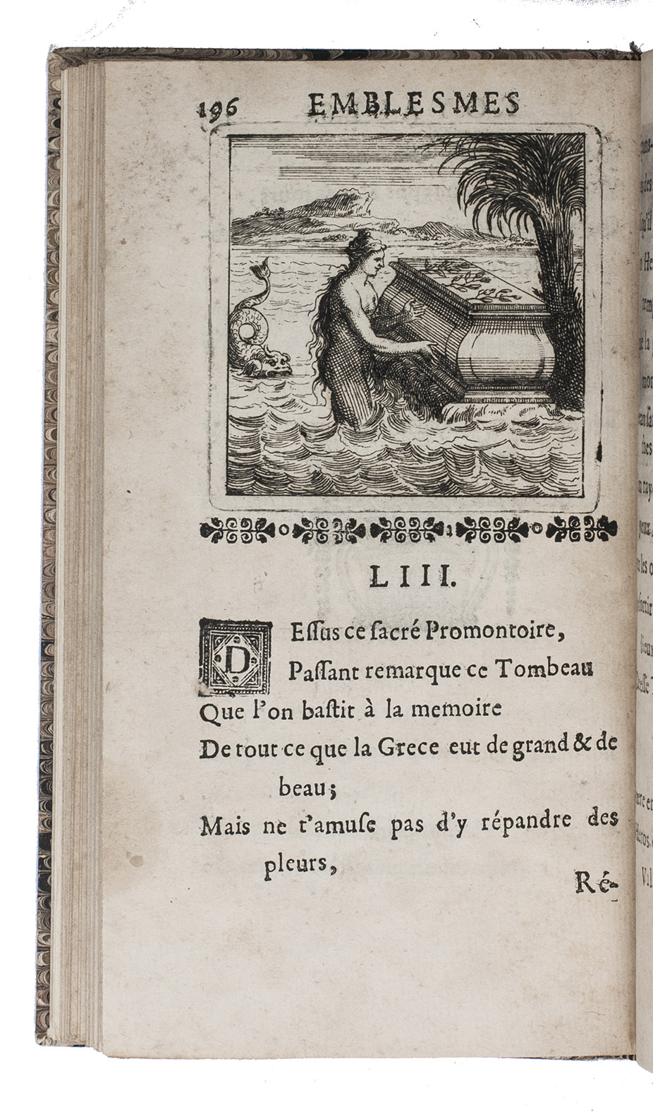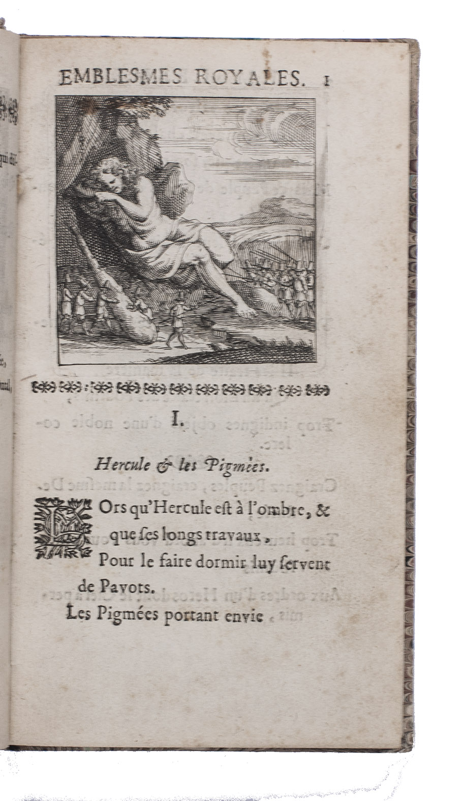 Paris, Claude Barbin, 1673. 8vo. With 60 numbered half-page engraved emblems and one unnumbered emblem on extra inserted leaf. Modern marbled boards. [10 (of 12)], 219, [3] pp.