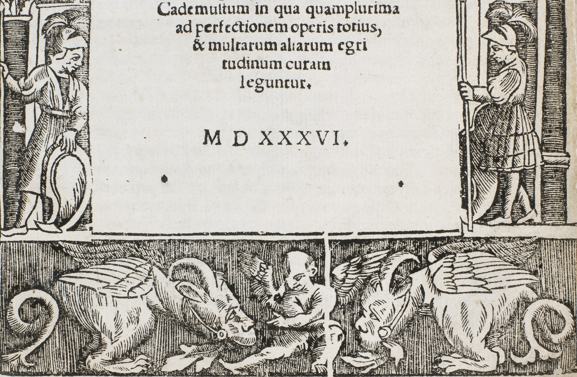 (Colophon: Venice, Francesco Bindoni, Maffeo Pasini, May) 1536. 4to. With title in a woodcut architectural border showing 4 charming monsters, 6 sentries and a winged putto. 19th-century panel-stamped and blind-tooled parchment. 50, [1], 1 blank] ll.