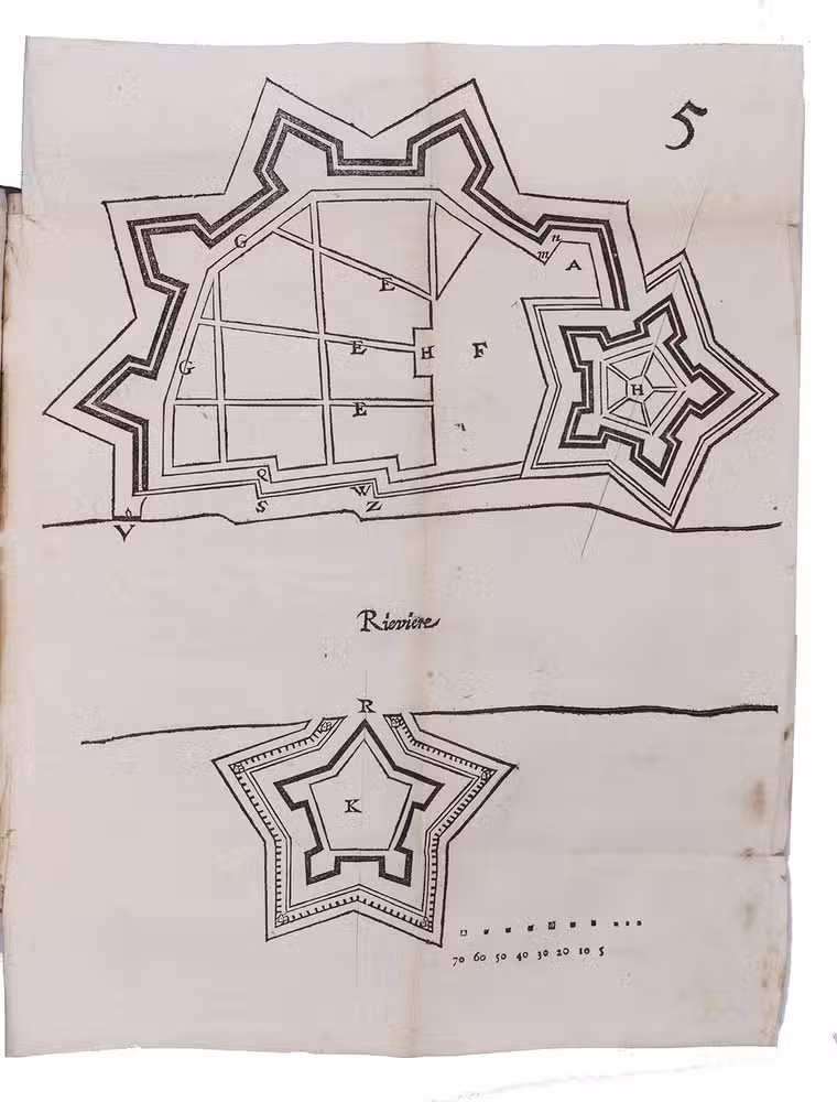 Korte en klare instructie van regulare en irregulare fortificatie, met hare buyten-wercken. Te gebruycken defensive en offensive... By-gevoegt 50 lustige questien, met hare solutien.