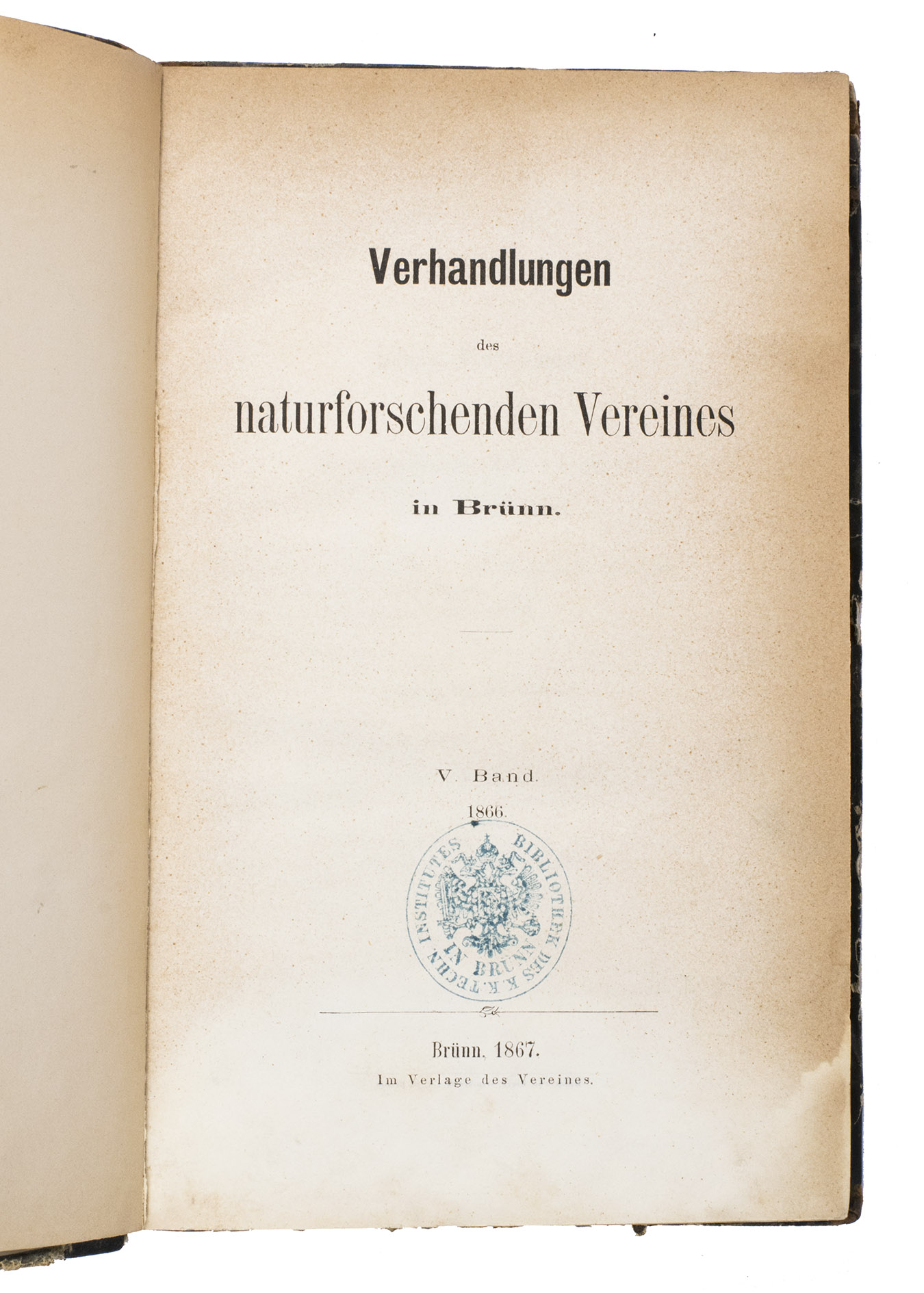 With: [JOURNAL - NATURAL HISTORY SOCIETY BRNO]. Verhandlungen des naturforschenden Vereins in Brünns. V Band, 1866.