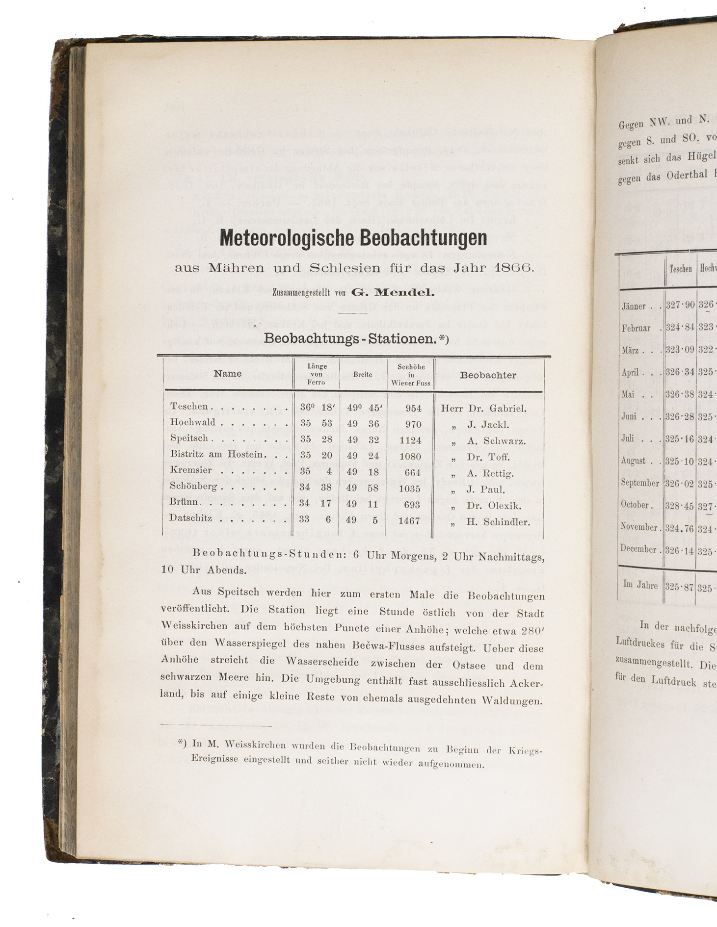 Mendel was a biologist, mathematician, and Augustinian friar in Brno. The monastery where he lived was supported mainly from the income from its estates and the abbot therefore placed much importance on the improvement of agriculture, encouraging experiments in the gardens. Mendel attended courses in agriculture, viticulture, and pomology, as well as philosophy, mathematics, chemistry, and physics, and soon became in charge of these gardens. Here, he cultivated and tested 28.000 plants, primarily pea plants, over the course of ten years, analysing seven characteristics. When cross-breeding plants with different variations of these characteristics, he discovered that some variations were more likely to appear in the next generation than others. To explain this phenomenon, Mendel coined the terms "recessive" and "dominant". He repeated the experiments with a different type of plant, Hieracium (Hawkweed) over the course of four years. The results of this research are presented in the present article, published in the journal of the Natural History Society of Brno, of which he was a member. Also included here is an earlier volume of the same journal, with articles by other members on chlorophyll, the earth's magnetism, trichinella spiralis, and many other topics.