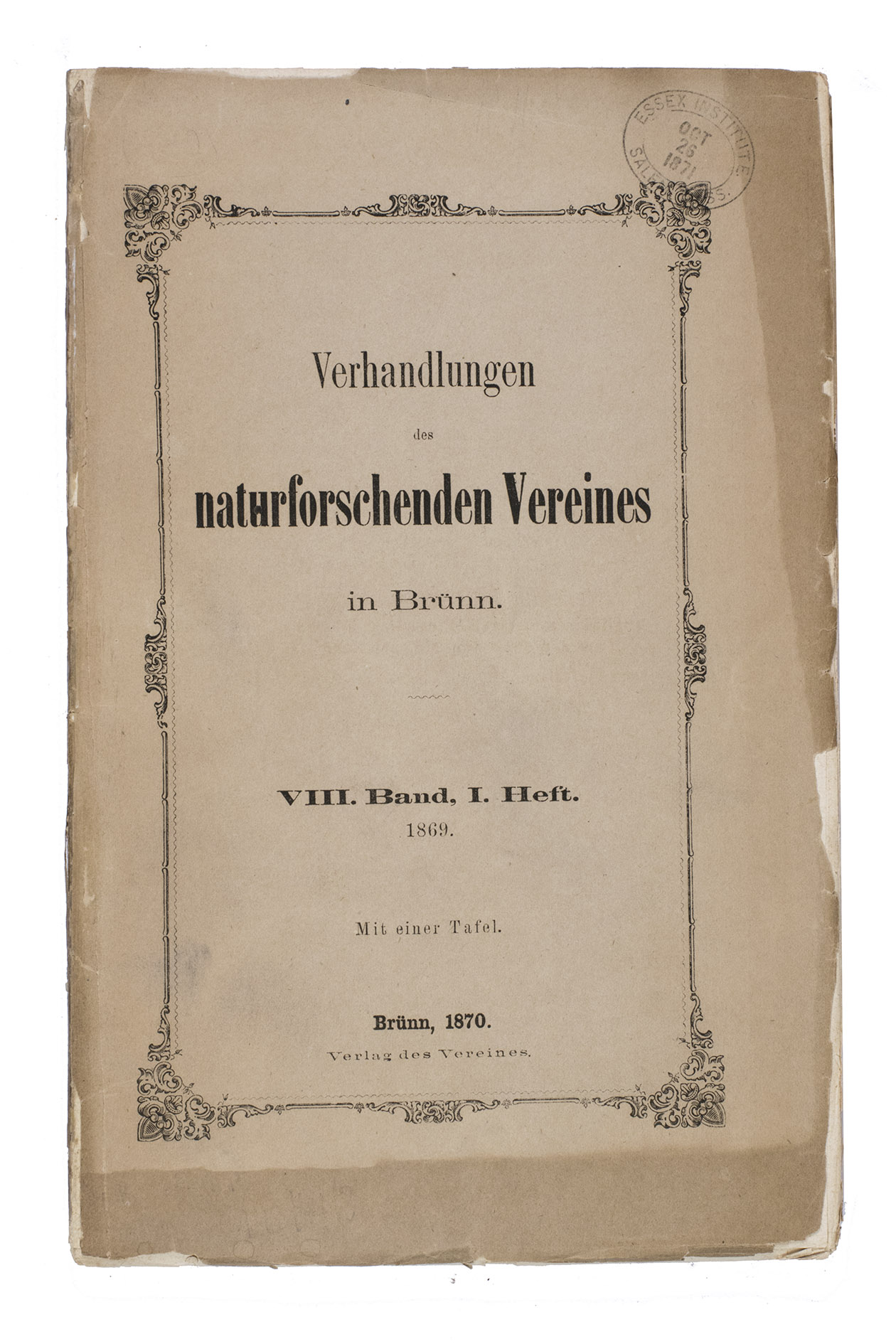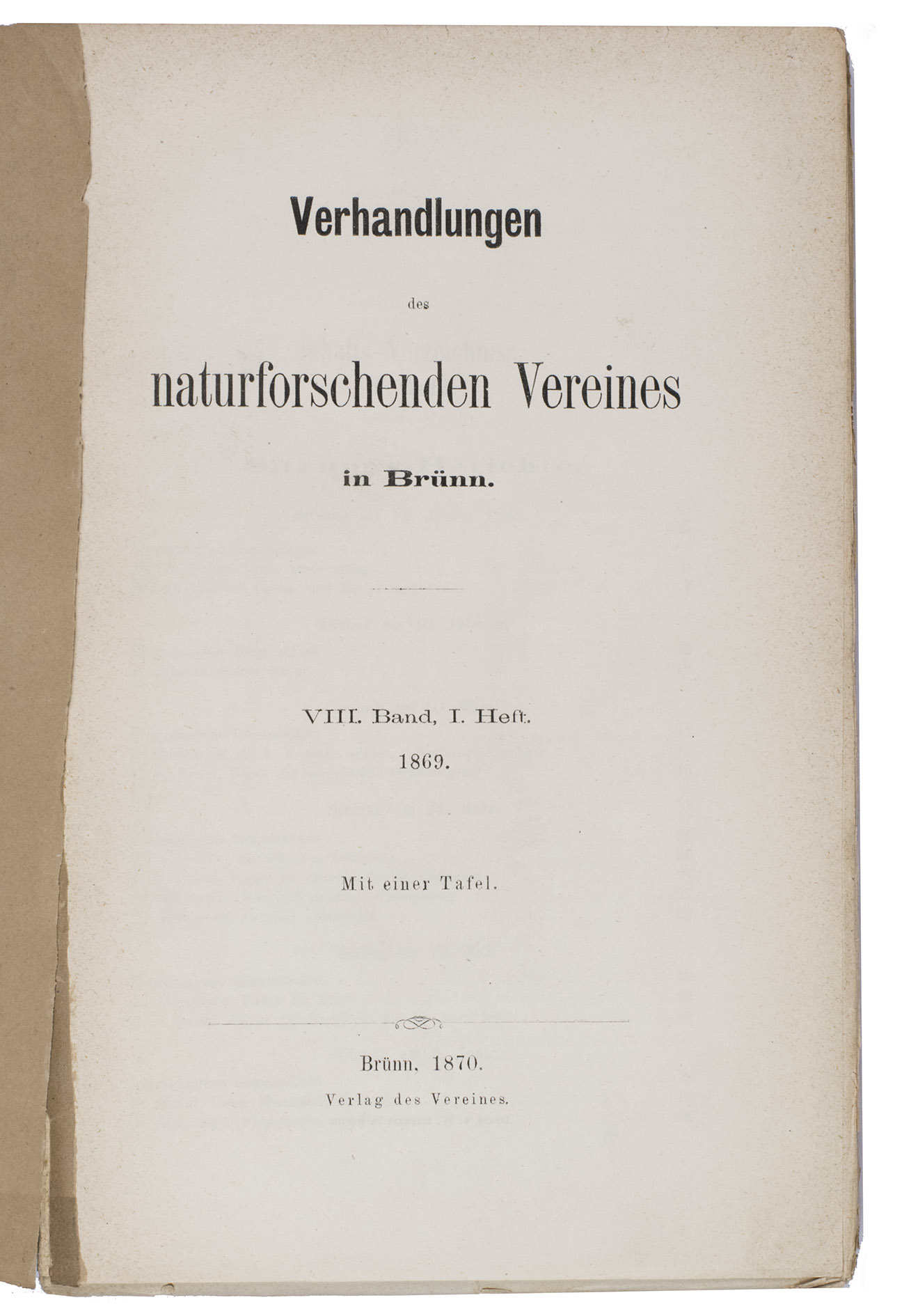 Brno, im Verlage des Vereines (printed by W. Burkart), 1870.