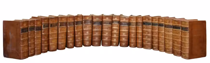 An excellent, complete set of the famous chronicle of the century, illustrated by Matthaeus Merian and his successors, hailed as the first and most comprehensive source for the age of Louis XIV and the Thirty Years War. Due to the long publication period of almost 100 years, complete 21-volume sets are very rare.