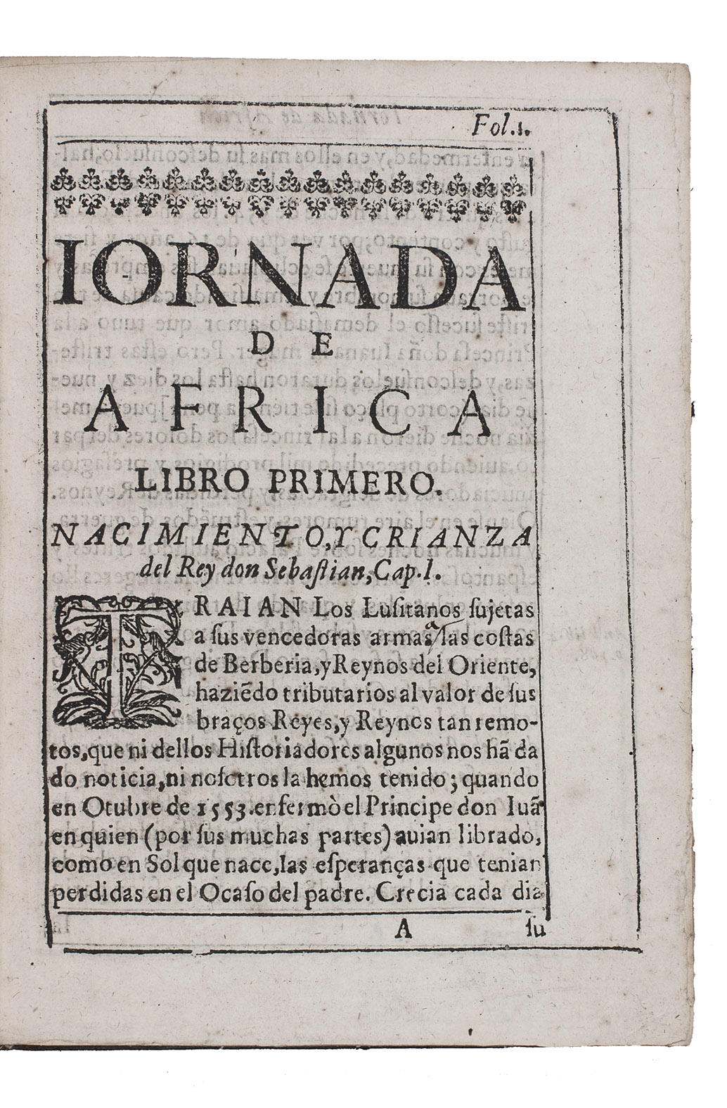 First and only edition of an account of the life, death and succession of King Sebastião I of Portugal (1554-1578), written in Spanish by Sebastian de Mesa. Sebastião became king of Portugal at the age of three, after the death of his grandfather João III. He was under the regency of his grandmother and uncle Henrique, cardinal and later king, until he was declared of age in 1568. Sebastião, educated by the Jesuits, combined religious fanaticism with an unlimited admiration for the military. He thought of himself as a Christian knight, who was going to fight and rescue the "misguided" muslims in Africa from their faith. He was killed in the bloody and disastrous Battle of the Three Kings at Alcazarquivir in the north of Morocco. Many supporters refused to believe had died, and many awaited his return for decades. This resulted in Sebastianism, a messianic religious belief that lasted well into the 19th century.