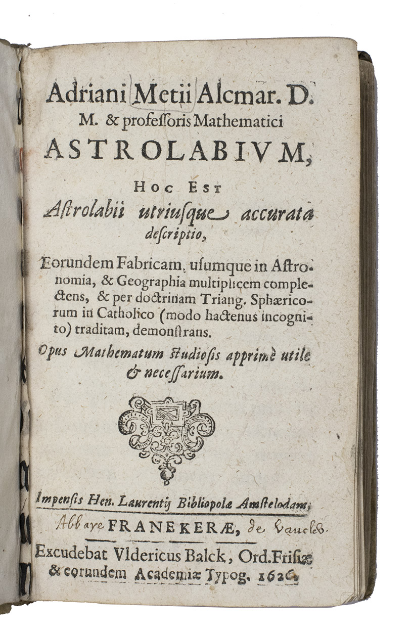 Adriani Metii Alcmar. D.M. & professoris mathematici. Astrolabium, hoc est astrolabii utriusque accurata descriptio, eorundem fabricam, usumque in astronomia et geographia multiplicem complectens, ...