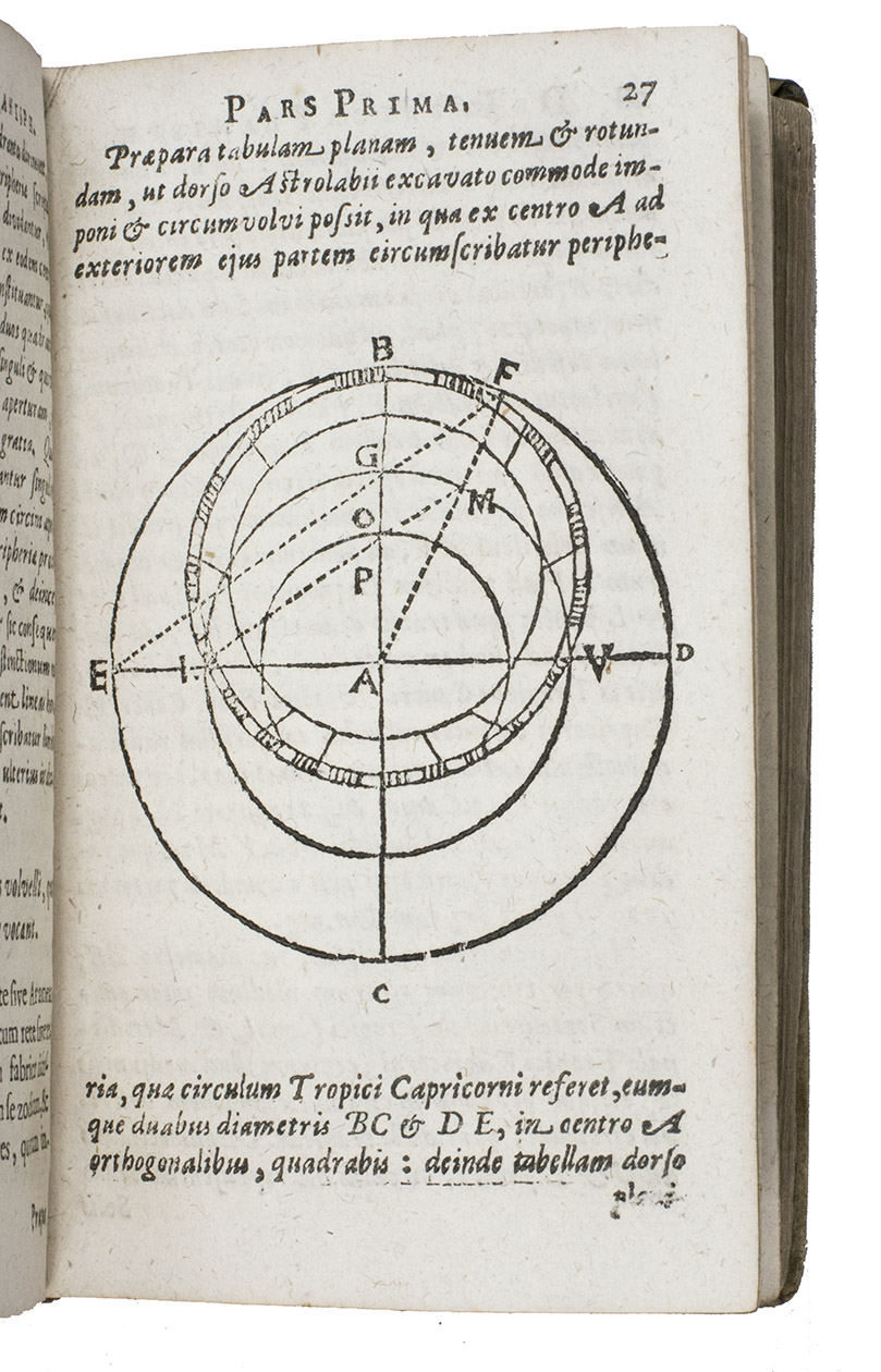 With the bookplate of cardinal Louis-Ernest Dubois (1856-1929). Also with an owner's inscription on the title page reading "Abbaye de Vaucles", possibly referring to the French abbey of Vaucelles near Cambrai, and a few annotations in the text (in the same hand?). Binding slightly stained and dust-soiled, some leaves very slightly browned, a few spots throughout, with a very small hole in p. 129 (with loss of a few letters), but overall in very good condition. Hamel, Bibliographie der astronomischen Literatur bis 1700, p. 290; Hoogendoorn, Bibliography of the exact sciences in the Low Countries from ca. 1470 to the Golden Age (1700), METIUS08 1.2; Houzeau-Lancaster 3305; Poggendorff, p. 129; WorldCat (9 copies); Zinner, Astronomische Instrumente, p. 445; not in Bierens de Haan; Honeymann; STCN. For the author: DSB IX, pp. 335-336. For the astrolabium catholicum: Koeman, 'The astrolabium catholicum': in: Van der Krogt & Schilder (ed.), Miscellanea cartographica, pp. 337-348.