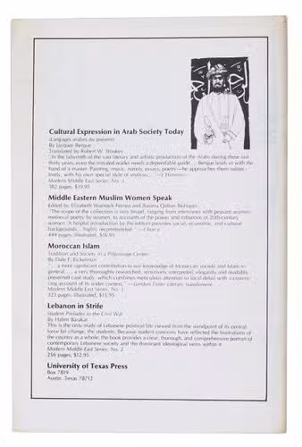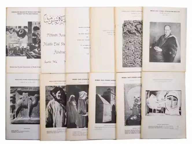 Issues present are vol. 7, no. 1; vol. 10, nos. 2 and 3; vol. 11, nos. 1 and 2; vol. 12, nos. 1 and 2; vol. 13, no. 1. Also included are 2 volumes of abstracts from the group's conferences, and a booklet on "American Images of Middle East Peoples: impact of the high school".