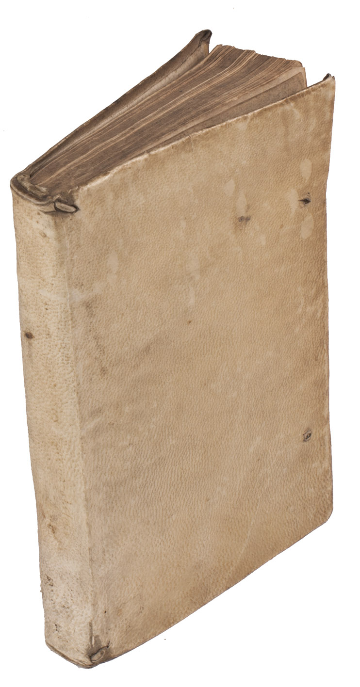 Paris, Fédéric Morel, 1566. 8vo. With Morel's woodcut tree device on the title-page, 2 woodcut headpieces and 7 woodcut decorated initials (plus 3 repeats), the headpieces and initials in an unusually delicate design, finely executed. Set in italic types with the preliminaries in roman, and incidental Greek. 17th-century limp sheepskin parchment. [16], 136 pp.