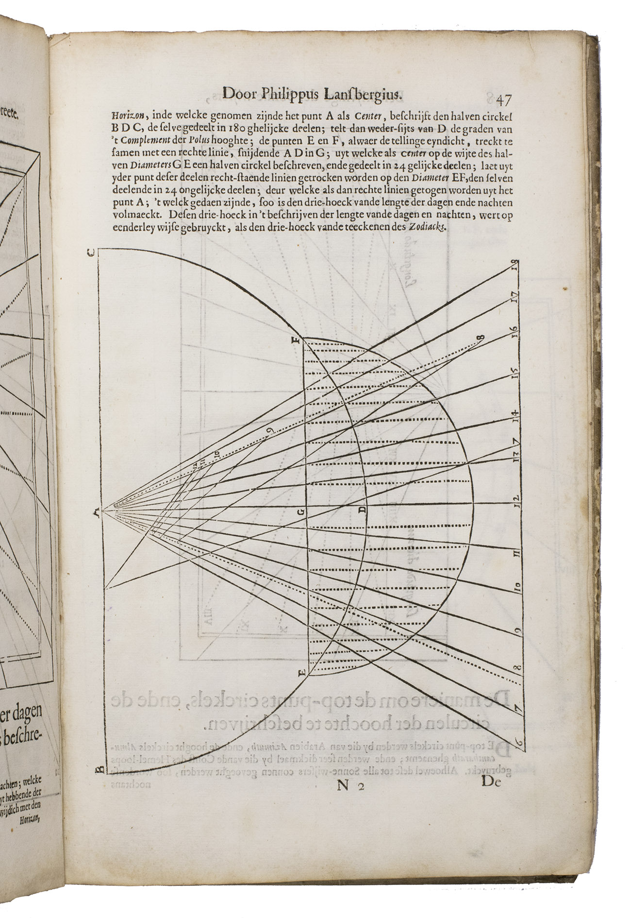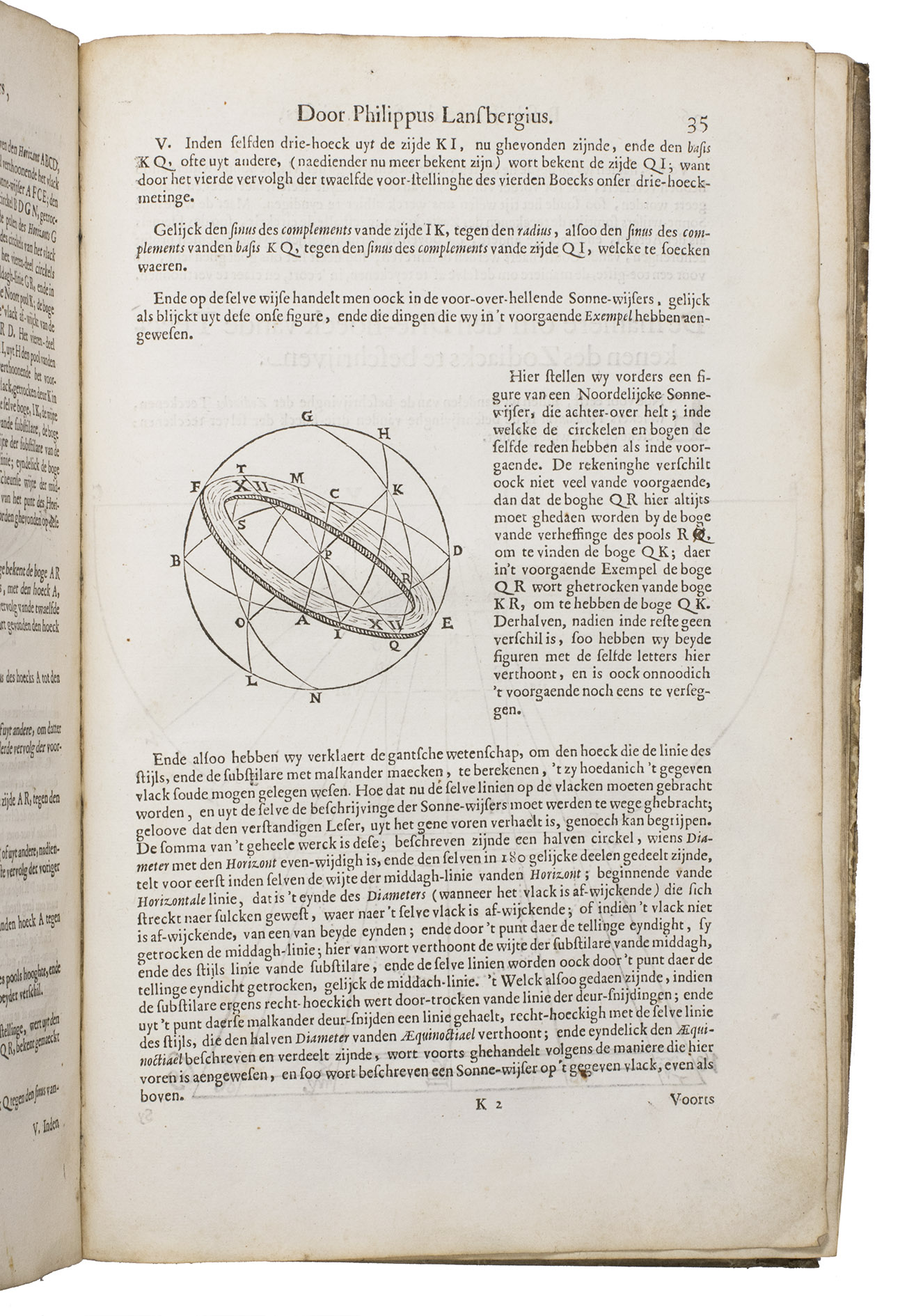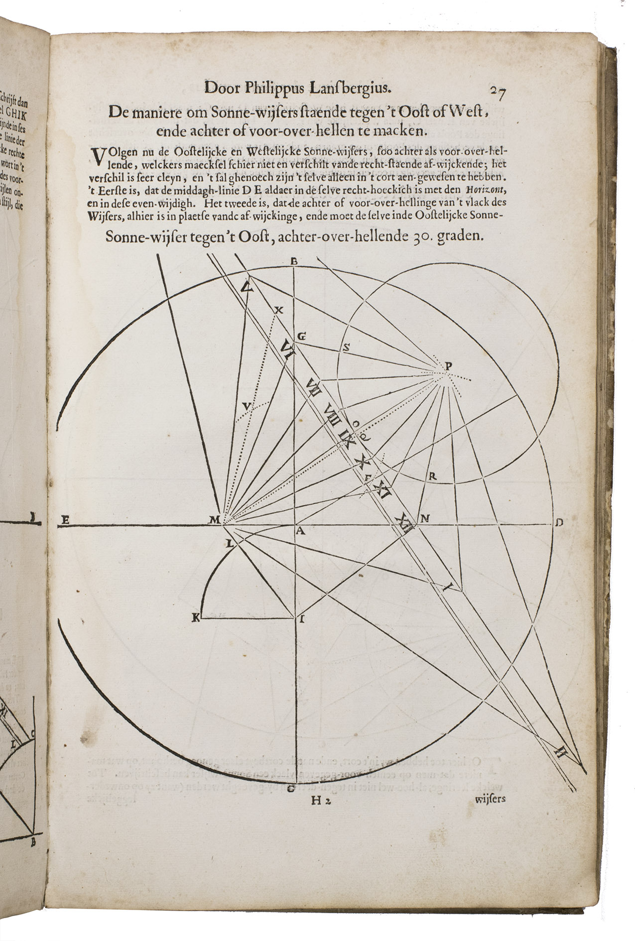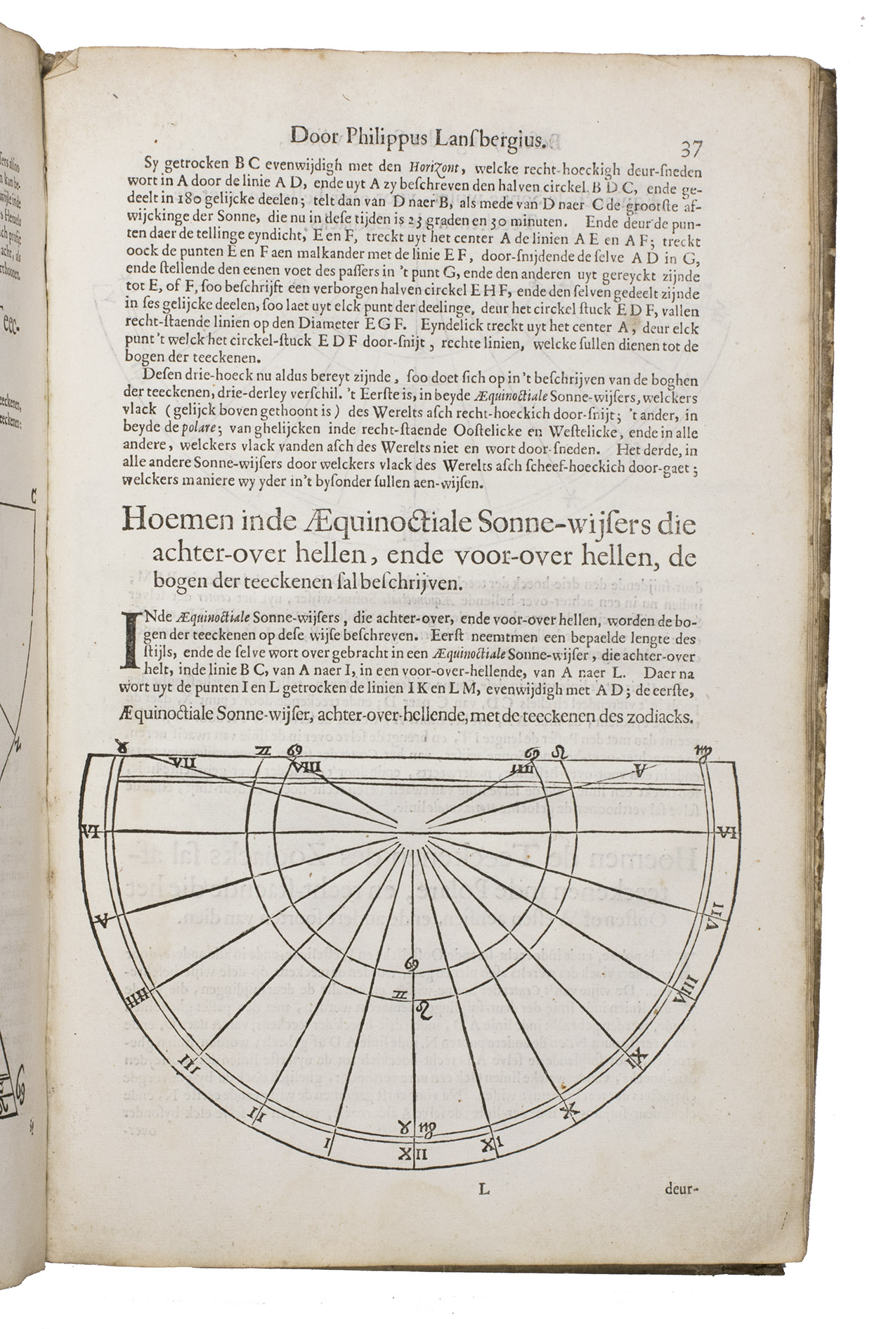Mogge opens his work with a general introduction to geometry and astronomy, followed by a description of sundials on a flat surfaces and on the surface of the earth. Jacob Mogge (ca. 1613-1669) was a surveyor and map draughtsman active in Zeeland from ca. 1649 to ca. 1666, describing himself as surveyor to the water district, Vrije van Sluis. Lansberge (1561-1632) worked as physician and pastor in Middelburg, Zeeland, but devoted his last years to writing and publishing several important works on astronomy.