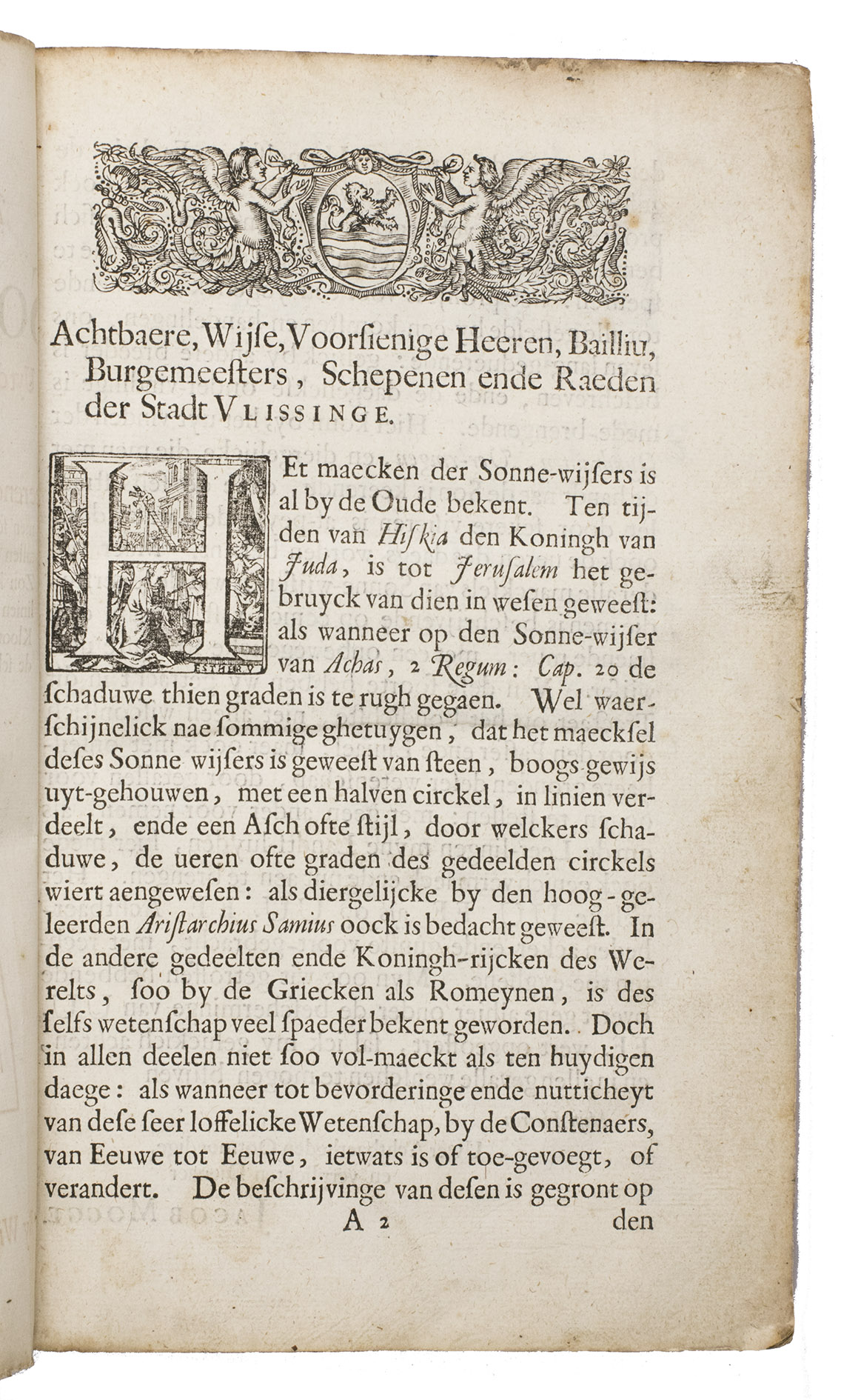 2 works in 1 volume. Small folio (28.5 x 18.5 cm). With both title-pages printed in red and black, about 150 woodcut diagrams in the text, including a wide variety of sundials, a woodcut headpiece with the Zeeland coat of arms (plus 2 repeats), and woodcut decorated initials. Early sheepskin parchment over paperboards. [1], [1 blank], [2], 108, [3], [1 blank]; [1], [1 blank], 54, [2] pp.