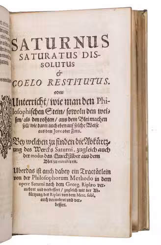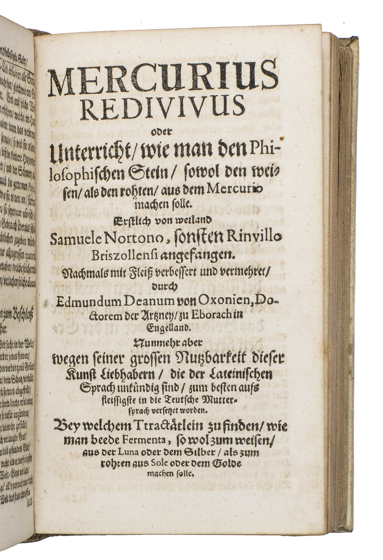 (2) NORTON, Samuel. Mercurius redivivus ...; Catholicon physicorum ...; Venus vitriolata, in elixir conversa ...; Elixir seu medicina vitae ...; Saturnus saturatus dissolutus & coelo restitutus ...; Metamorphosis lapidum ignobilium in gemmas quasdam pretiosas ...; Alchymiae complementum, et perfectio ...; Ein Tractätlein welches von den Philosophischen Schrifften handlet ...