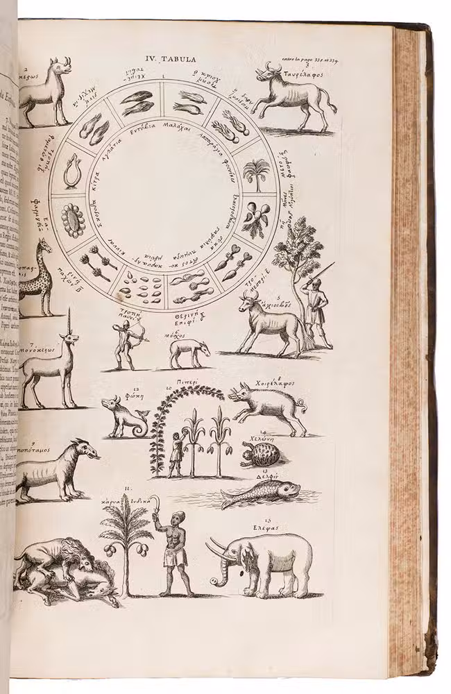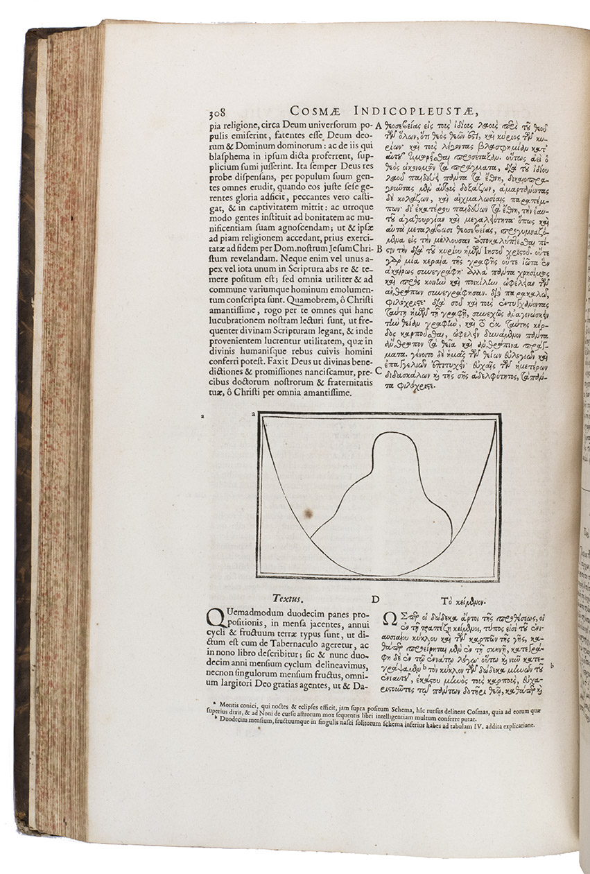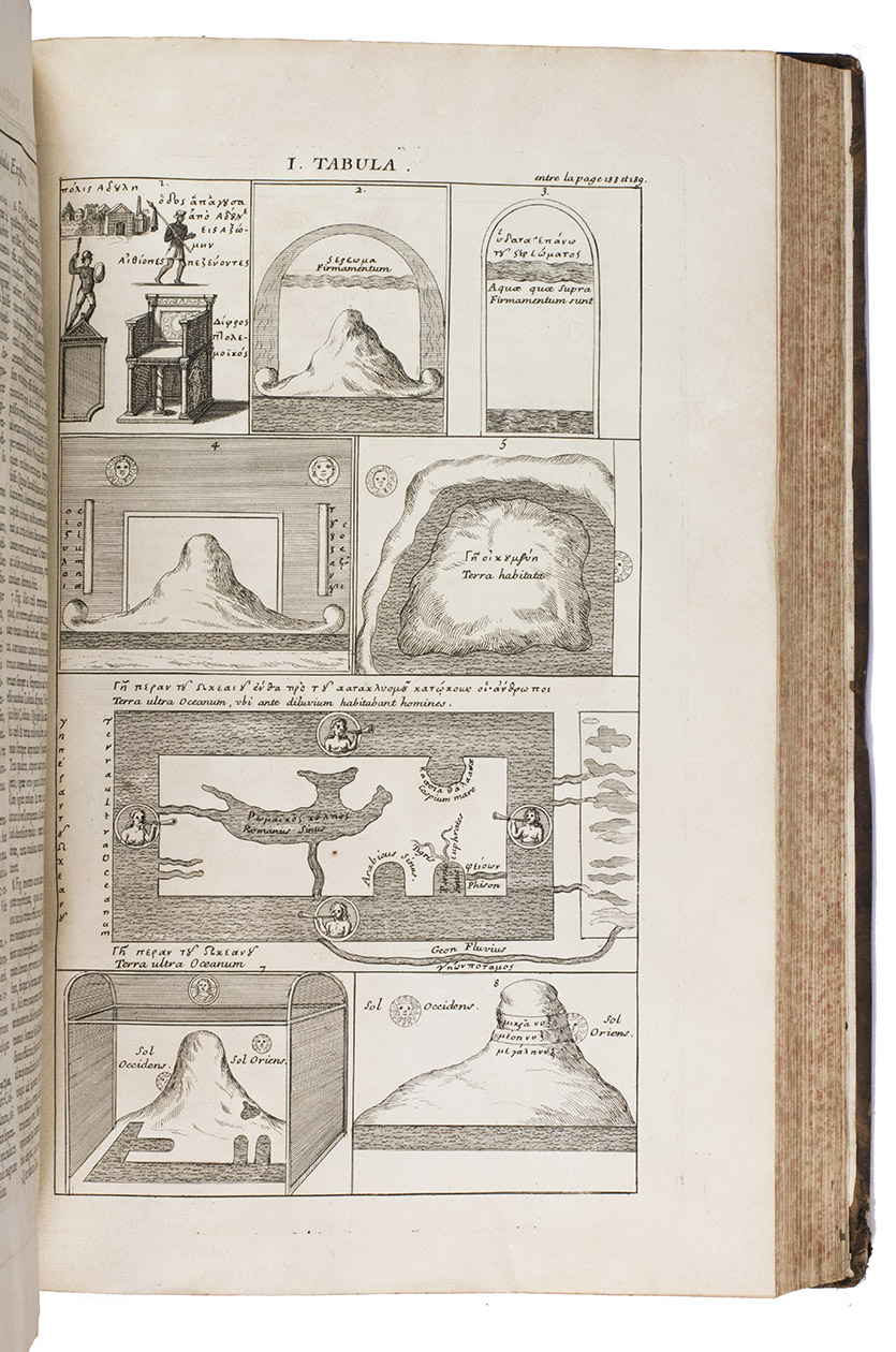 First edition, second issue, of a monumental collection of Greek voyages, often overlooked in the literature, including the first complete edition of Cosmas of Alexandria's celebrated Christiana topographia. Cosmas, a merchant from Alexandria, sailed in the Red Sea and the Arabian Gulf and visited Ethiopia ca. 530. Though he was known as "Indicopleustes", or Indian Voyager, it is doubtful whether he actually visited India. In his Christiana topographia Cosmas aimed to show that the earth was flat and the cosmos shaped like rectangular vaulted box.