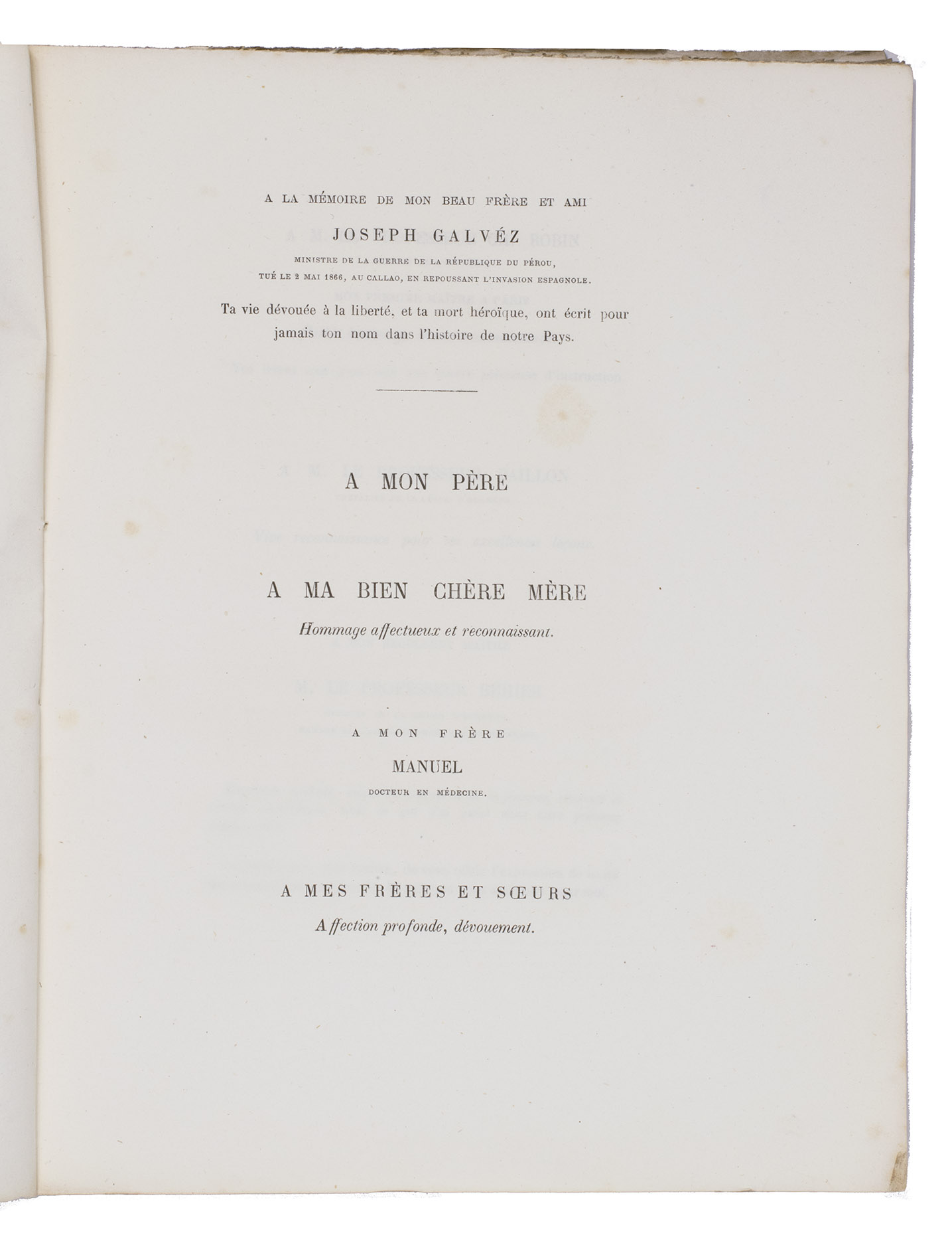 With the black library stamp of the renewed faculté de médecine of the (Imperial) University of France in Paris on the title-page. The title-page is very slightly foxed, but the work is otherwise in very good condition. WorldCat 614184750 (3 copies in 2 libraries); cf. Marret, E. et all, Moreno y Maïz: A missed rendezvous with local anesthesia. In: Anesthesiology, vol. 100, 2004, pp. 1321-1322.