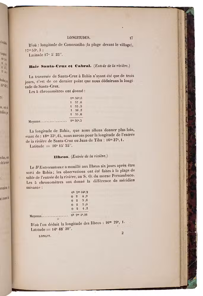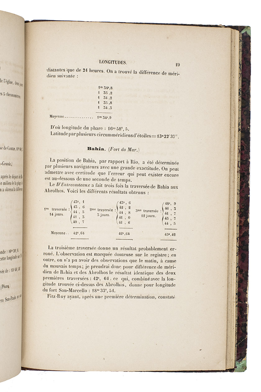 (2) MOUCHEZ, Amédée Ernest Barthélemy. Longitudes chronométriques des principaux points de la cote du Brésil, rapportées au premier méridien de Rio-Janeiro. Paris, Paul Dupont, 1863.