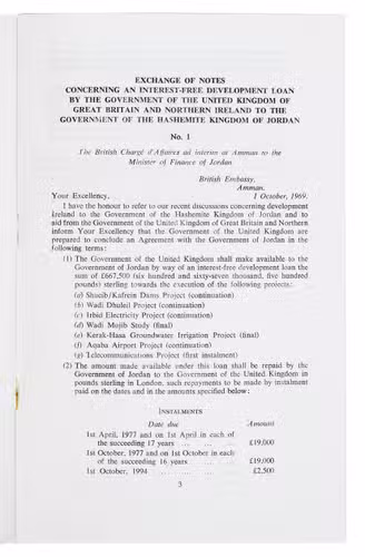 Exchange of notes concerning an interest-free development loan by the government of the United Kingdom of Great Britain and Northern Ireland to the government of the Hashemite Kingdom of Jordan.
