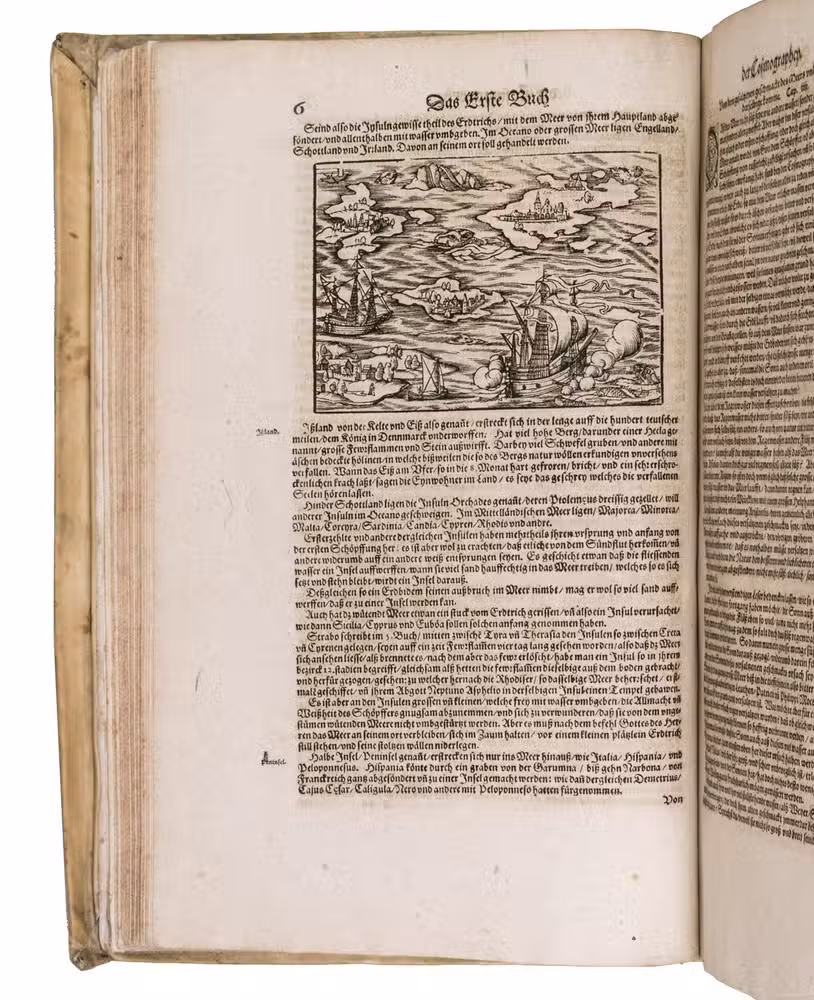 Most extensive edition of Münster's monumental, extensively illustrated description of the world, which set a new standard in the field, following both a regional and encyclopaedic approach. The first edition appeared in 1544, but it was greatly expanded over the years, the present edition adding many new maps. The most highly valued of all cosmographies, it passed through dozens of editions in 100 years and was of paramount importance for the revival of geography in 16th-century Europe. The book was printed by the heirs of Sebastian Henricpetri (1546-1627), the son of Heinrich Petri, stepson of the author Sebastian Münster. The 1588 edition (and the two following editions) contained a total of ca. 1280 woodcuts, which number was increased in the present edition with about 200.