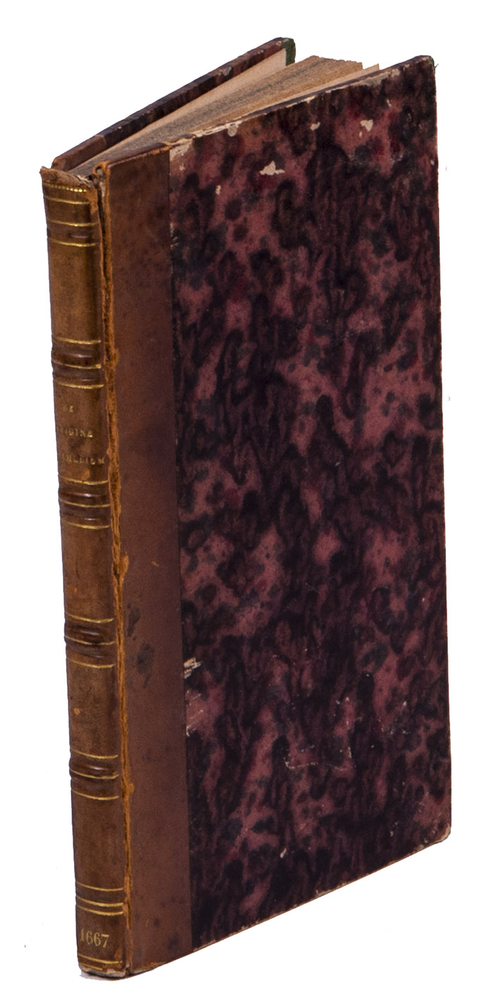 Geneva, Petrus Columesius, 1667. 12mo. With a woodcut printer's device on the title page. 19th-century gold-tooled half calf, with the title lettered in gold on the spine, decorated ("pseudo-marbled") paper sides, marbled end papers. 68, [4 blank] pp.