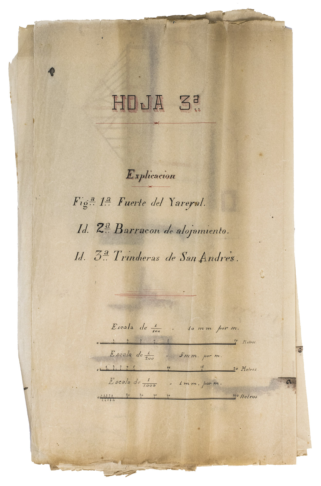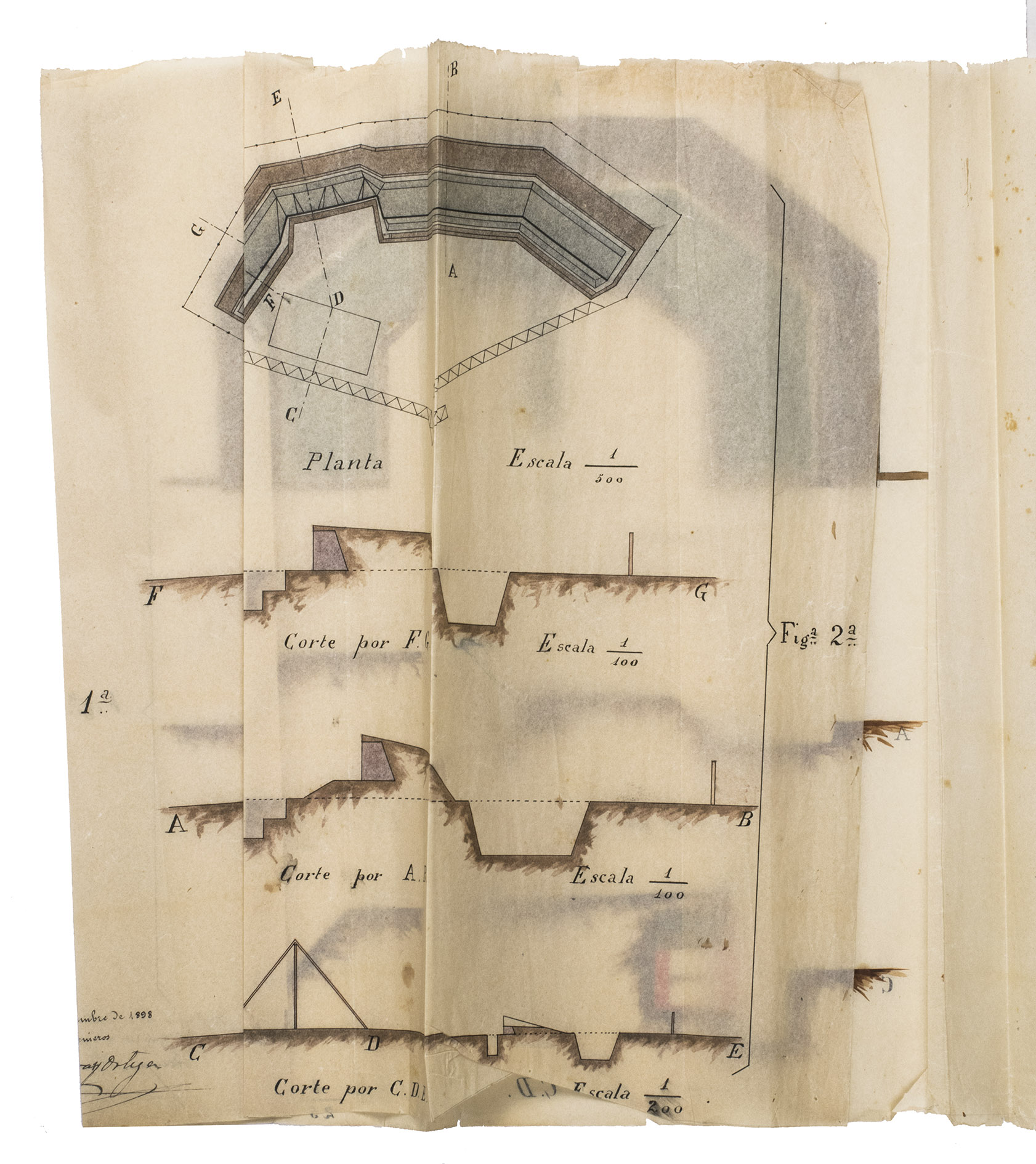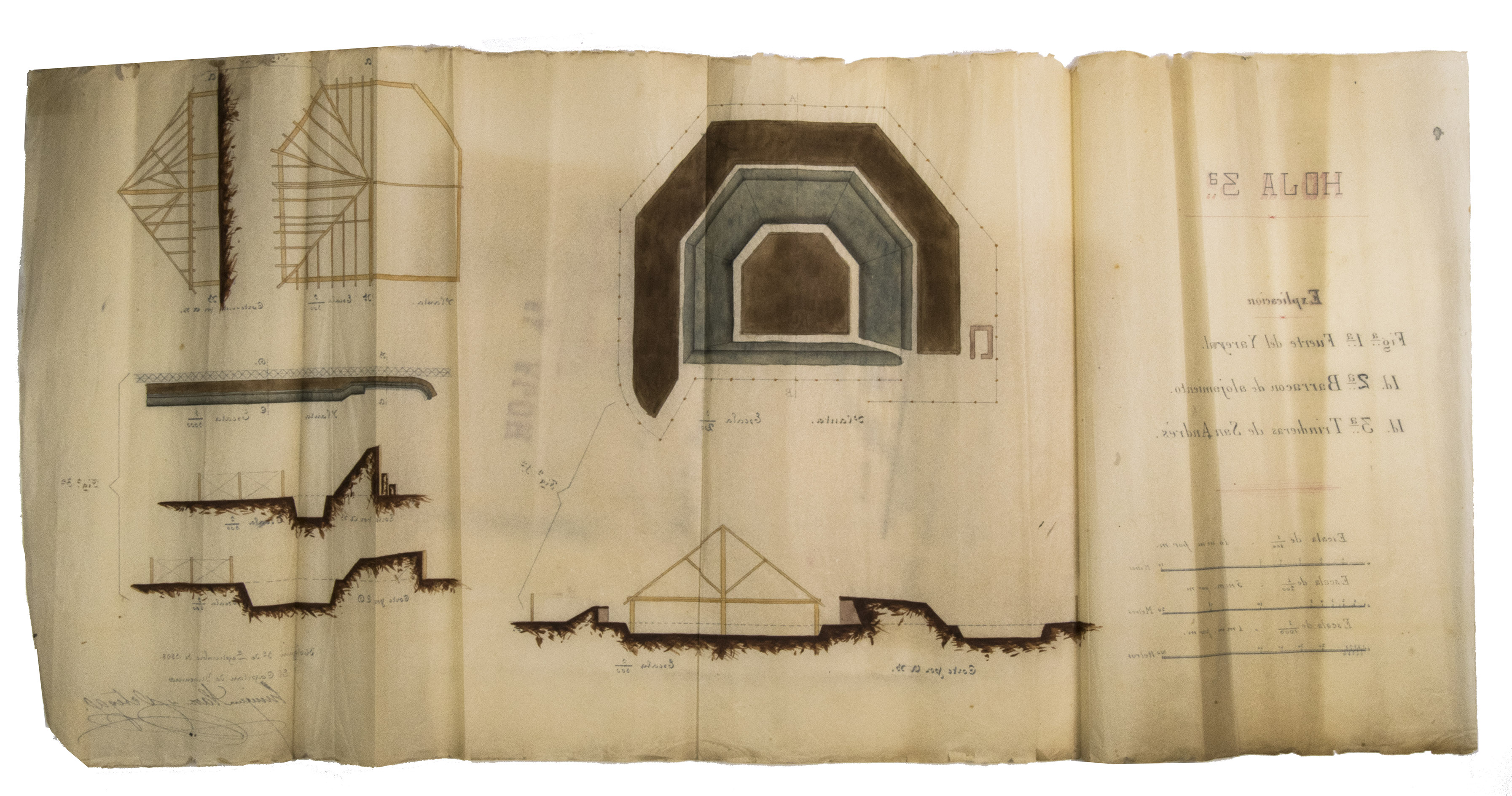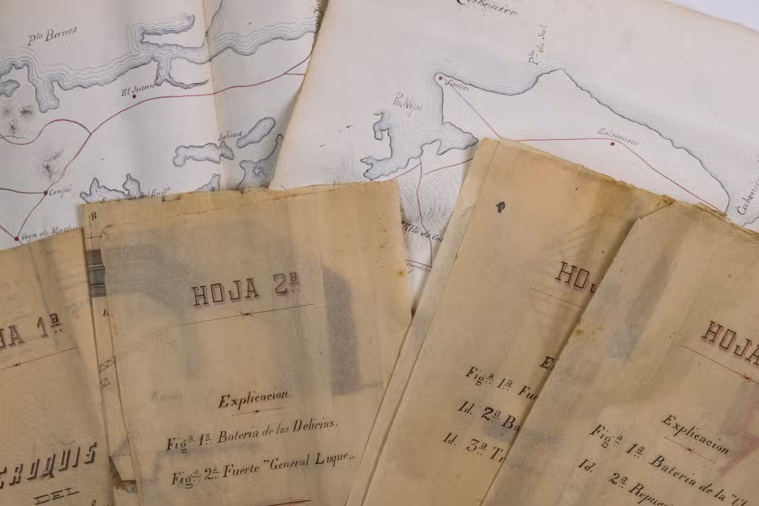 Holguín, 1 September 1898. 2 documents. Folio. With a double-page manuscript map, 2 full-page manuscript maps, and 4 manuscript plans on tissue paper. Including: IDEM. Campo Atrincherado de Holguin. Documento no. 2. Planos.