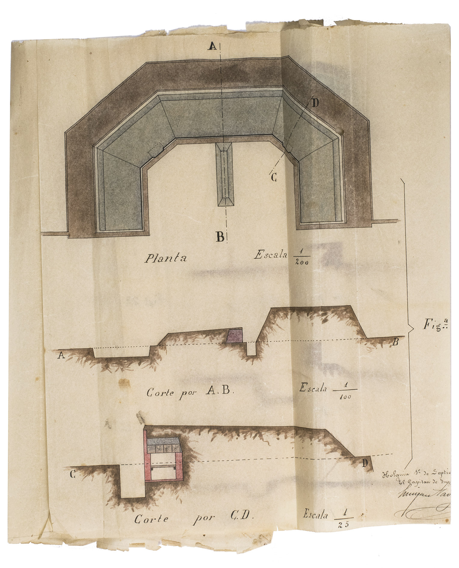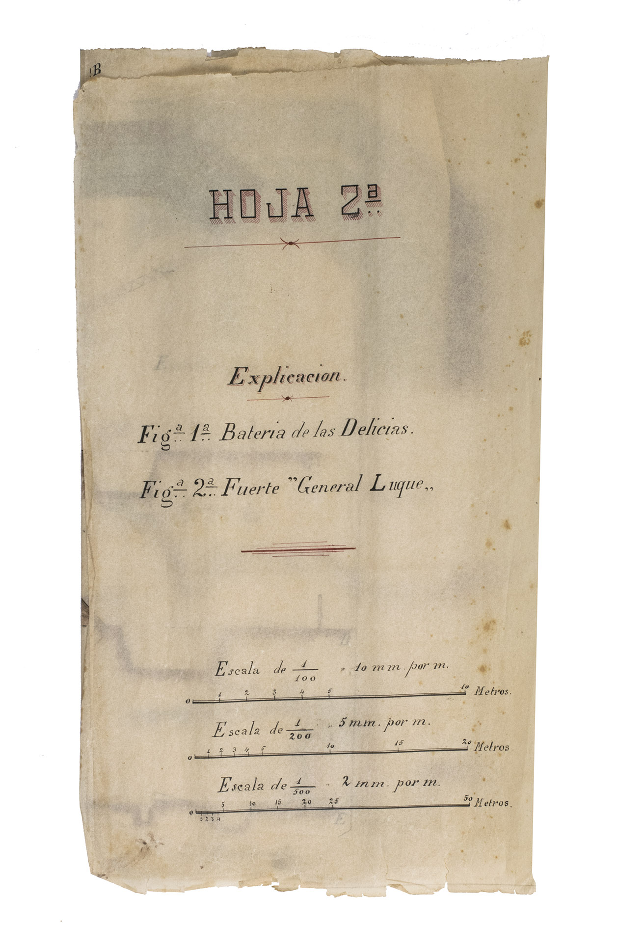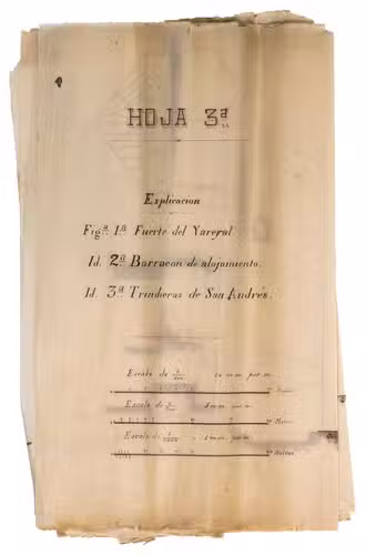 Historically significant set of two original documents on the military defenses of Holguín, written by Captain Henriques Nava y Ortega (dates unknown), a Spanish military engineer, during the final months of Spanish rule in Cuba. The work includes a description of the strategic layout, condition, and planned reinforcements of the citys defensive positions, as well as seven large, hand-coloured plans. These plans meticulously detail military installations, including the battery of General Luques fort, Fort Yareyal, and the Chomba battery, along with critical geographic locations in the surrounding area such as the Bay of Puente del Padre, Cabonico, and Nigre.