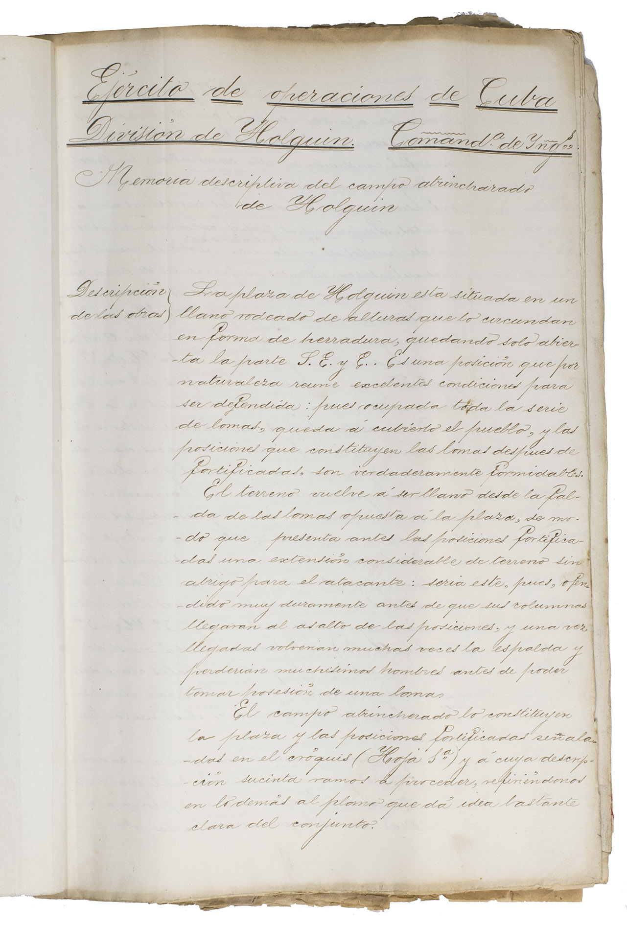 Campo Atrincherado de Holguin. Documento no. 1. Memoria descriptiva.