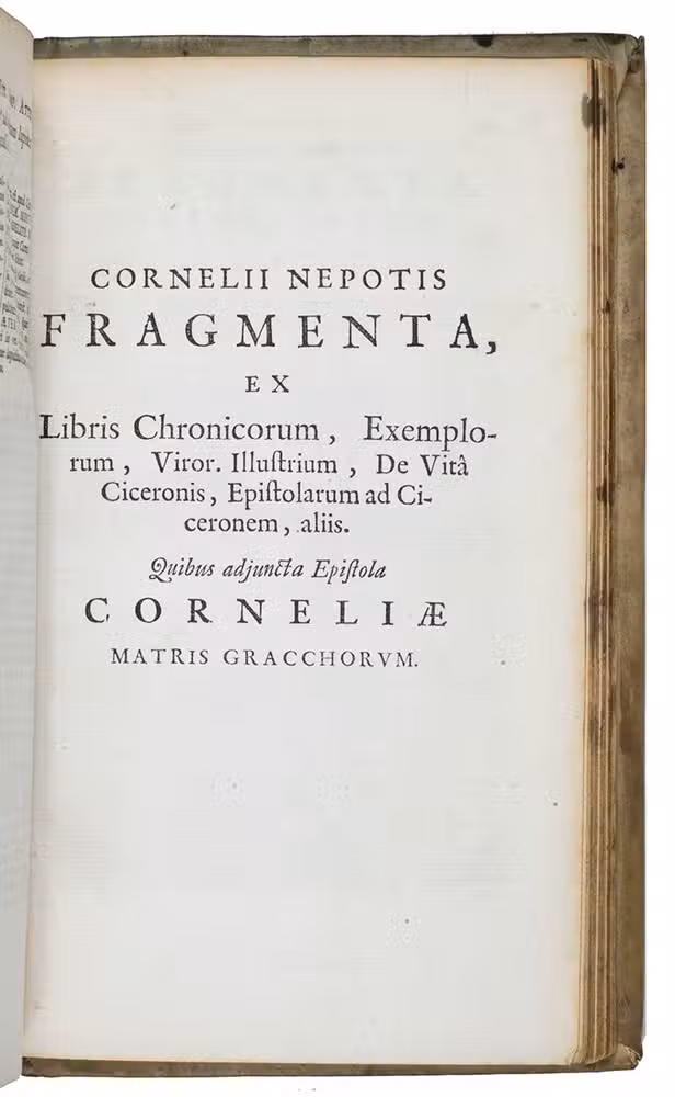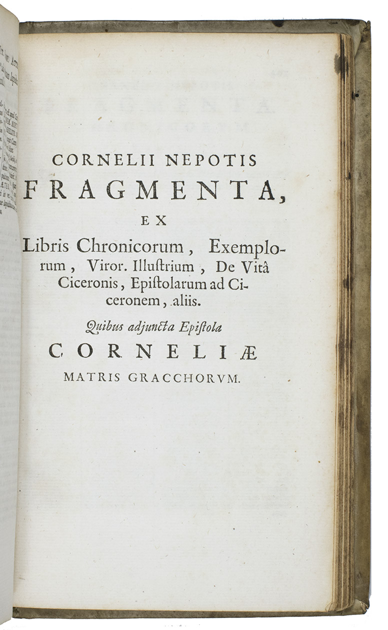 Fourth extended edition with commentary of the only surviving work of Cornelius Nepos (ca. 100-24 B.C.), the Excellentium Imperatorum Vitae by the Leiden young philologist Robertus Keuchenius (1636-1673, the later professor of Roman history at the Athenaeum Illustre of Amsterdam). It is a so-called Variorum edition offering the textus receptus of Nepos accompanied with the commentary and annotations taken from earlier editions.