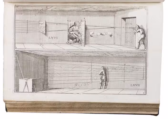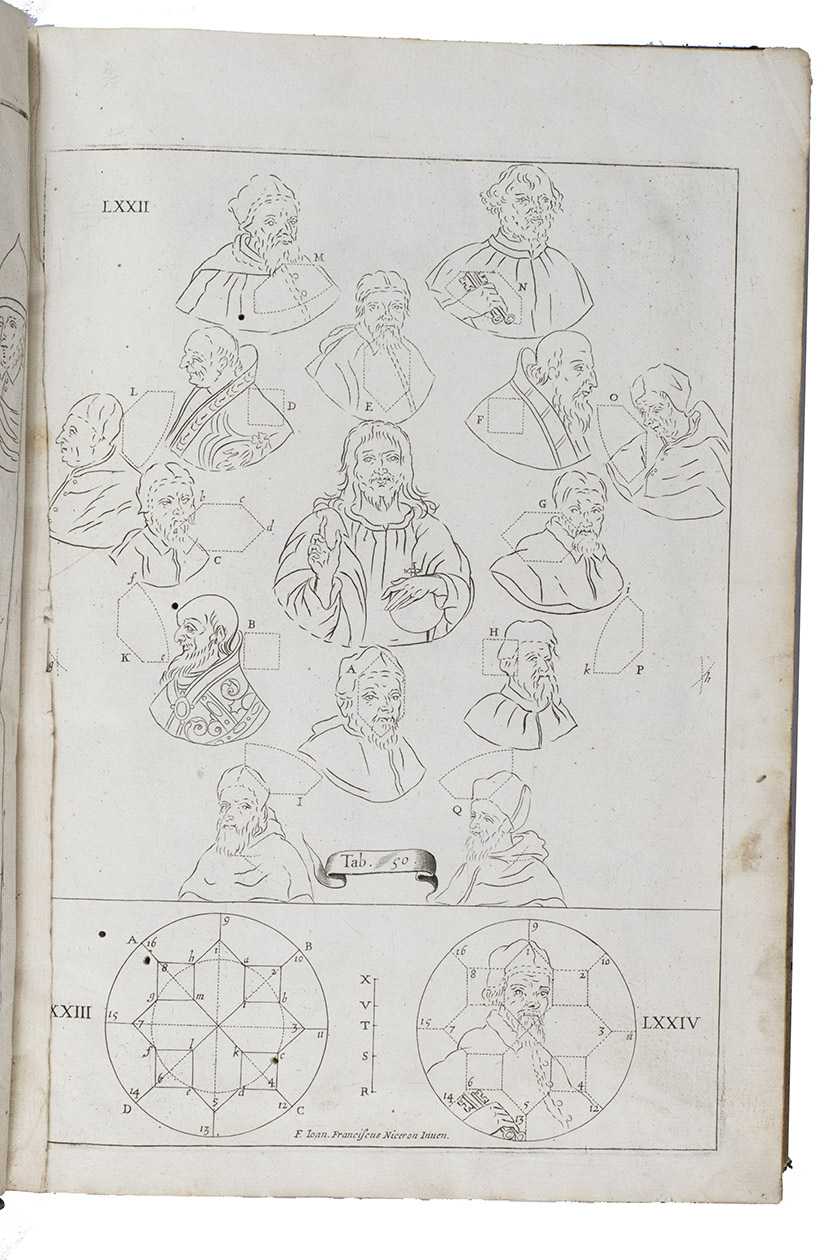 Jean-François Niceron (1613-1646) was a multi-talented individual who excelled in mathematics, painting and engraving, and a member of the scholarly order of the Minimes. He had a keen interest in optics and made significant contributions to this field. Niceron's Perspective, his most famous work today, is a practical publication that resulted from his extensive study of perspective theory. He observed that the illustrations in earlier treatises on this subject were often flawed and that the accompanying texts were too complicated for readers without prior knowledge. Niceron's intention in writing his book was to create an easily understandable treatise on perspective that could benefit a wide range of professionals, including painters, architects, sculptors, engineers and anyone involved in drawing. He believed that the principles of perspective could be explained through methods based on natural observation, such as taking geometric measurements from the human body.