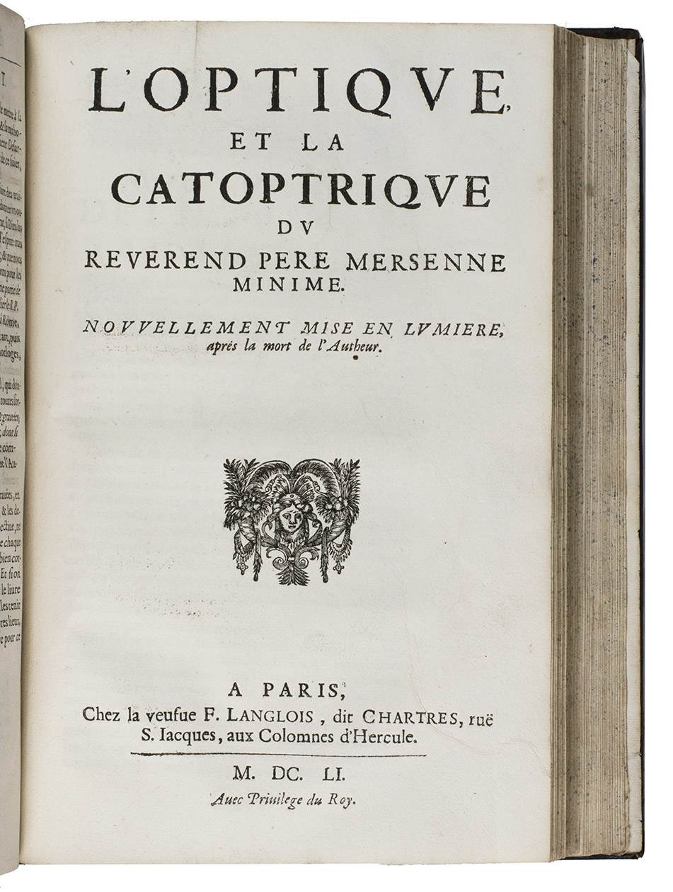 Including: MERSENNE, Marin. L'optique et la catoptrique du reverend Pere Mersenne minime. Novvellement mise en lumiere, aprés lar mort de lautheur. Paris, the widow of F. Langlois, 1651.